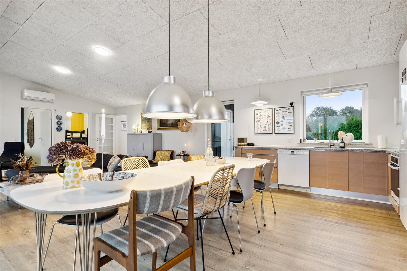 Køkkenet er udstyret med 2 køleskabe. Der er 4 induktionskogeplader, varmluftovn, mikrobølgeovn samt opvaskemaskine.
