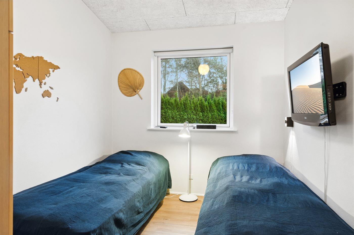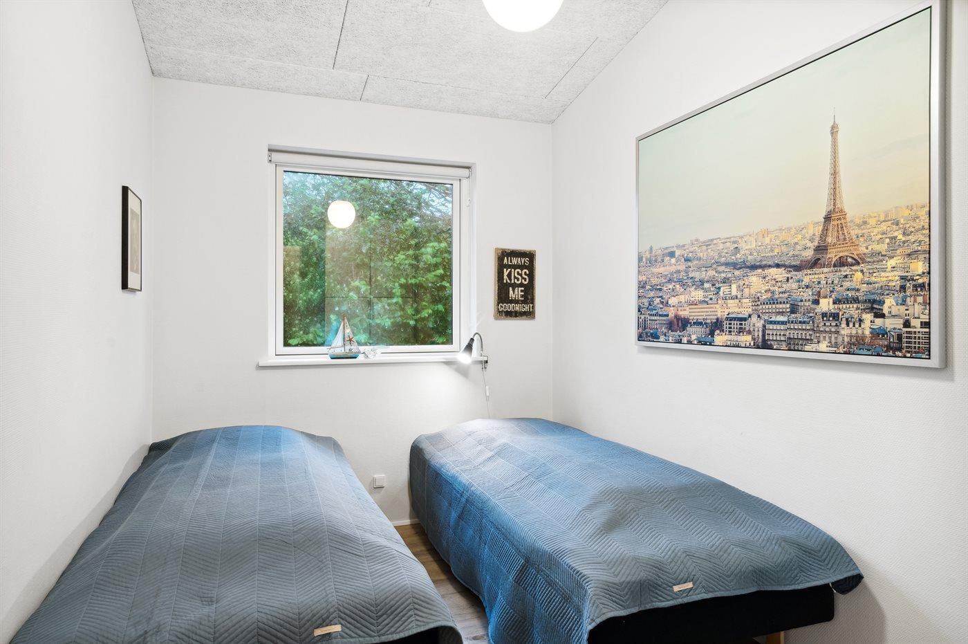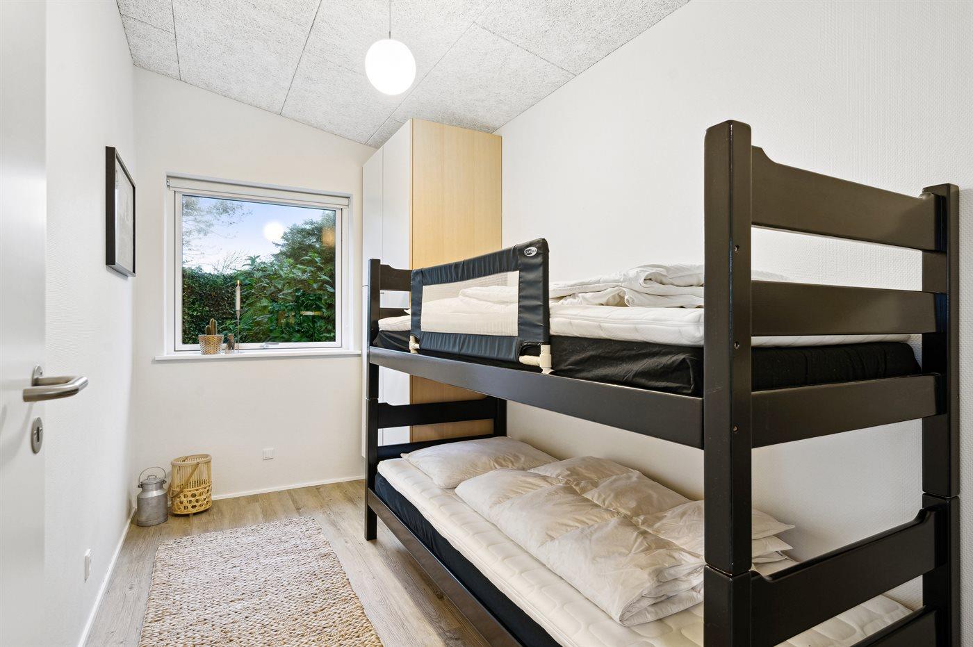 Der er i alt 4 soveværelser. Sovepladserne fordeler sig på: 2 sovepladser i dobbeltseng. 4 sovepladser i enkeltsenge. 2 sovepladser i køjeseng. Derudover er der 1 stk. barneseng.
