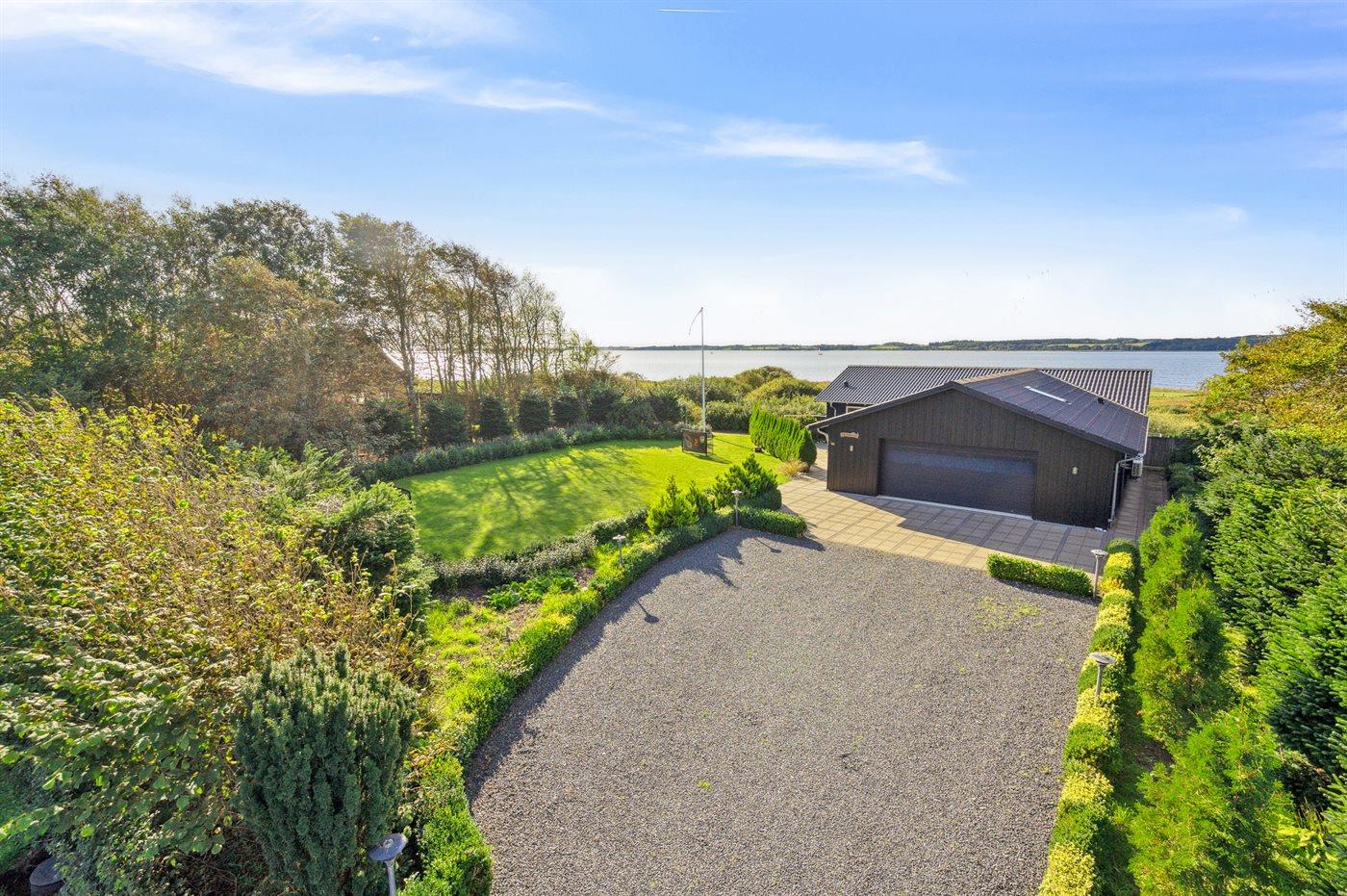 Ferieboligen er beliggende på en 3000 m² stor naturgrund. Der er 70 m til fjorden. Nærmeste forretning er beliggende i en afstand af 4500 m. Der er en golfbane i en afstand af 7000 m. Til ferieboligen hører åbent terrasseareal. Desuden er der overdækket terrasse. Trampolin. Fodboldmål. Bålsted. Grill til rådighed. Parkering ved ferieboligen.