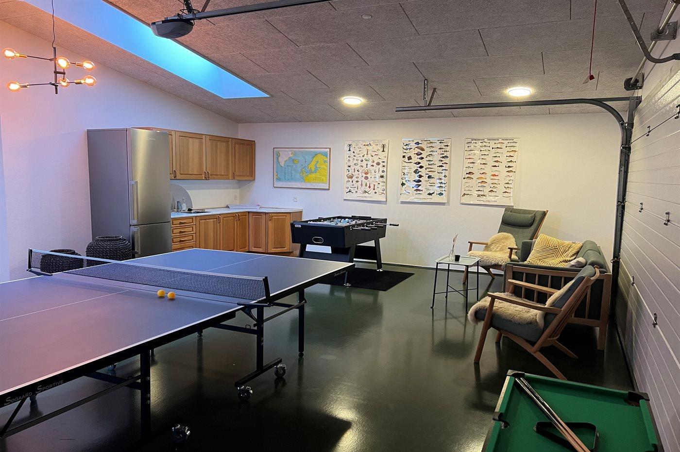 I aktivitetsrummet er der følgende udstyr: Bordtennis. Bordfodbold. Mini billardbord.
