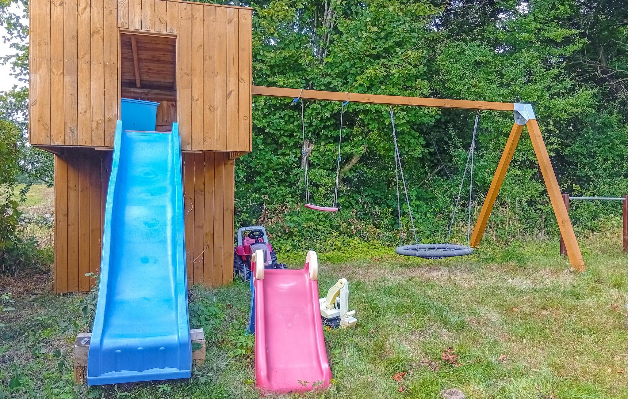 Huset består af 3 soveværelser, 1 badeværelse, en hyggelig opholdsstue samt et stort, åbent køkken og spiseplads. Uden for huset har I en overdækket terrasse med havemøbler og grill til jeres rådighed. Her kan I nyde morgenkaffen sammen med den gode udsigt, eller samle familien til hyggelige grillaftener.