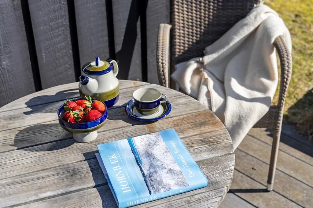 Huset ligger nær Hornbæk – en af Nordkystens klassiske feriebyer med bred sandstrand, klitter og en hyggelig havn. Her summer det af sommerliv med små butikker, isboder og caféer langs vandet.