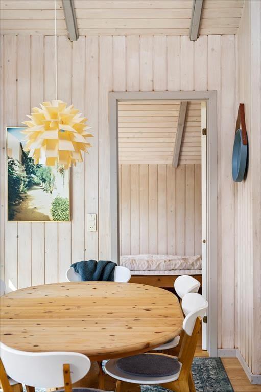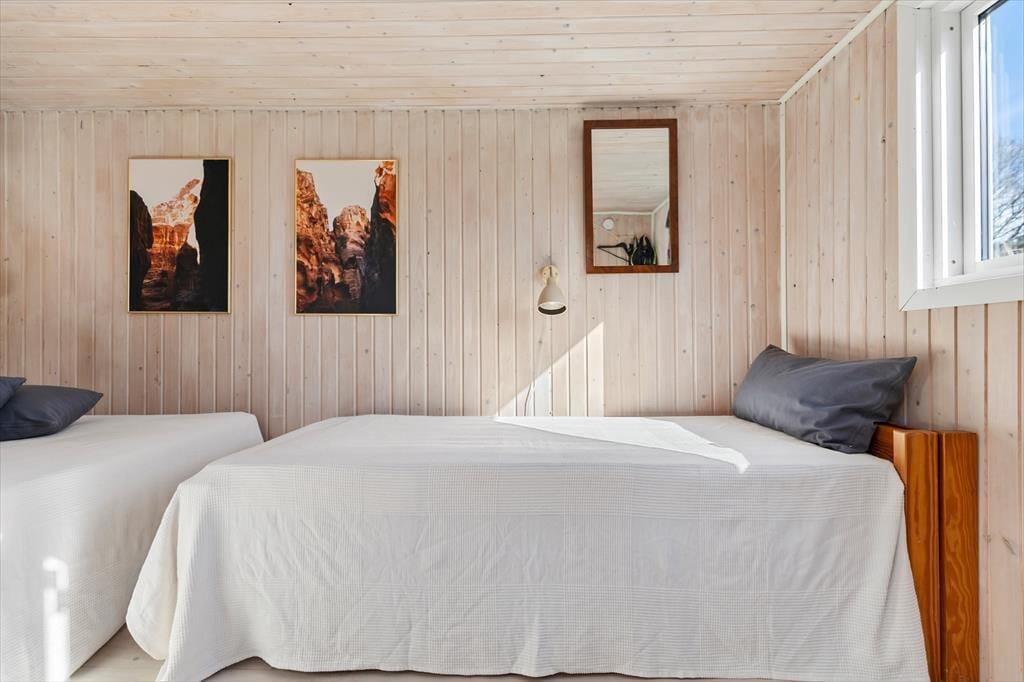Indenfor samles I i et åbent køkken-alrum, hvor det er let at være sammen. Her glider madlavning, samtaler og rolige stunder i sofaen naturligt ind i hinanden. Rummet har en behagelig atmosfære og et fint lysindfald, som giver en rolig base mellem dagens ture ud i det blå.