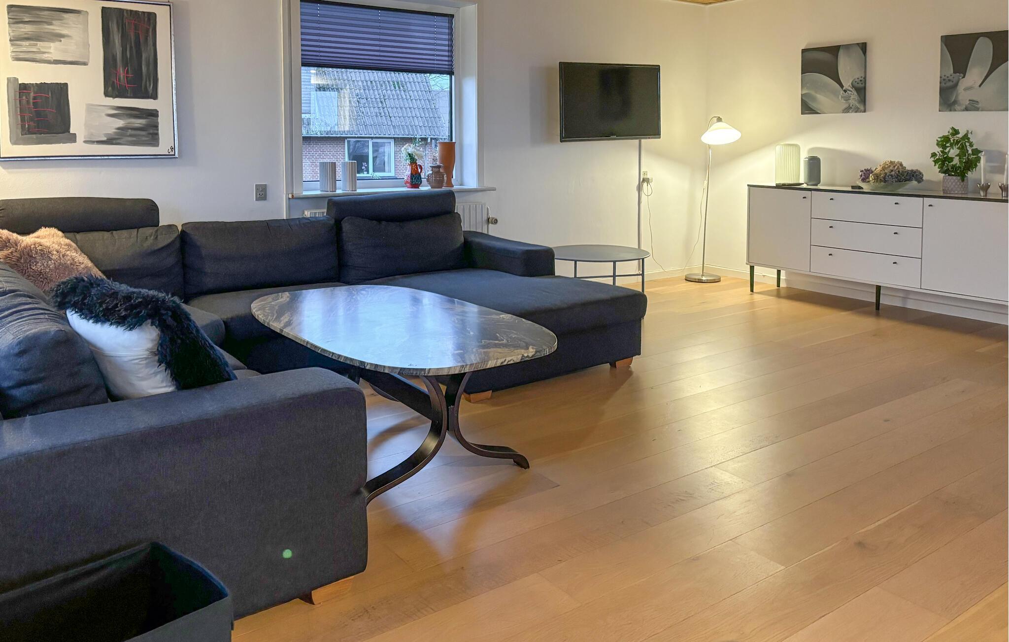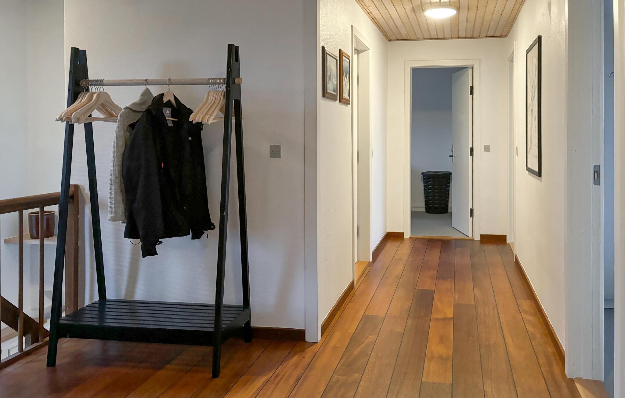 Dette hus, der ligger med en vidunderlig udsigt over fjorden, imponerer med sin moderne indretning og generøse plads. De lyse træelementer, den hyggelige brændeovn og det veludstyrede køkken sikrer, at I hurtigt kommer i feriestemning. Slap af med lidt musik, lyt til en lydbog, eller spil en omgang bordtennis eller dart.