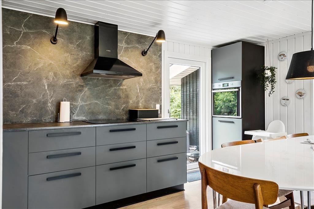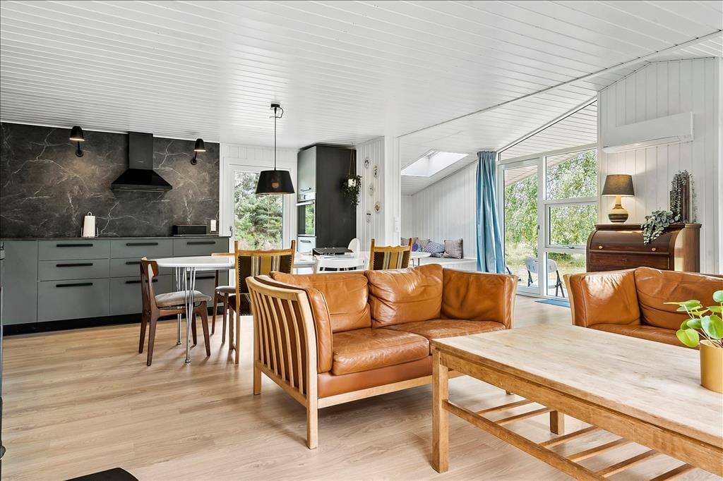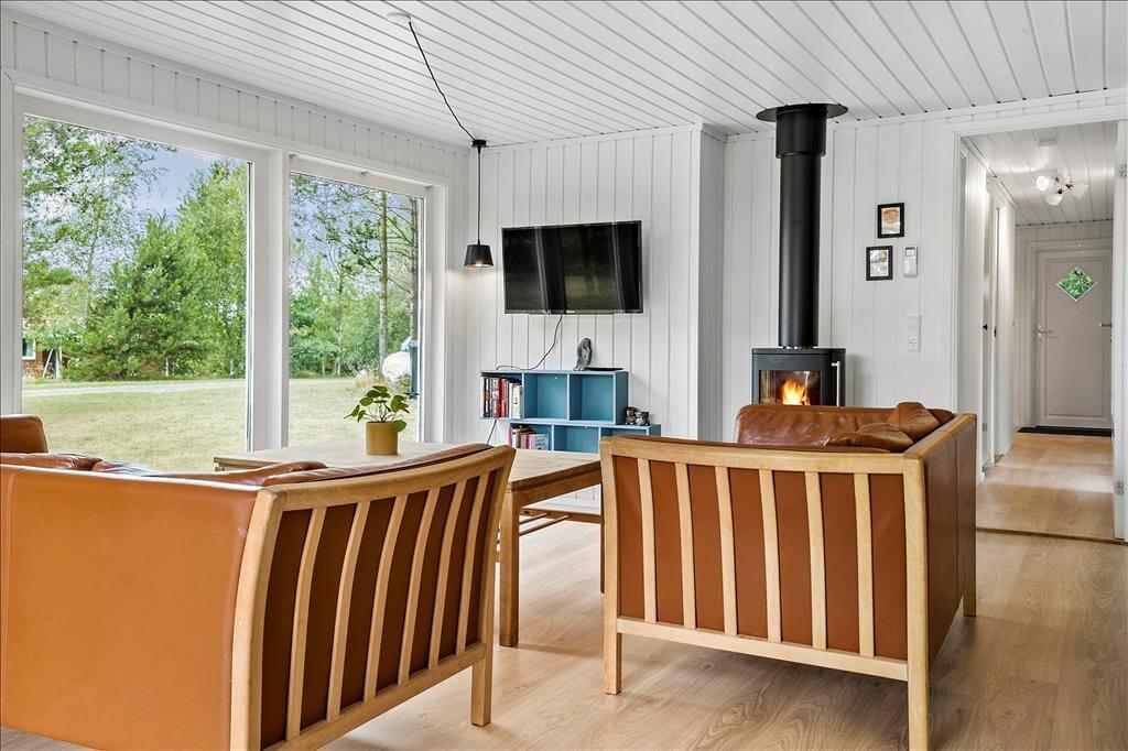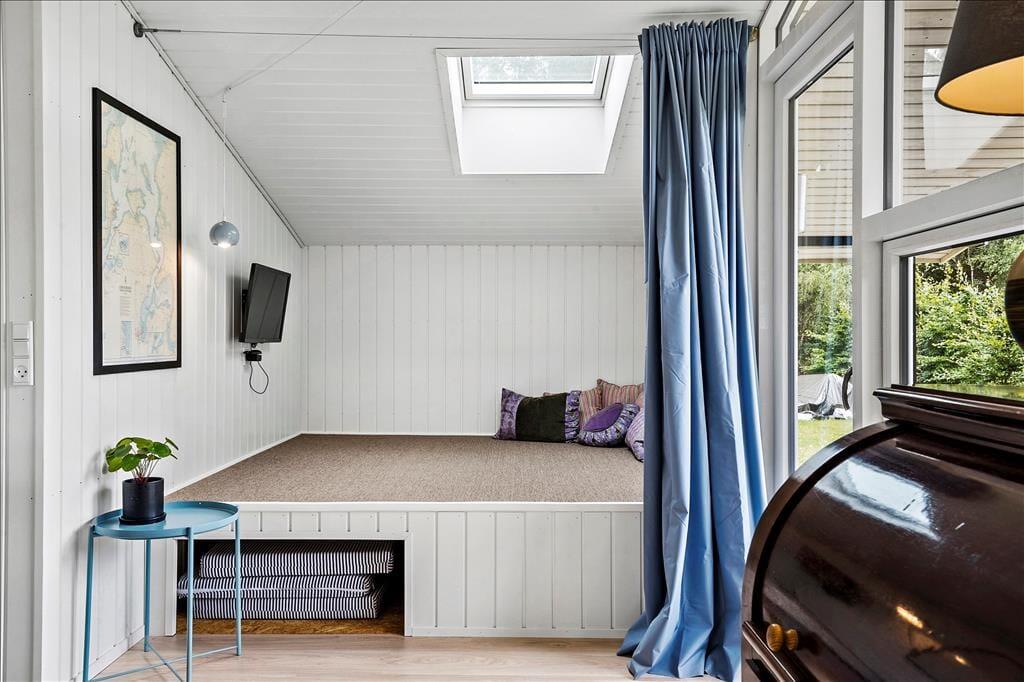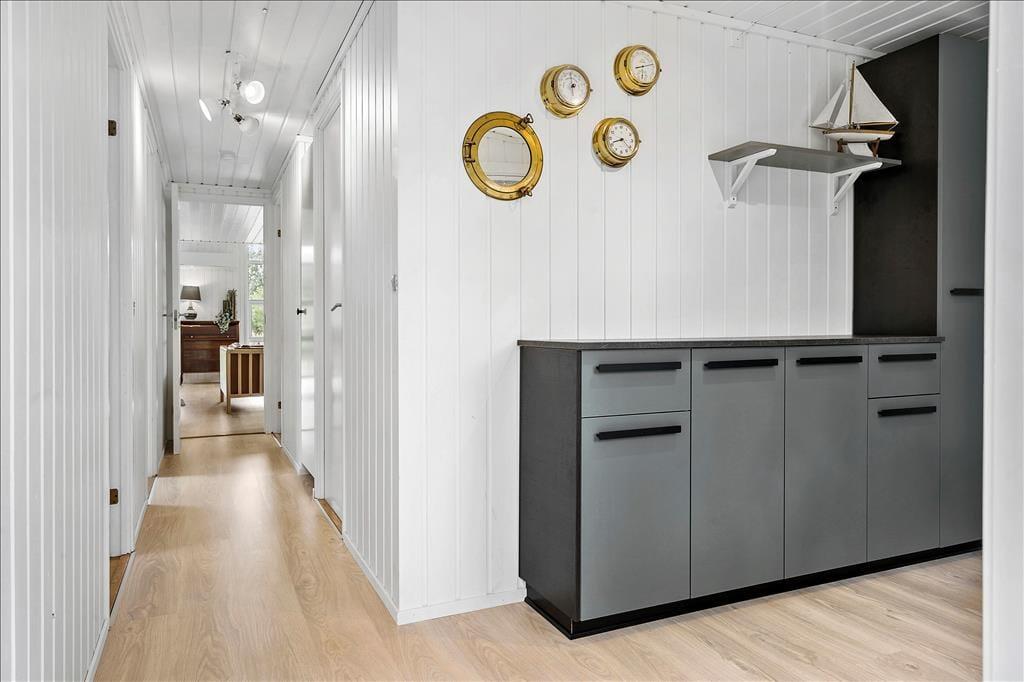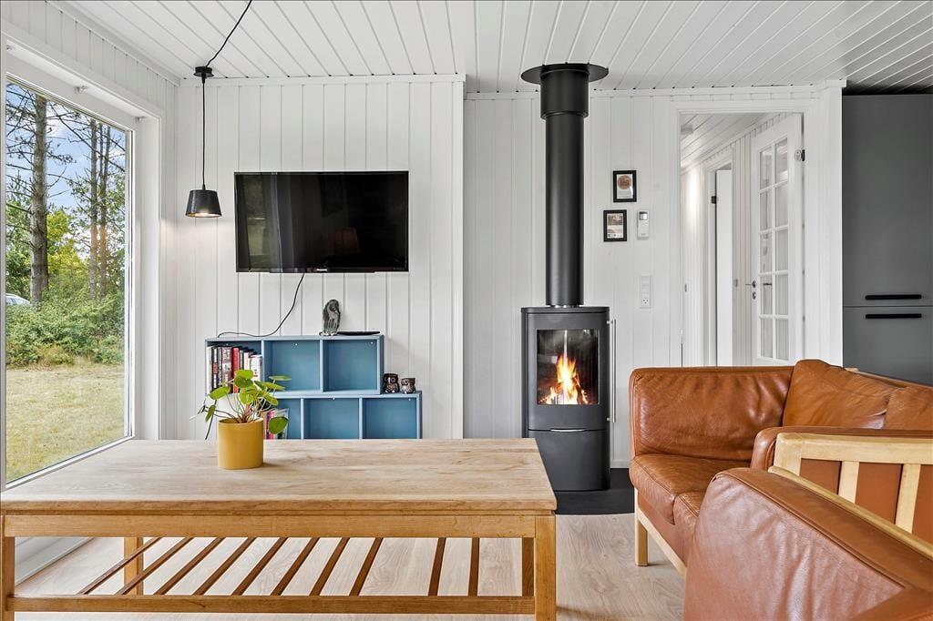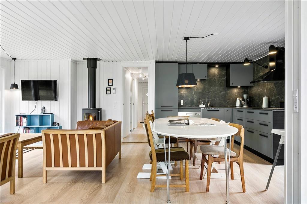 Efter en gennemgribende renovering i 2020 præsenterer huset sig på lys og lækker vis. Det moderne, åbne køkken sørger for, at I har gode arbejdsforhold, når der skal kokkereres, og har I tryllet noget lækkert frem, kan I glæde jer til at indtage det ved spisebordet. Stuens brændeovn kan tages i brug, hvis vejret indbyder til sofahygge og tv-kigning – sidstnævnte kræver dog, at I kan løsrive blikket fra den flotte sø udsigt, som I kan nyde gennem de store stuevinduer. Alkoven har både madrasser og et ovenlysvindue, så der et rart sted at slappe af. Måske kan I ligefrem overnatte der, hvis I ikke bare fordeler jer på de tre soveværelser. Badeværelset er med bruser, gulvvarme og kombi-vaskemaskine, og endelig er entréen stor og flot.