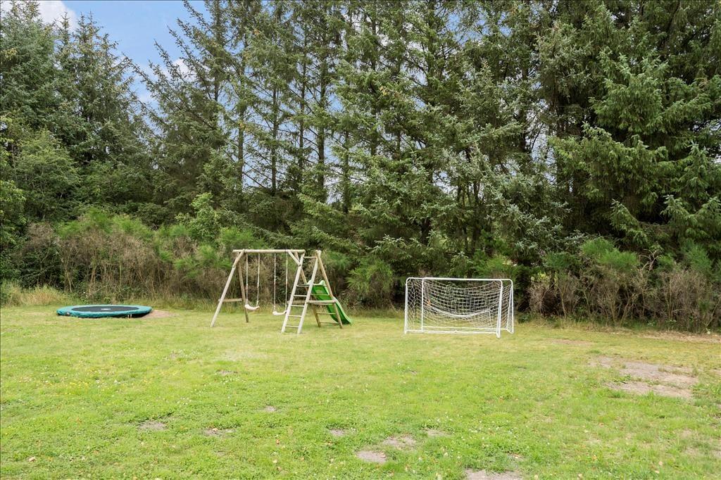 Den 4099 m2 store naturgrund ligger utroligt naturskønt i et lille, lukket område ud mod Ørslevkloster Sø. En delvist overdækket terrasse er orienteret mod sydvest, og mod øst har I en åben terrasse til rådighed, hvis I vil drikke formiddagskaffe i solen eller have en siesta lidt senere på dagen. Til børnene er der sandkasse, trampolin og et legestativ med gynger og rutsjebane, og der er også fodboldmål, hvis hele familien vil deltage i en kvik kamp.