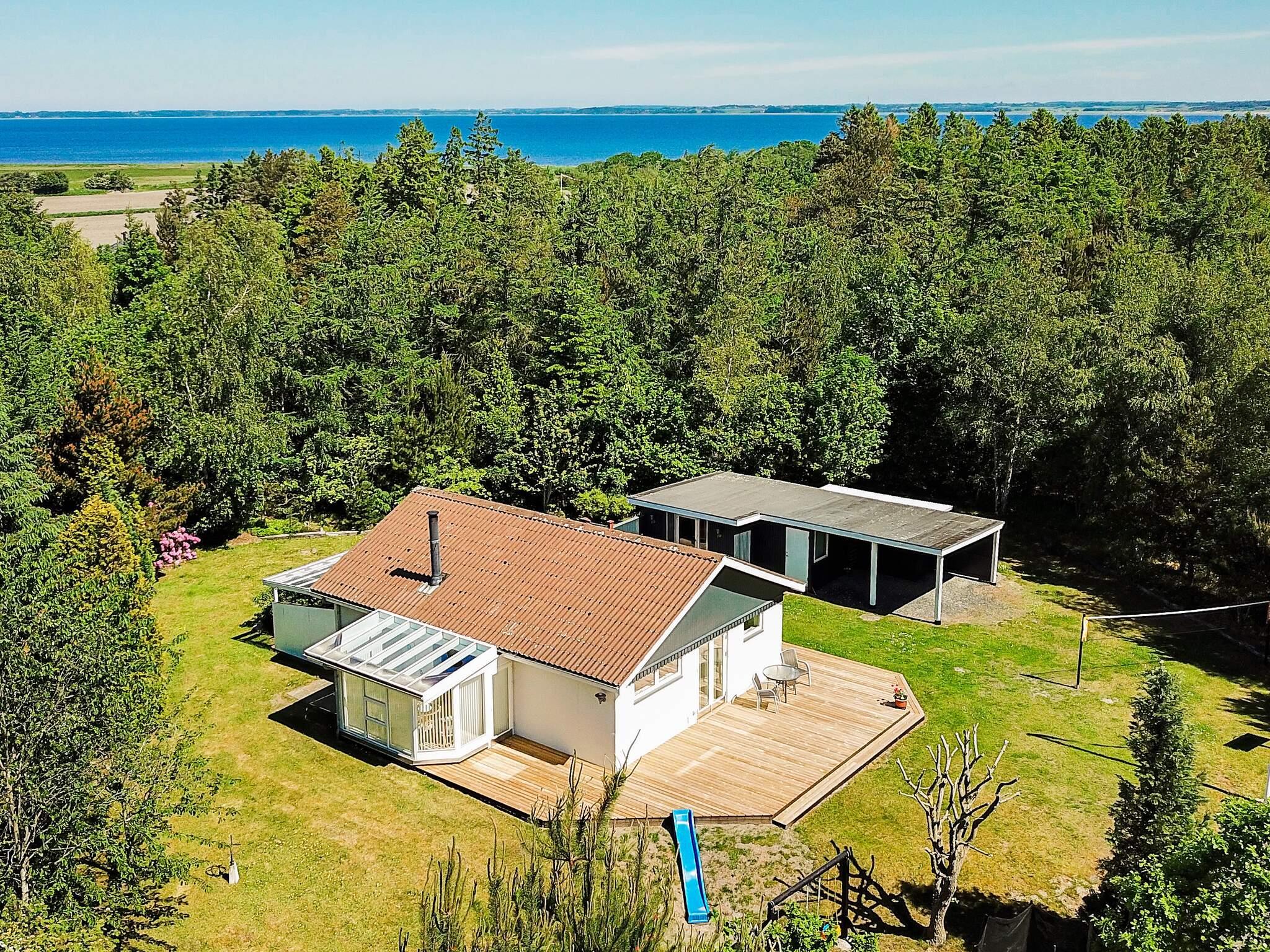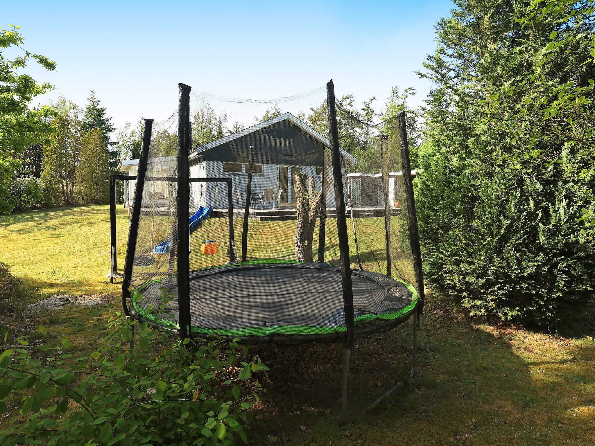 Ved Virksund finder I dette lyst indrettede sommerhus med plads til både store og små. Omkring huset er både en stor træterrasse, en overdækket terrasse på bagsiden af huset og en terrasse mellem hus og anneks. Vildmarksbadet benyttes på eget ansvar og lejer skal selv skifte vand og gøre rent efter behov inden brug. Ved huset er der træ til at tænde op i badet. Udendørs findes også flere gode legeredskaber, eksempelvis rutsjebane, gyngestativ, basketball og trampolin (benyttes på eget ansvar/forsikring).
