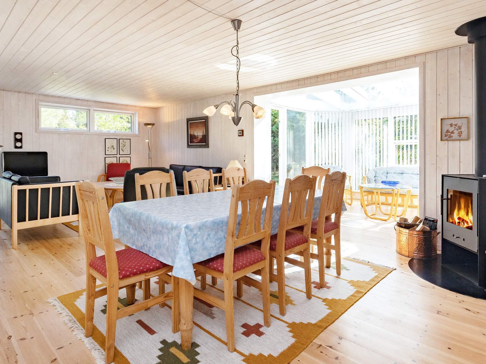 Huset er indrettet med et stort kombineret entré, køkken, stue og spisestue. Rummet er hyggeligt og lyst, især hjulpet på vej af havestuen med sofaarrangement. TV er udstyret med Chromecast, så I kan nyde jeres egne streamingtjenester. Køkkenet har bl.a. køle/frys, komfur, emhætte og opvaskemaskine Badeværelset har vaskemaskine, plads til opbevaring og en god stor bruseniche. I huset findes to soveværelser med dobbeltseng og garderobeplads. Det ene har udgang til husets overdækkede terrasse. Annekset er rummeligt og har en dobbeltseng, opholdsplads og TV klar til tilslutning af egne devices fx konsol. I enden af annekset findes carport. Udlejes ikke til ungdomsgrupper.