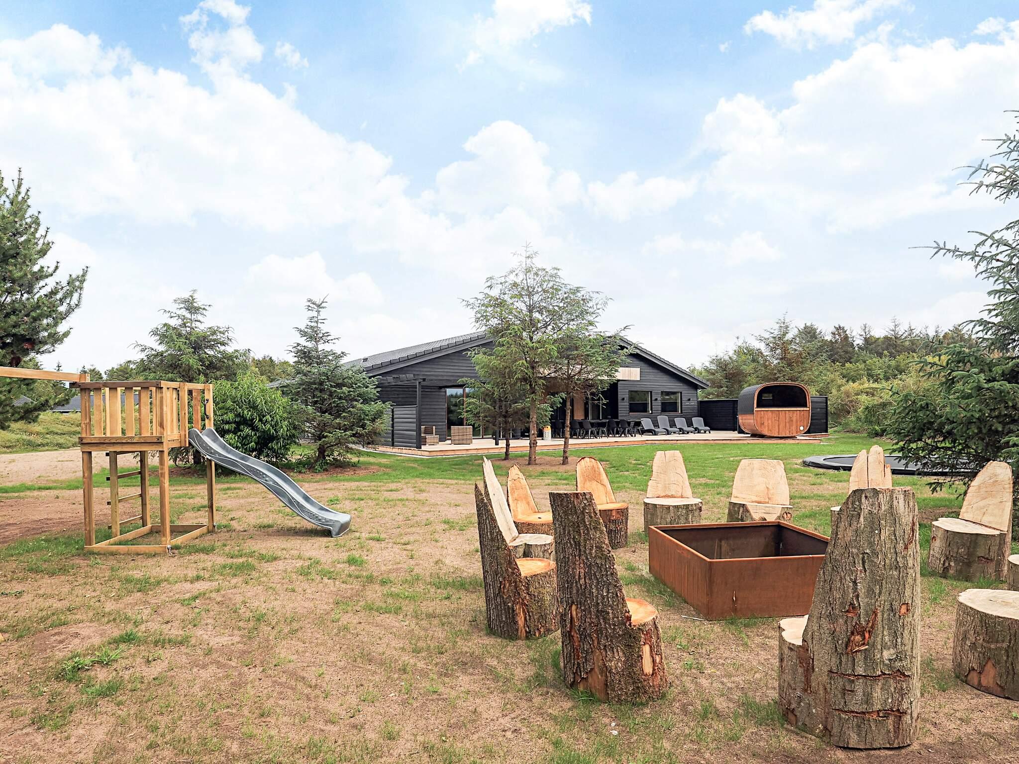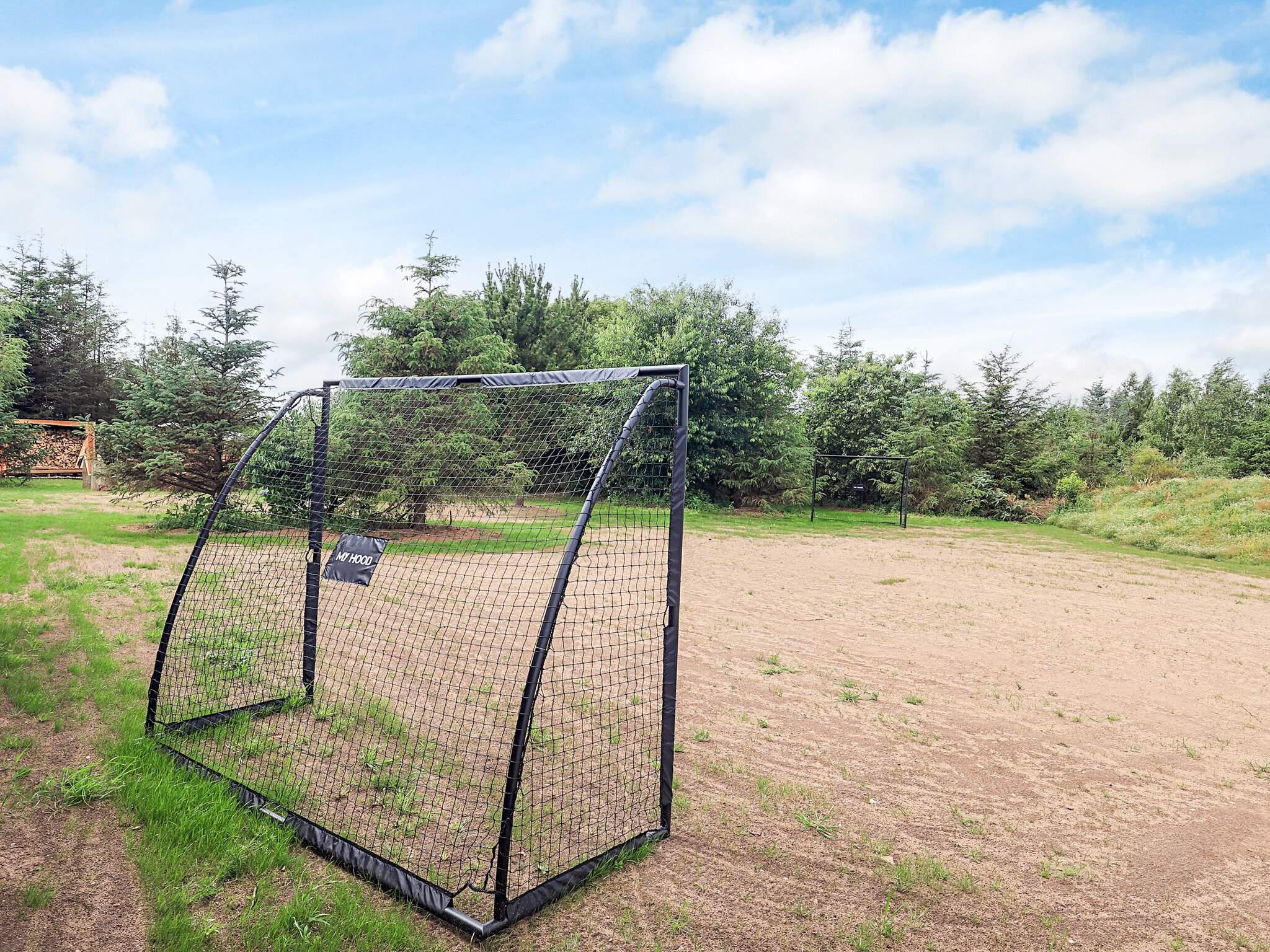 Udendørs er der petanquebane, trampolin i jorden (brug på eget ansvar/forsikring), shelter, legetårn osv. og fodboldmål.