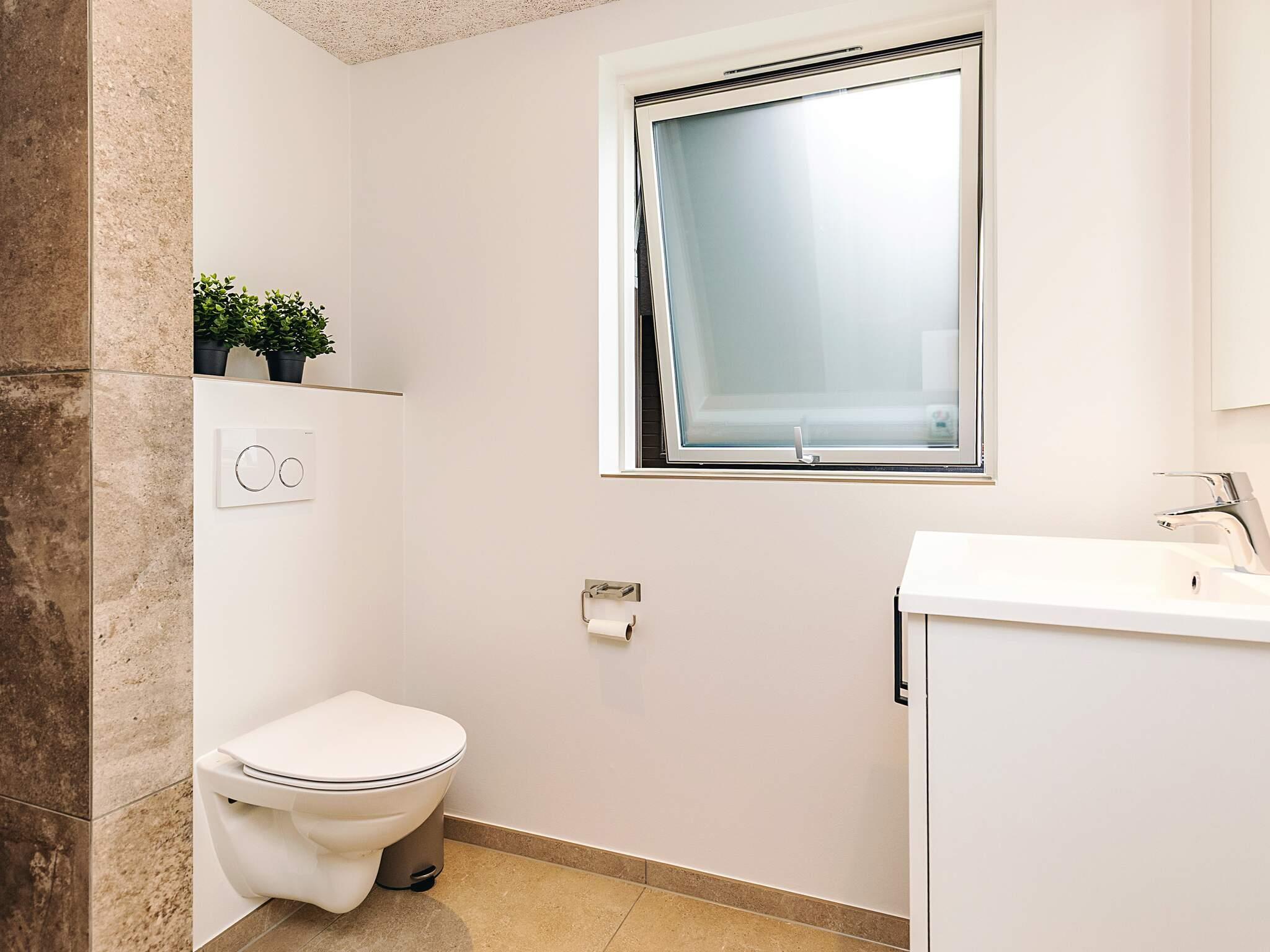 Huset har 4 badeværelser, hvoraf de 3 har badekar, bruser, toilet, samt gulvvarme. Der er også en vaskemaskine i huset. Høje stole er tilgængelige for de mindste.