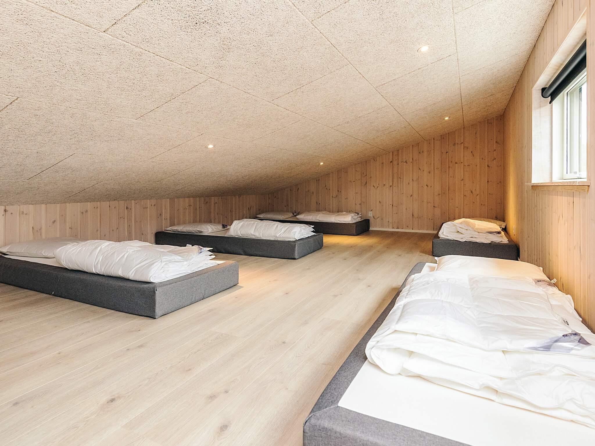 Feriehuset har 9 soveværelser, alle med gode kvalitetssenge, hvoraf 6 har 2 enkeltsenge og 3 af dem har 2 enkeltsenge og 1 køjeseng. Derudover er der hems med 5 senge og 2 weekendsenge til de mindste.