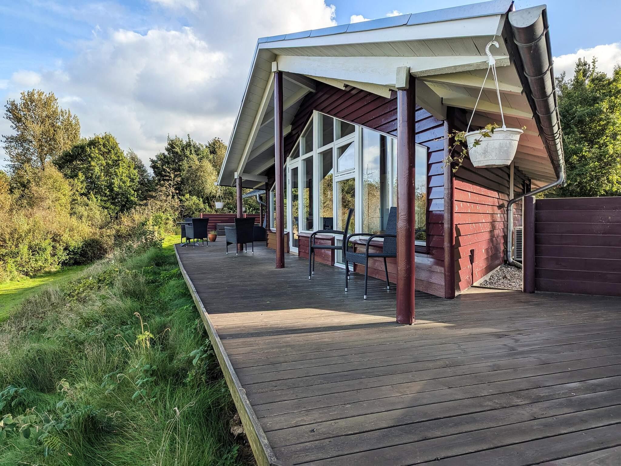 Og: Terrasse, overd. terrasse, el-varme, luft/luft varmepumpe, havegrill, naturgrund 3000 m2, komfortabel møblering, panoramaudsigt over vand, ikke-ryger hus