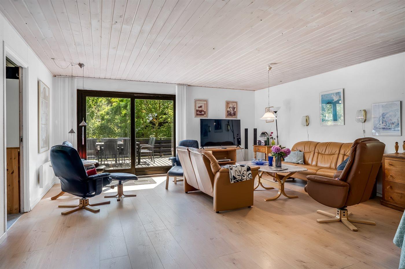 Hyggeligt sommerhus tæt på vandet med spa, sauna og aktivitetsrum på skovgrund i Virksund.