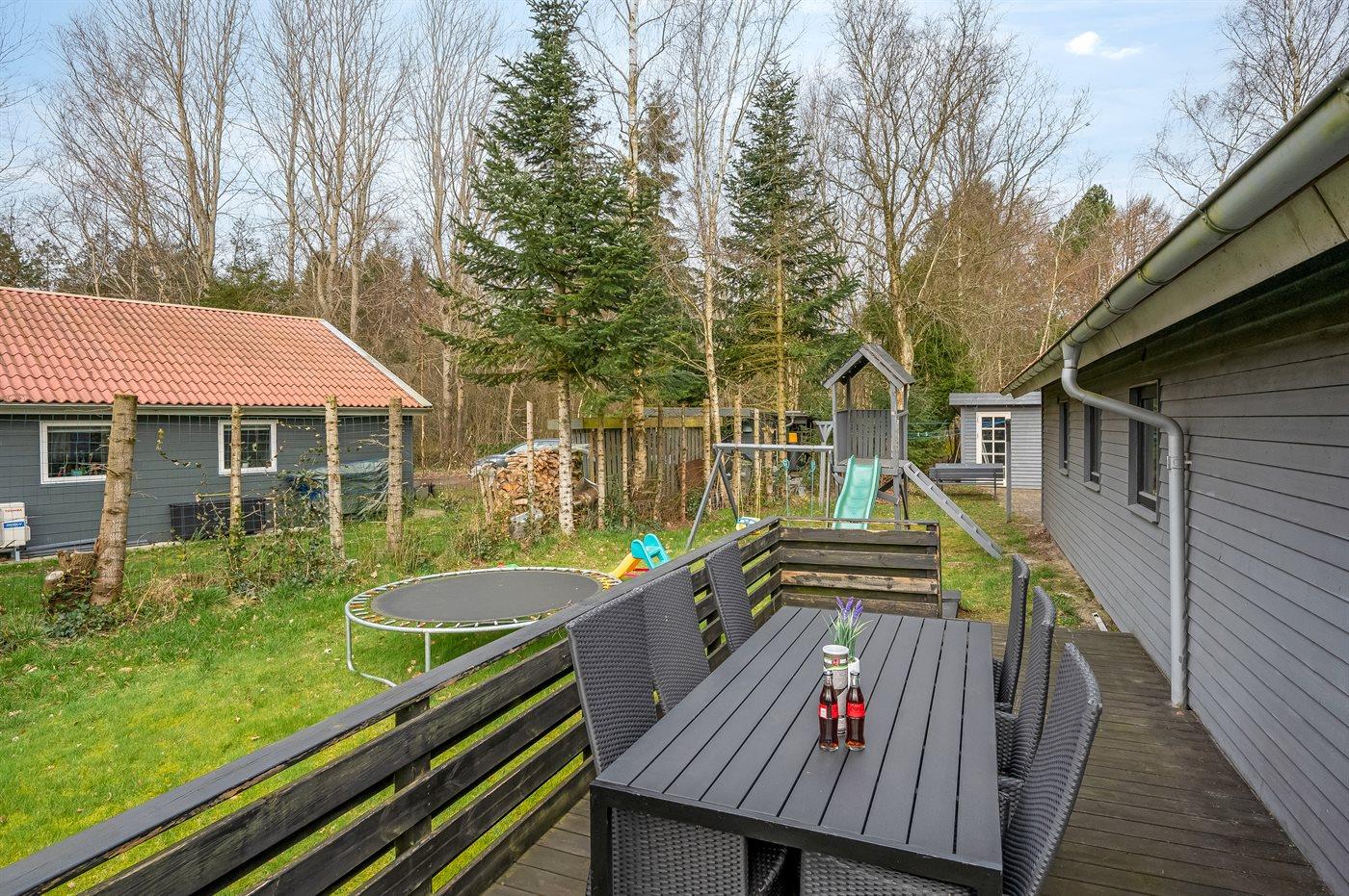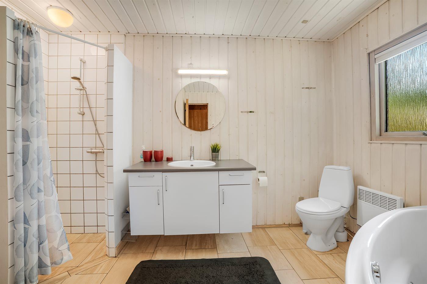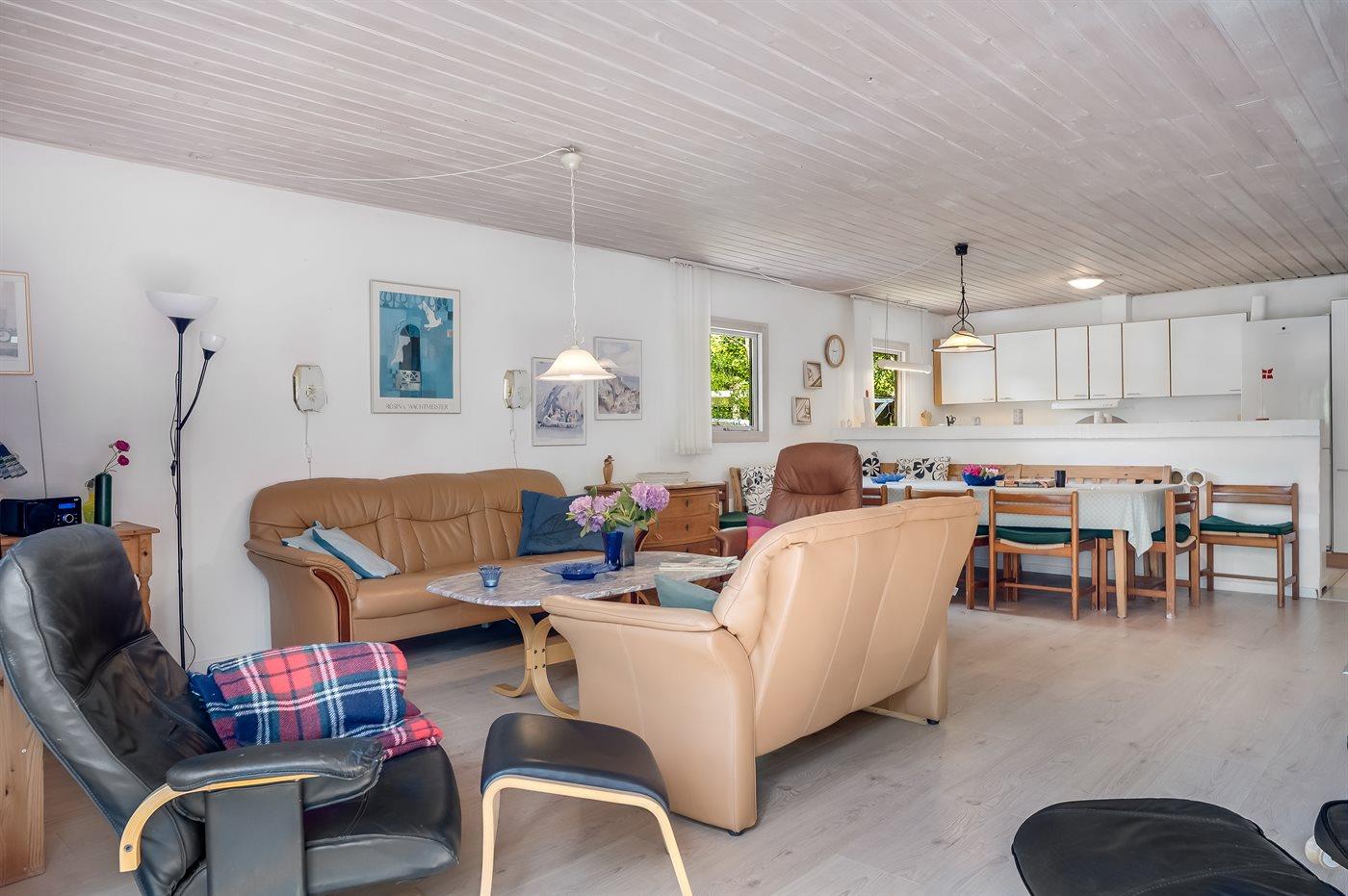 Kun 200 m fra vandet finder I dette hyggelige og børnevenlige sommerhus i træ med bl.a. spa og sauna, bygget i 1994 og moderniseret i 2010. Huset ligger på en skov-/plantagegrund med græs og høje træer samt sandkasse, gynger og legetårn med rutsjebane til børnene. Der findes en dejlig, afskærmet terrasse med havemøbler.