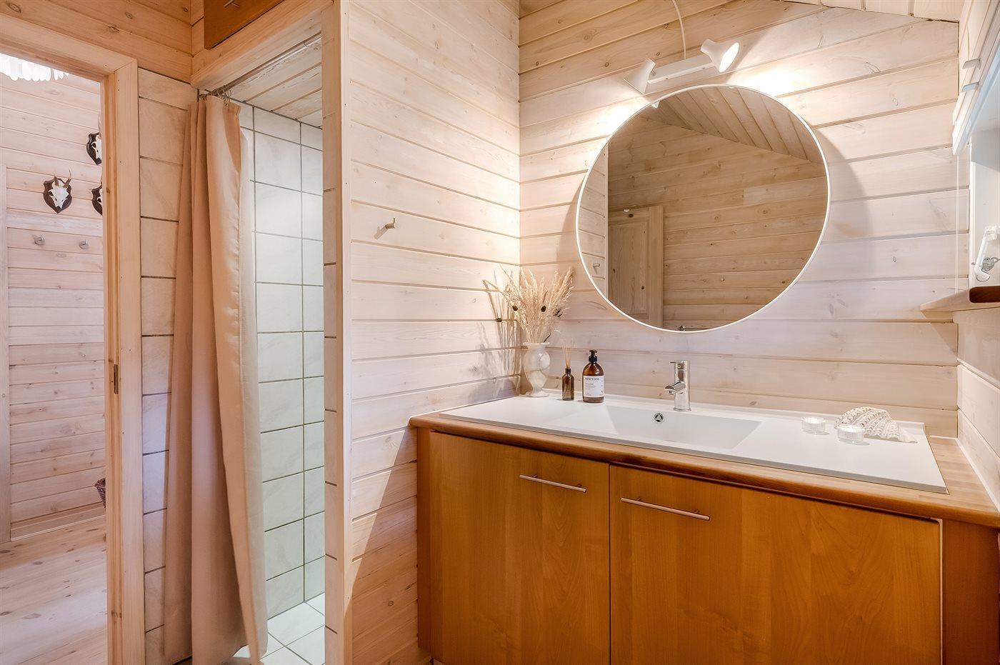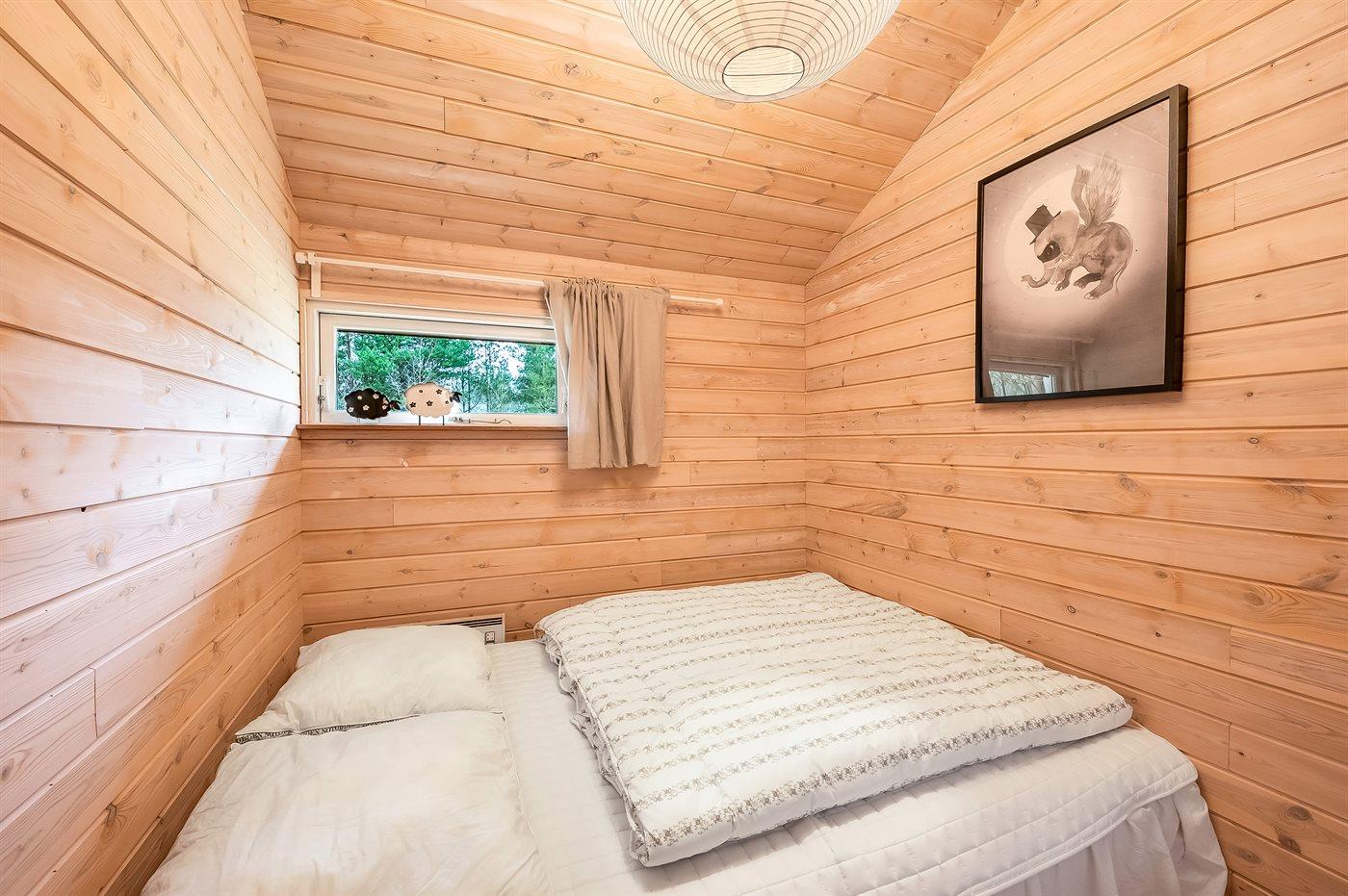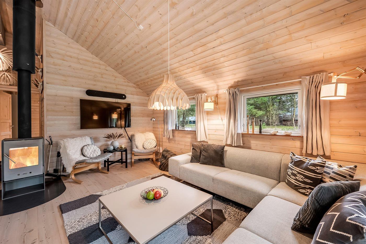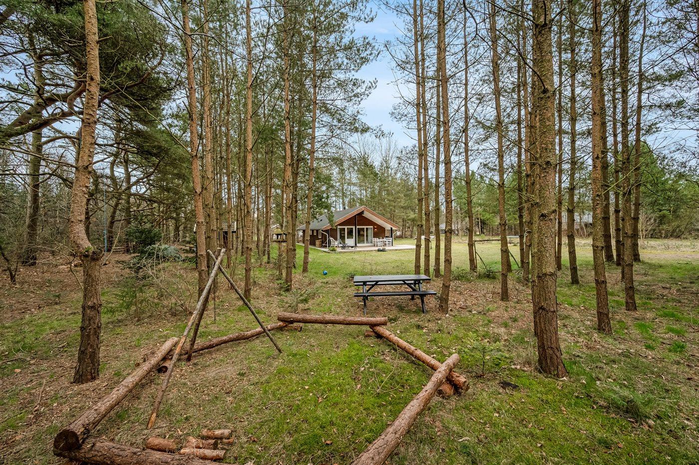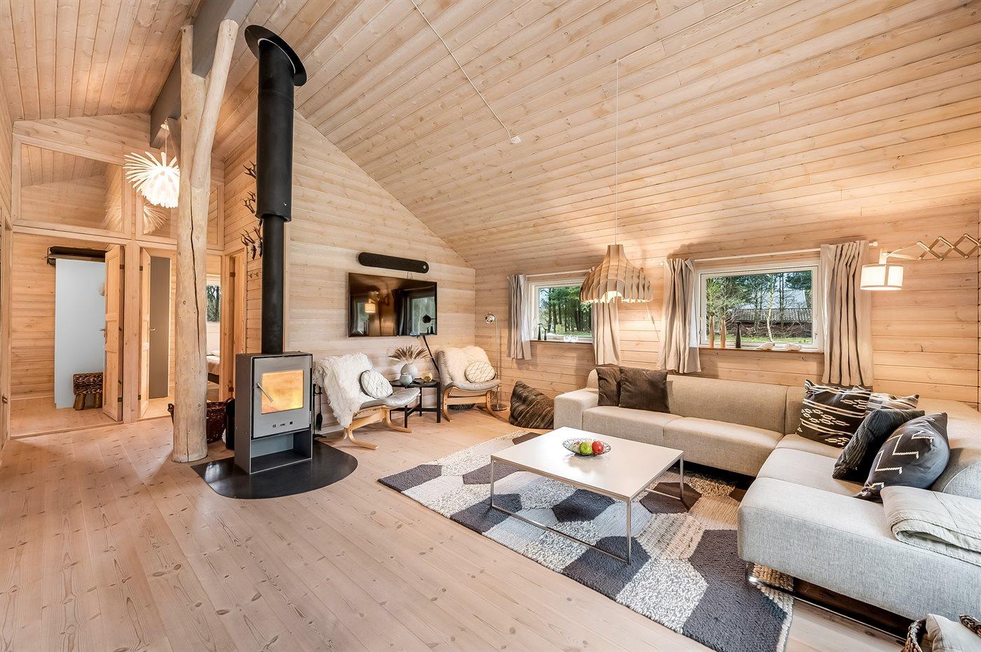 Ferieboligen er beliggende på en 2400 m² stor naturgrund. Der er 700 m til fjorden. Nærmeste forretning er beliggende i en afstand af 3000 m. Desuden er der 15 m² overdækket terrasse. Parkering ved ferieboligen.