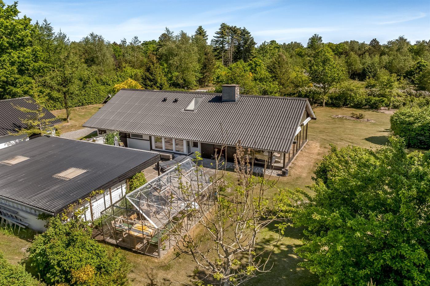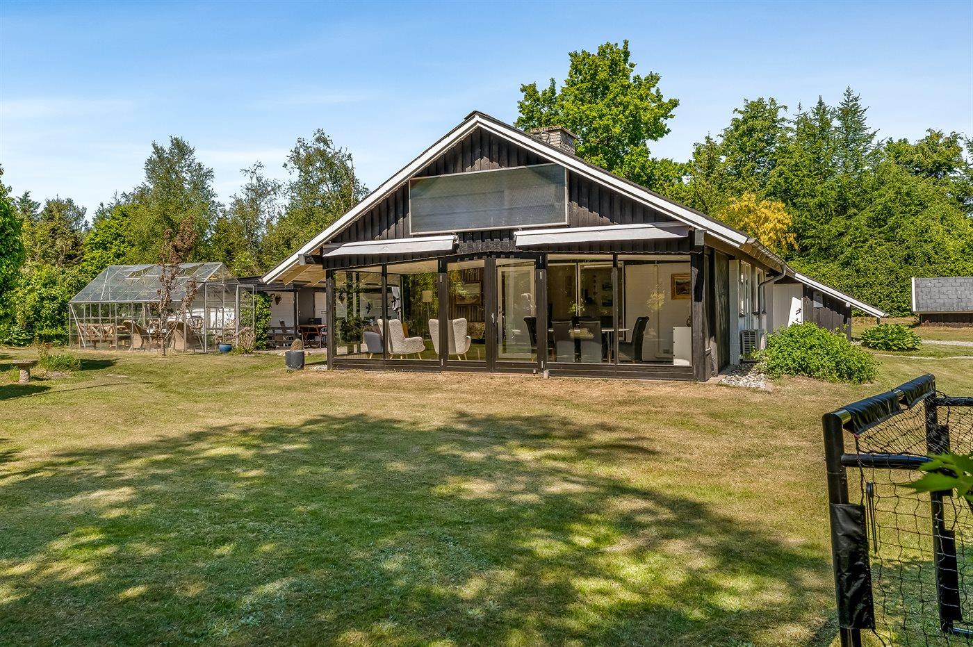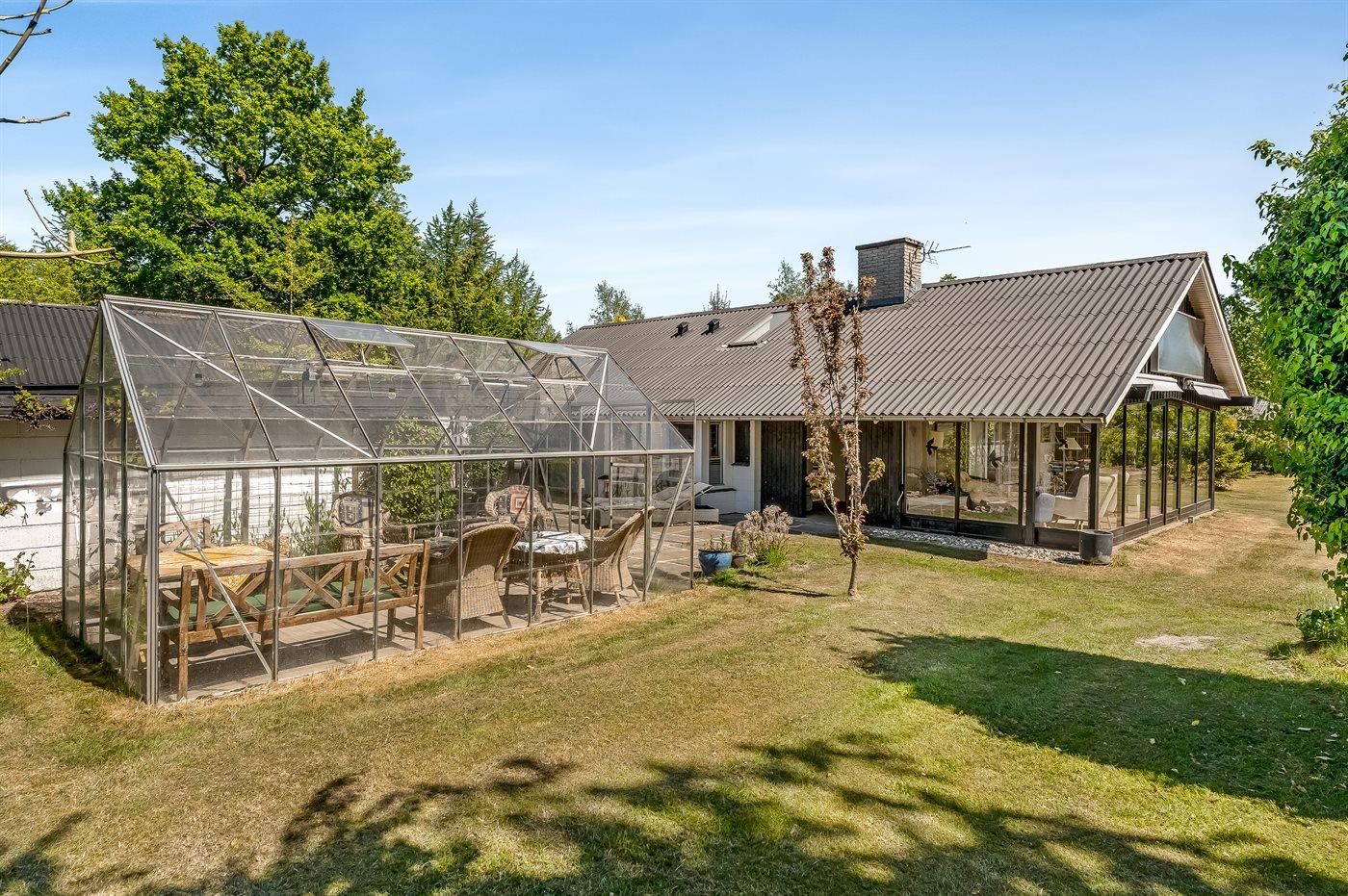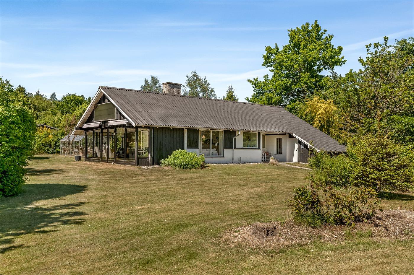 Til huset hører en stor grund, hvor du kan solbade og nyde de varmende stråler, spille bold eller lege tagfat med børnene. Der findes såvel åben som overdækket terrasse, hvor du kan tilbringe dejlige timer i det fri og skulle vejret vise sig fra sin til tider dårlige side, kan du sætte dig ind i den dejlige udestue.