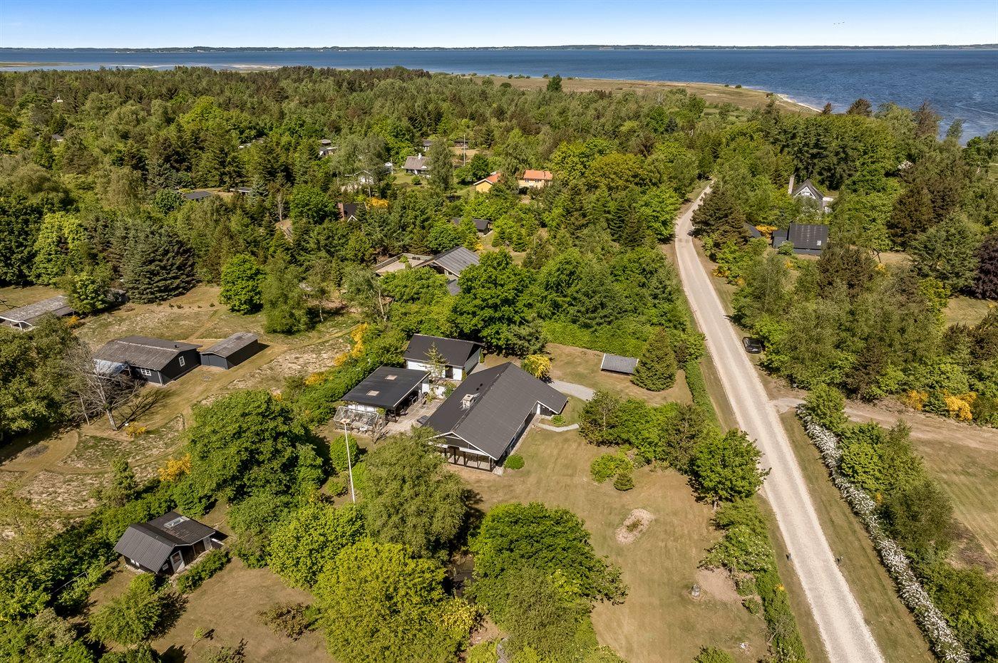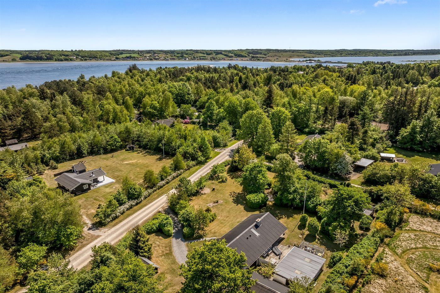 Ferieboligen er beliggende på en 2833 m² stor naturgrund. Der er 250 m til fjorden. Nærmeste forretning er beliggende i en afstand af 1000 m. Til ferieboligen hører åbent terrasseareal. Desuden er der overdækket terrasse. Ligeledes er der adgang til udestue. Sandkasse. Trampolin. Bålsted. Parkering ved ferieboligen.