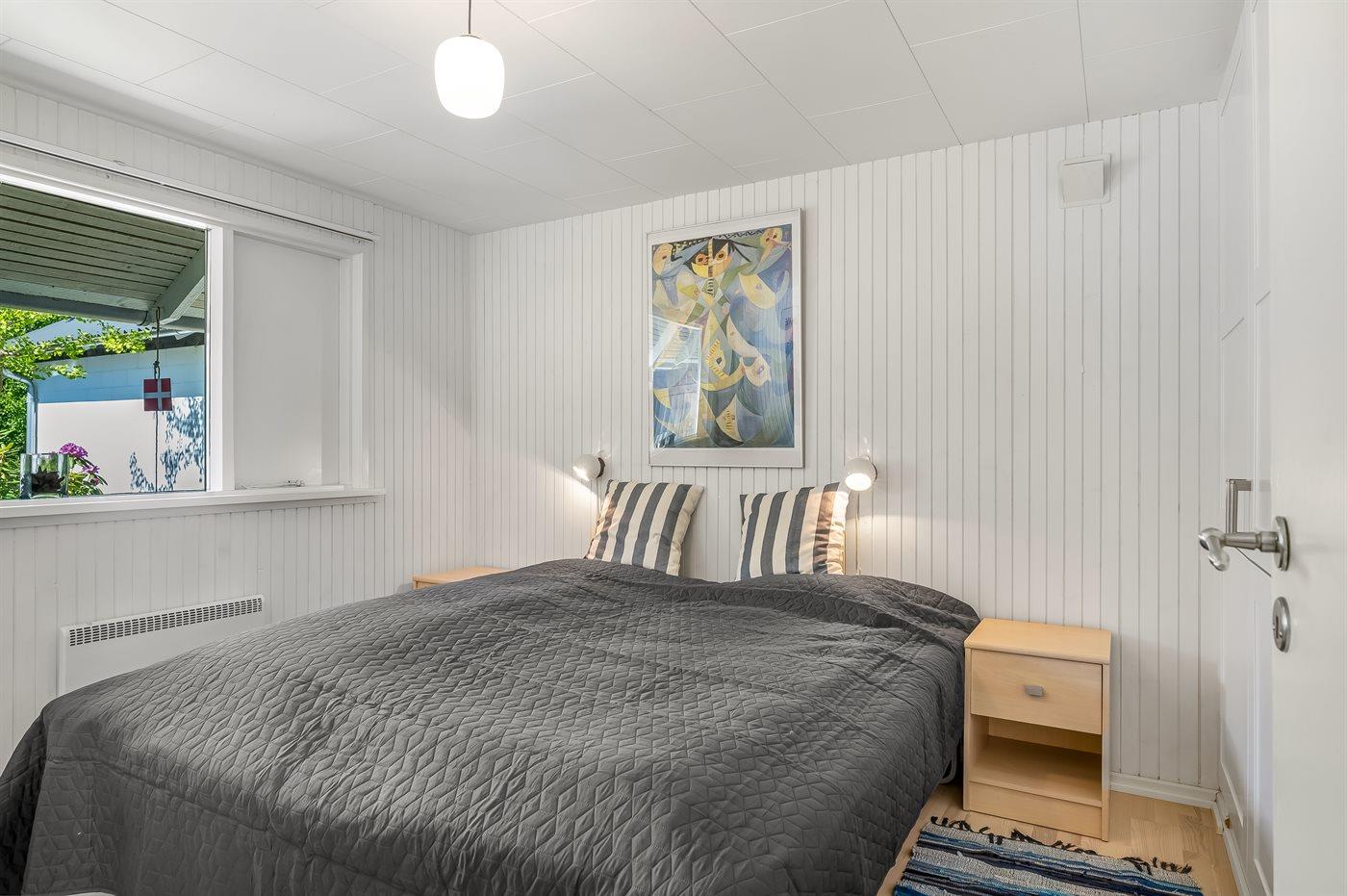 Der er i alt 2 soveværelser. Sovepladserne fordeler sig på: 4 sovepladser i dobbeltsenge. 2 sovepladser i sovesofa (dobbelt). 2 af disse sovepladser befinder sig i stuen. Derudover er der 1 stk. barneseng.