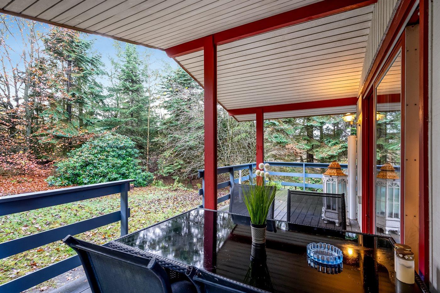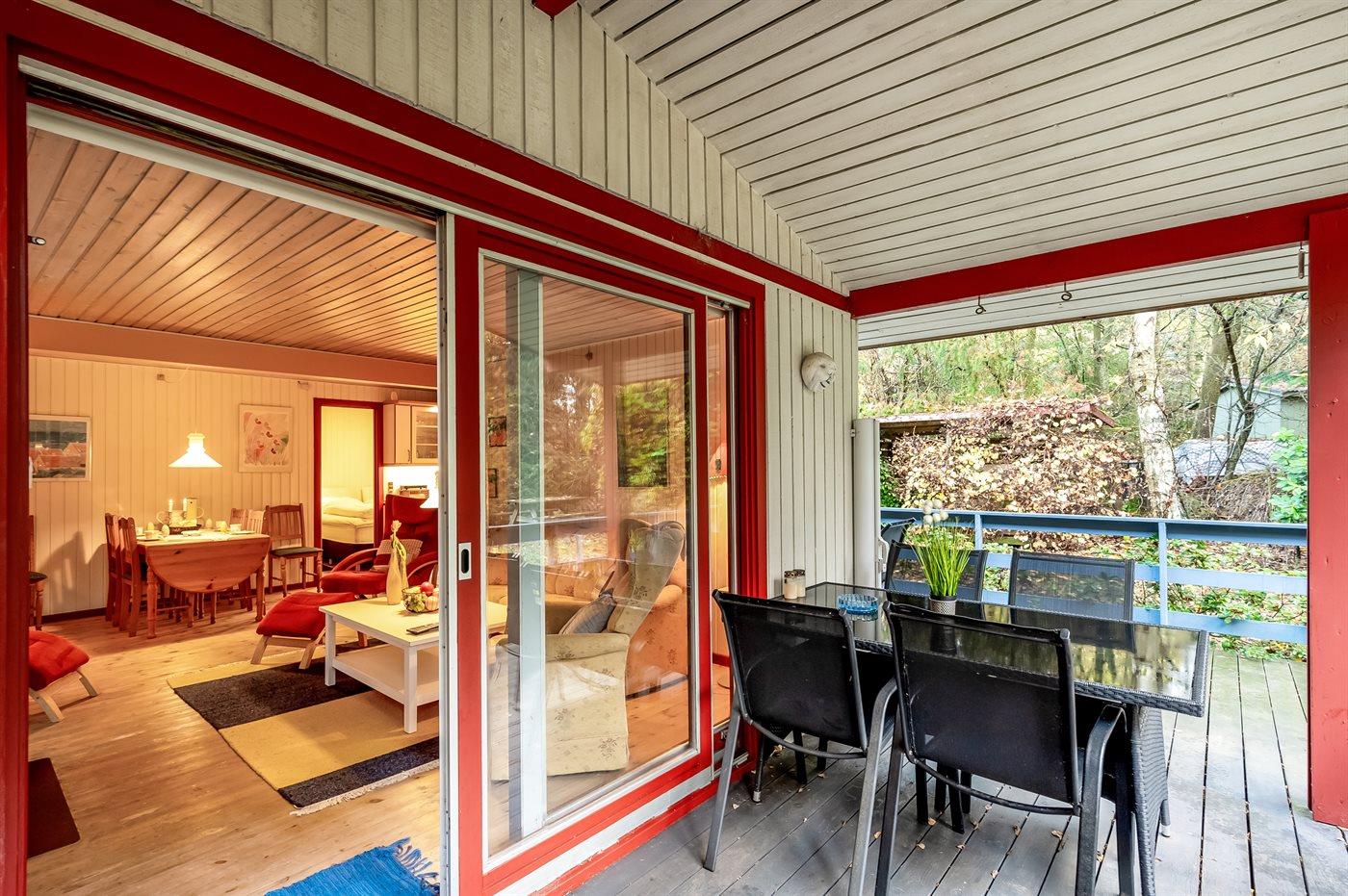 Ferieboligen er beliggende på en 5514 m² stor grund i skov/plantage. Grunden er indhegnet. Der er 600 m til fjorden. Der er en sø i en afstand af 300 m. Nærmeste forretning er beliggende i en afstand af 5000 m. Til ferieboligen hører åbent terrasseareal. Desuden er der overdækket terrasse. Parkering ved ferieboligen.