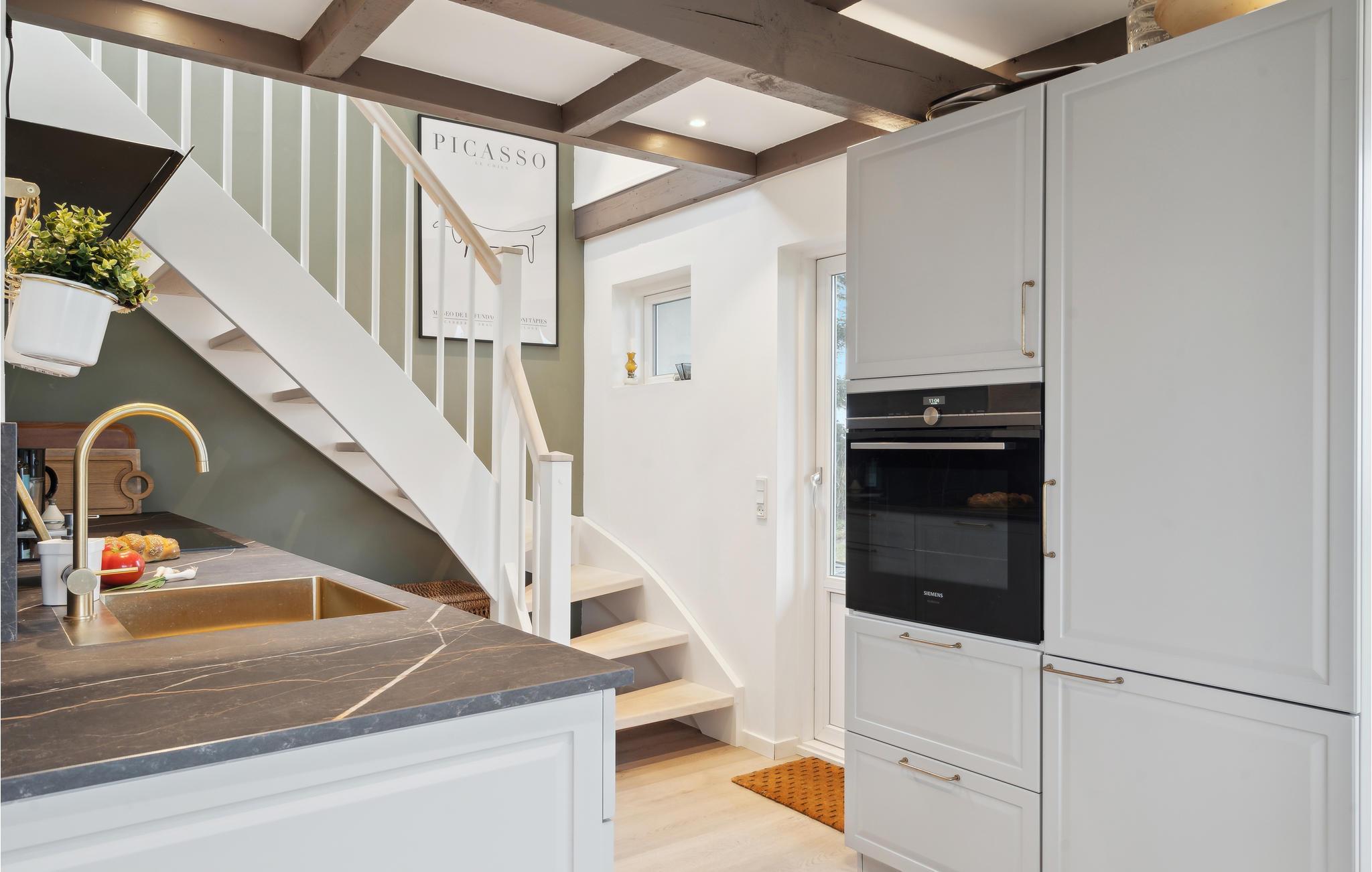 Velkommen til dette idyllisk beliggende hus på første række til vandet midt i et billedskønt fjordlandskab. Huset er hjemligt indrettet i lyse farver med masser af dagslys og markante loftsbjælker, og kan I glæde jer til en afslappende pause fra hverdagen. Lad blot blikkene vandre ud over landskabet, mens I spiser sammen, og gør jer det behageligt i sofaen efter en aktiv dag i naturen.