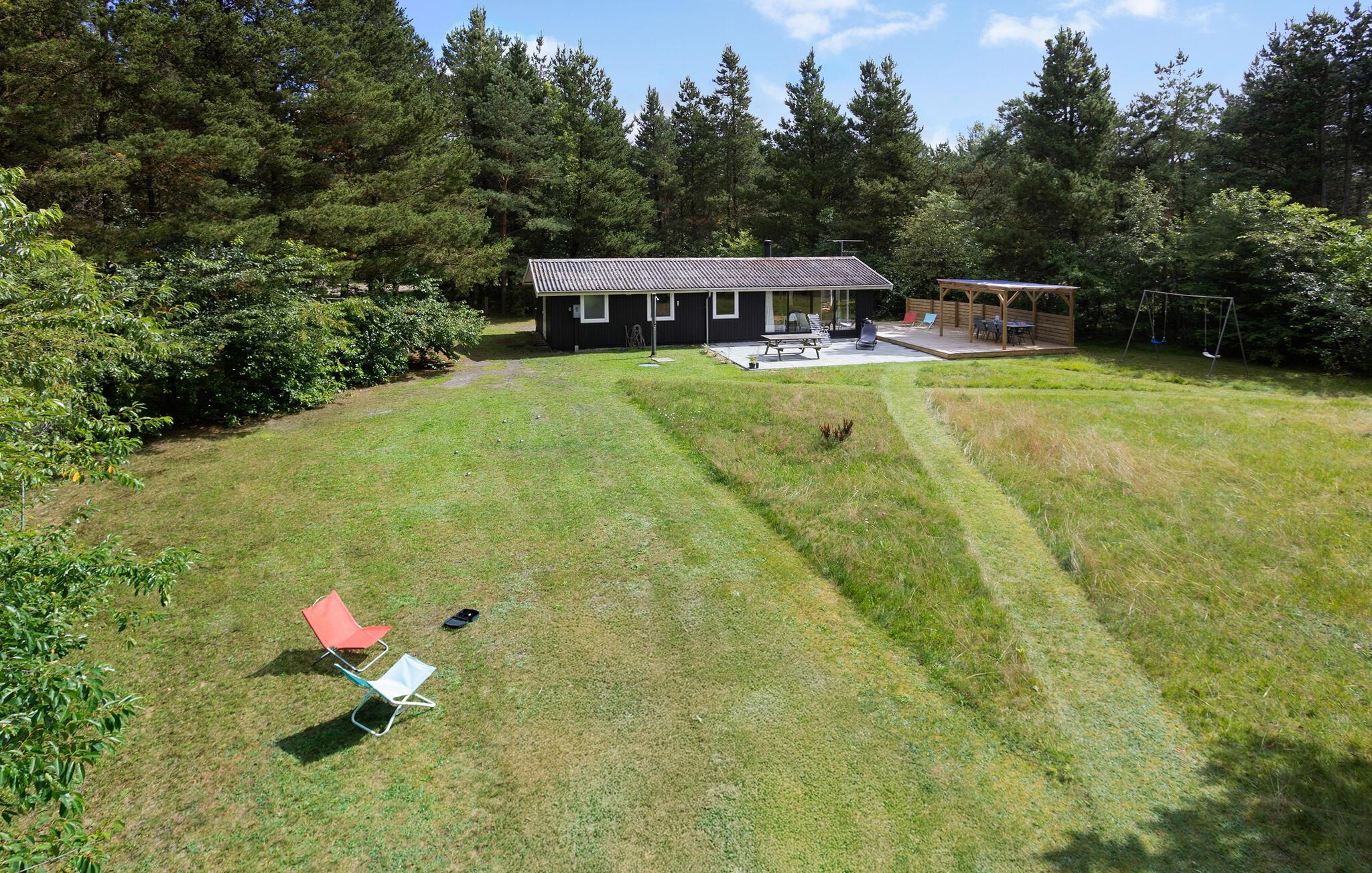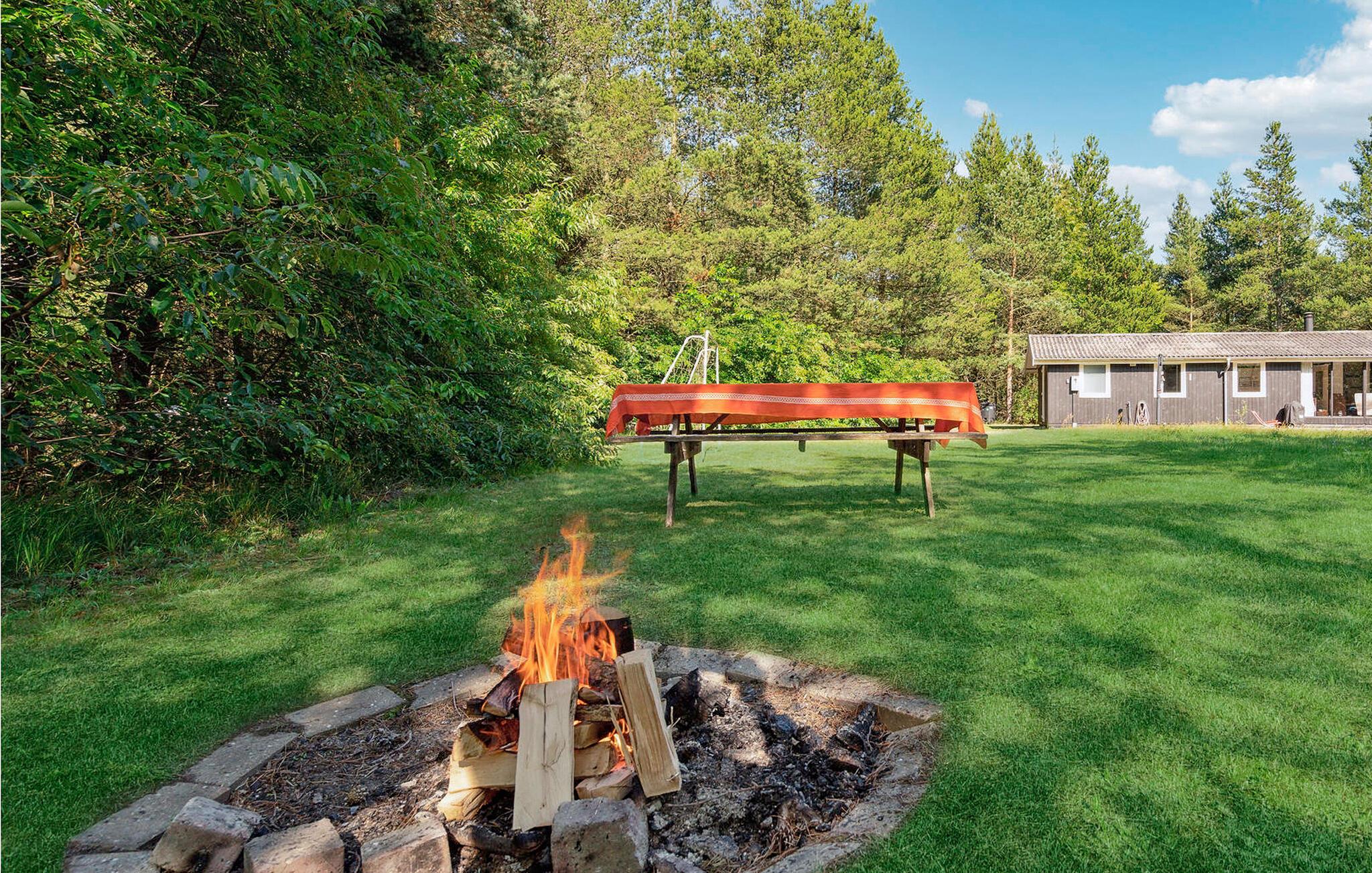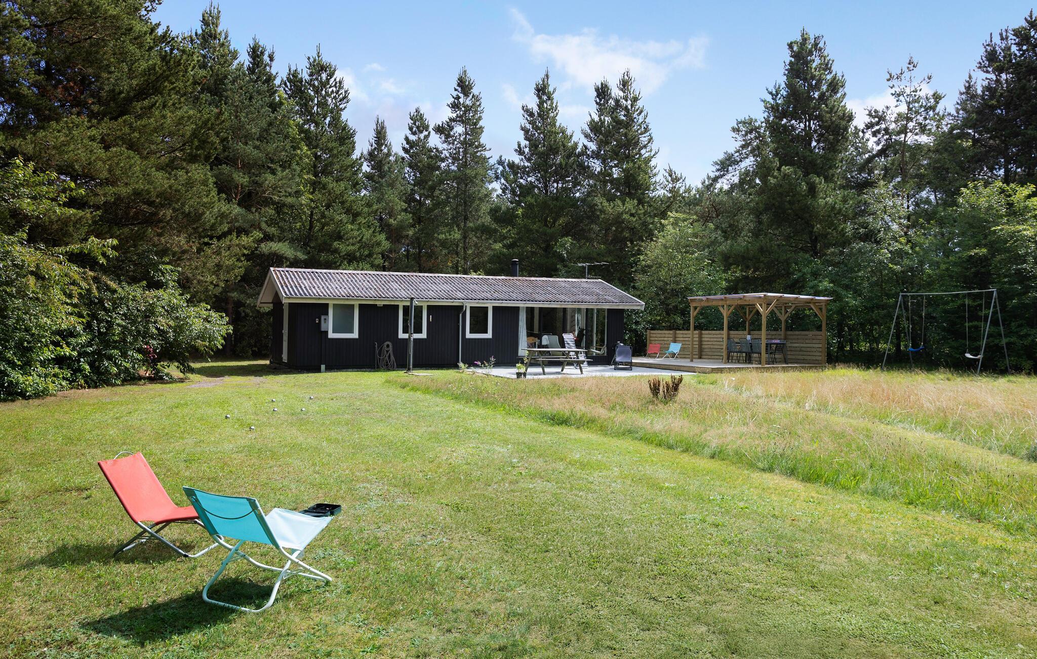 På solrige dage kan I slappe af ude på terrassen, mens børnene leger på den store grund (vær blot opmærksom på, at søen ligger tæt på). Senere kan I samles omkring bålstedet og riste skumfiduser, mens I kigger ind i flammerne.