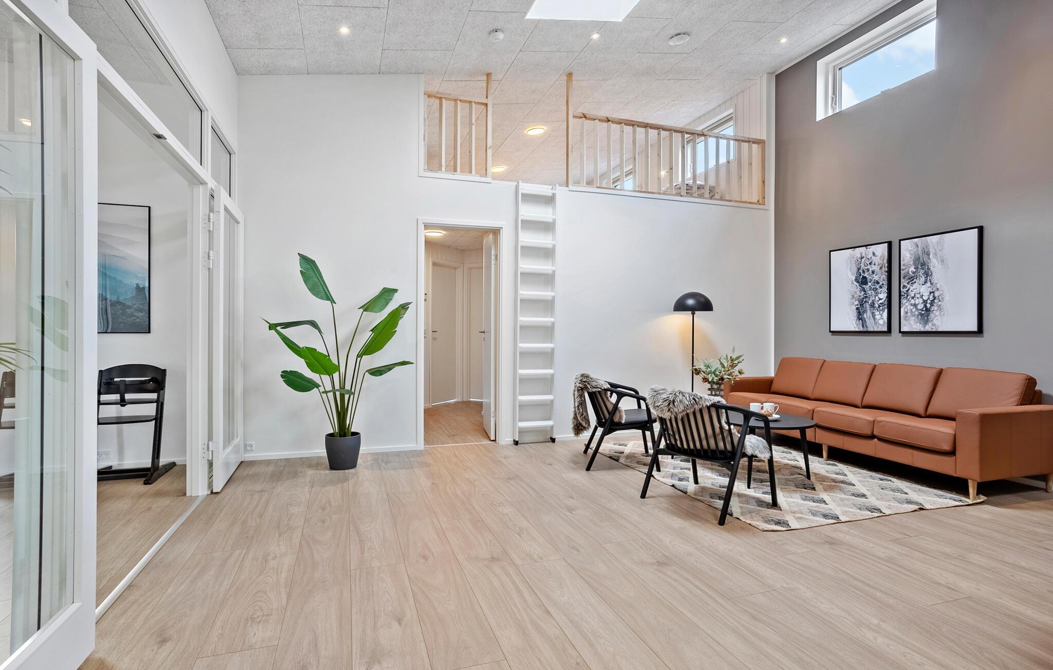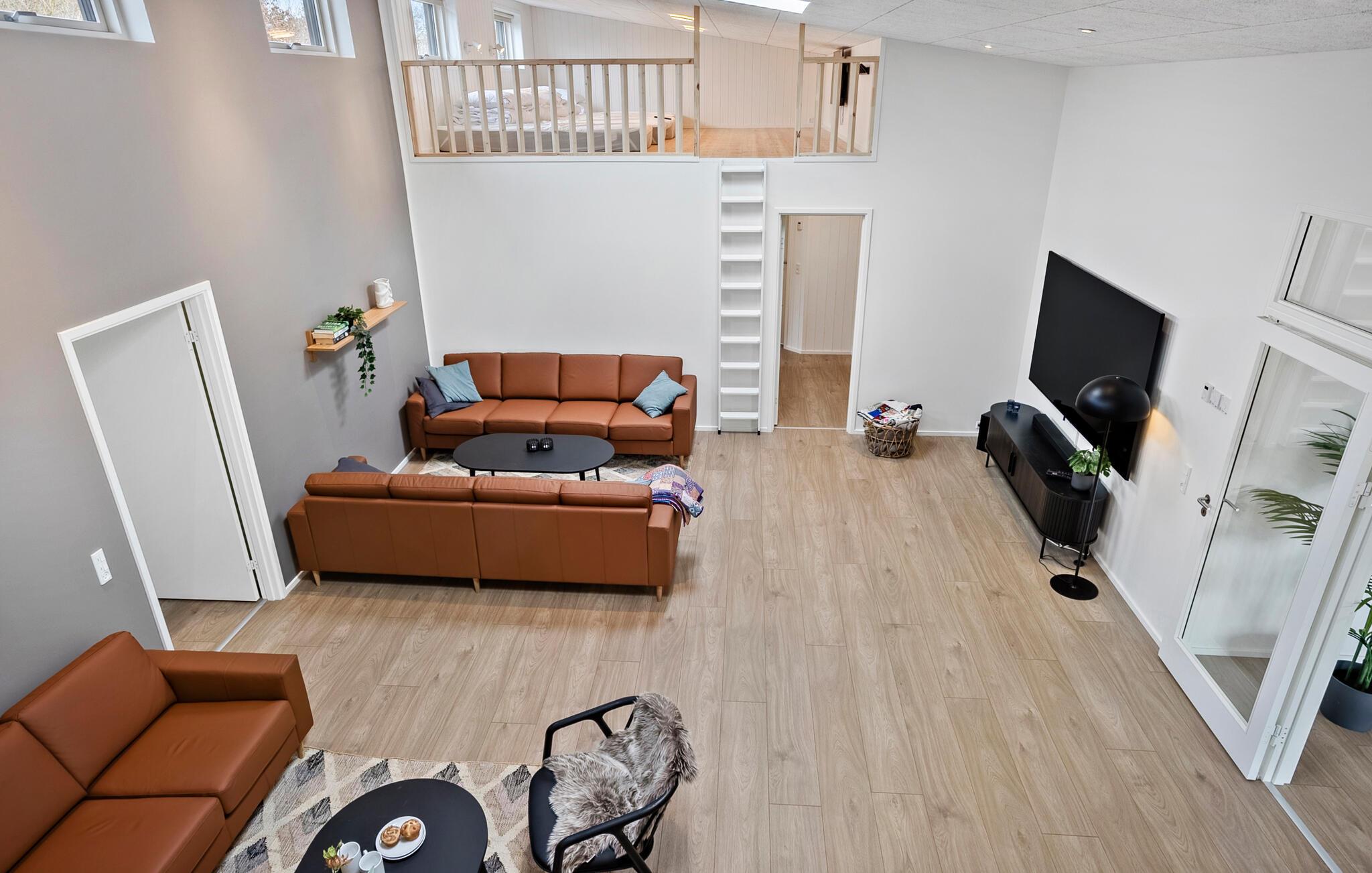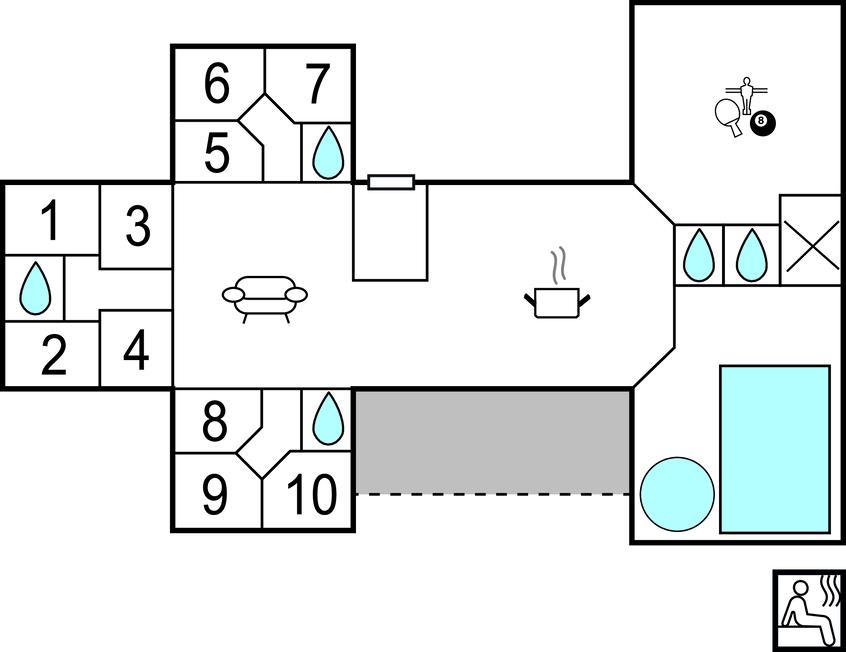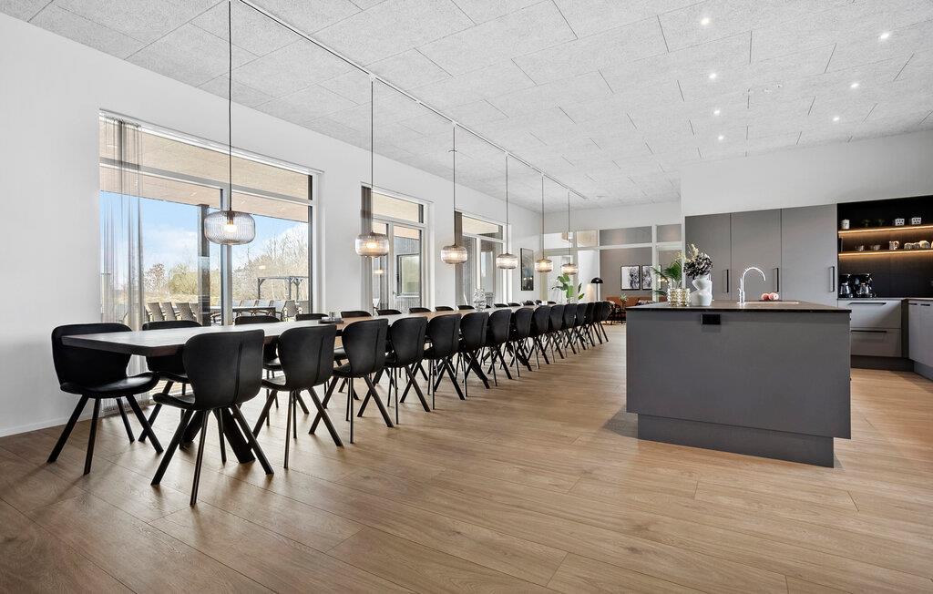 Oplev en behagelig pause med familien eller en større gruppe i dette eksklusivt indrettede feriehus. Her finder I ideelle betingelser for afslapning, leg og hygge sammen. Gå ind i den lyse stue med højt til loftet og moderne møbler. Find jer godt til rette i et af de hyggelige sofahjørner eller træk jer tilbage på hemsen med en bog. Brug det åbne, moderne køkken med en rummelig kogeø og nyd måltiderne sammen ved det lange spisebord. Dyk ned i den rummelige indendørs pool med vandrutsjebane og afslut dagen i spabadet. Der tilbydes underholdning i aktivitetsrummet med bordtennis, billard og dart.