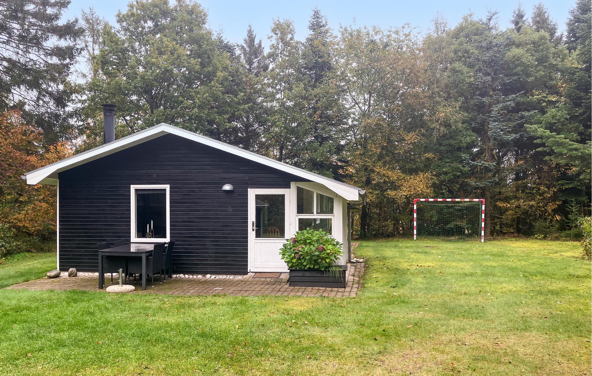 Hyggeligt feriehus nær Virksund Strand med skov, fjordudsigt og stor have, perfekt til afslapning og aktiviteter.