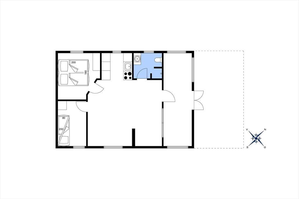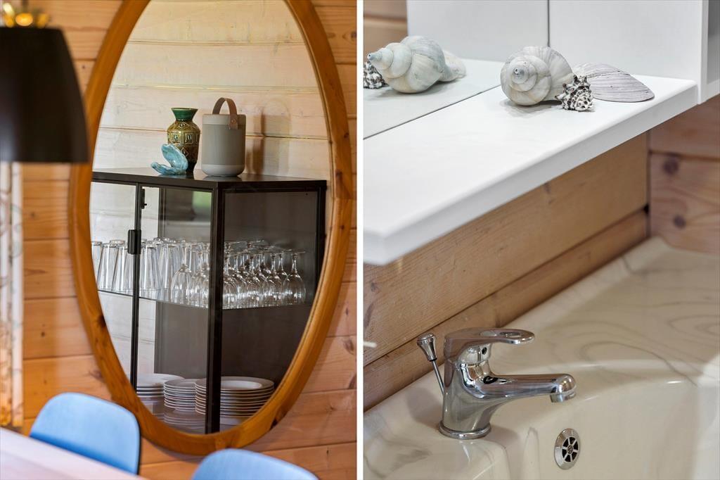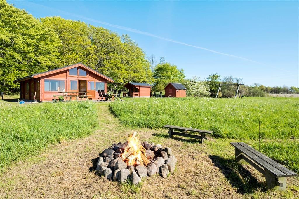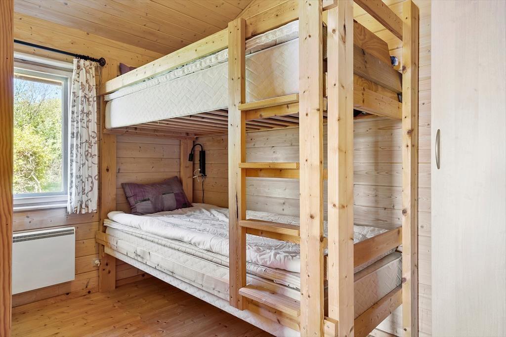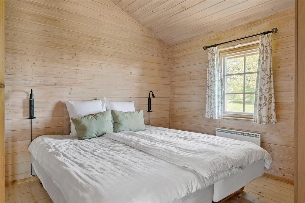 Når du træder indenfor i dette charmerende træhus, bliver du straks mødt af en lys og indbydende atmosfære, der emmer af feriestemning. Sommerhuset er ideelt indrettet til at skabe ro og afslapning med masser af naturligt lys, der strømmer ind gennem de store vinduespartier. Samlingspunktet er stuen, hvor komfortable møbler indbyder til hyggelige aftener foran brændeovnen. Det åbne køkken ligger i direkte forbindelse med spisepladsen, så samtalerne kan flyde frit, mens der laves mad. Til de yngste – eller dem, der bare trænger til lidt privatliv – er det lille, hyggelige anneks med to sovepladser en skøn mulighed.