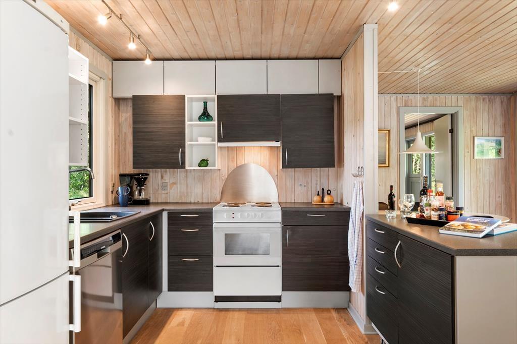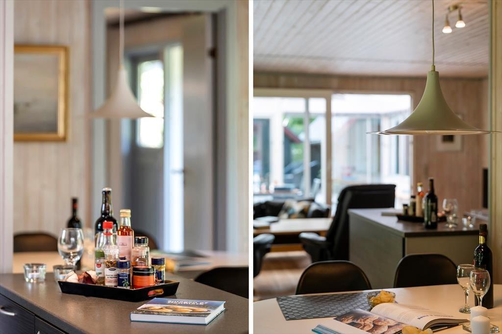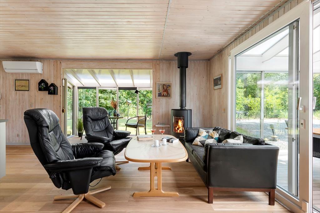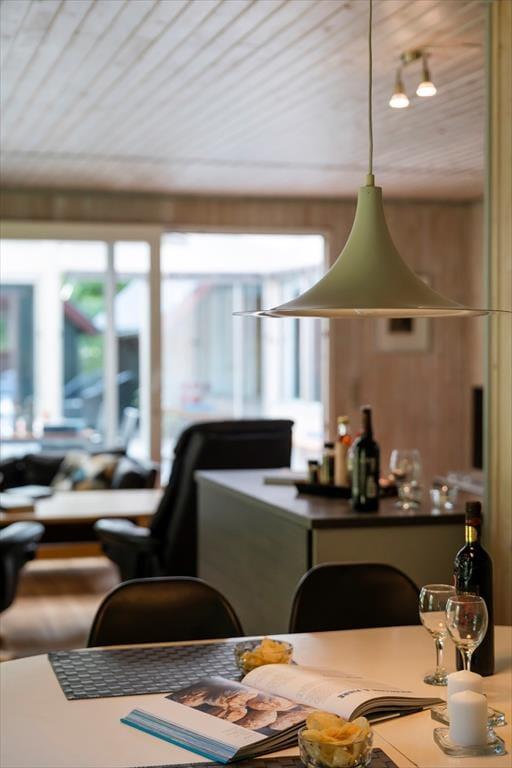 Det første, du lægger mærke til, når du træder indenfor, er, hvor lyst og indbydende her er. De åbne rum og den rolige indretning får hurtigt skuldrene til at sænke sig, og både stuen og det åbne køkken inviterer til hyggeligt samvær, gode snakke og lange morgenmåltider. Den store udestue med skydedøre forlænger opholdsrummet med masser af dagslys, og her kan du sidde og nyde udsigten over haven – uanset om solen skinner, eller regnen trommer blidt mod ruderne. Når dagen går på hæld, kan du finde en god bog frem, brygge en kop te og lade roen falde helt ind. Det føles som en verden væk fra hverdagen, og det er præcis sådan, feriestemning skal være.