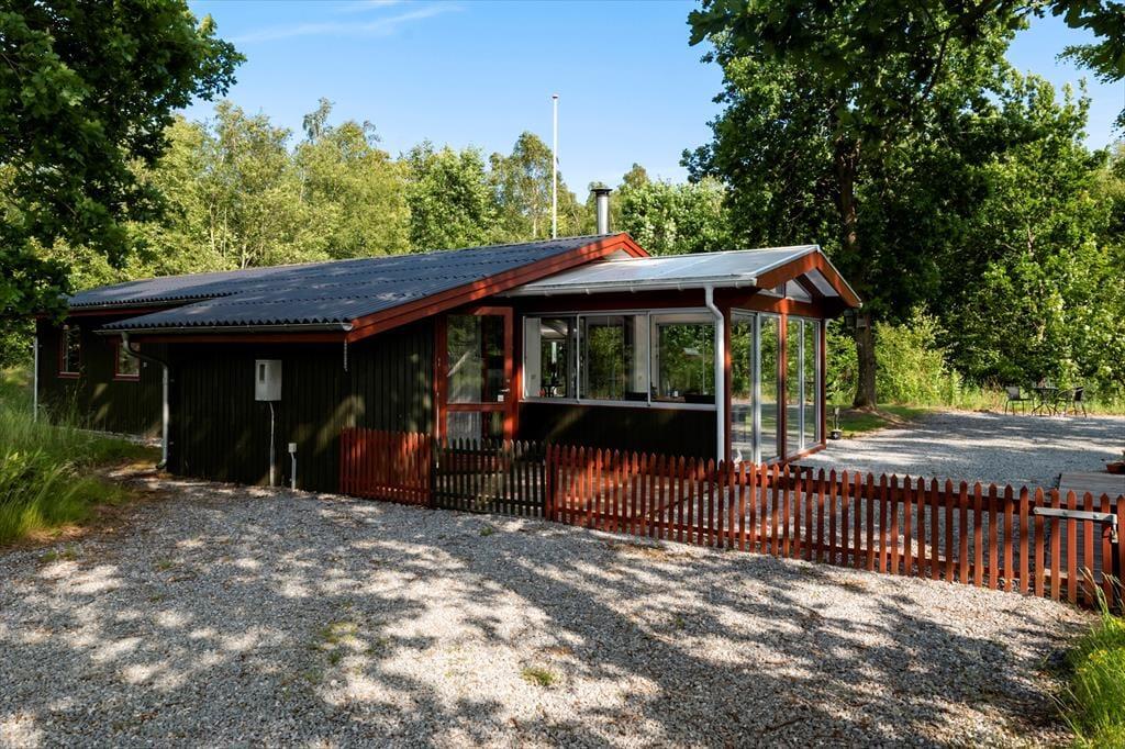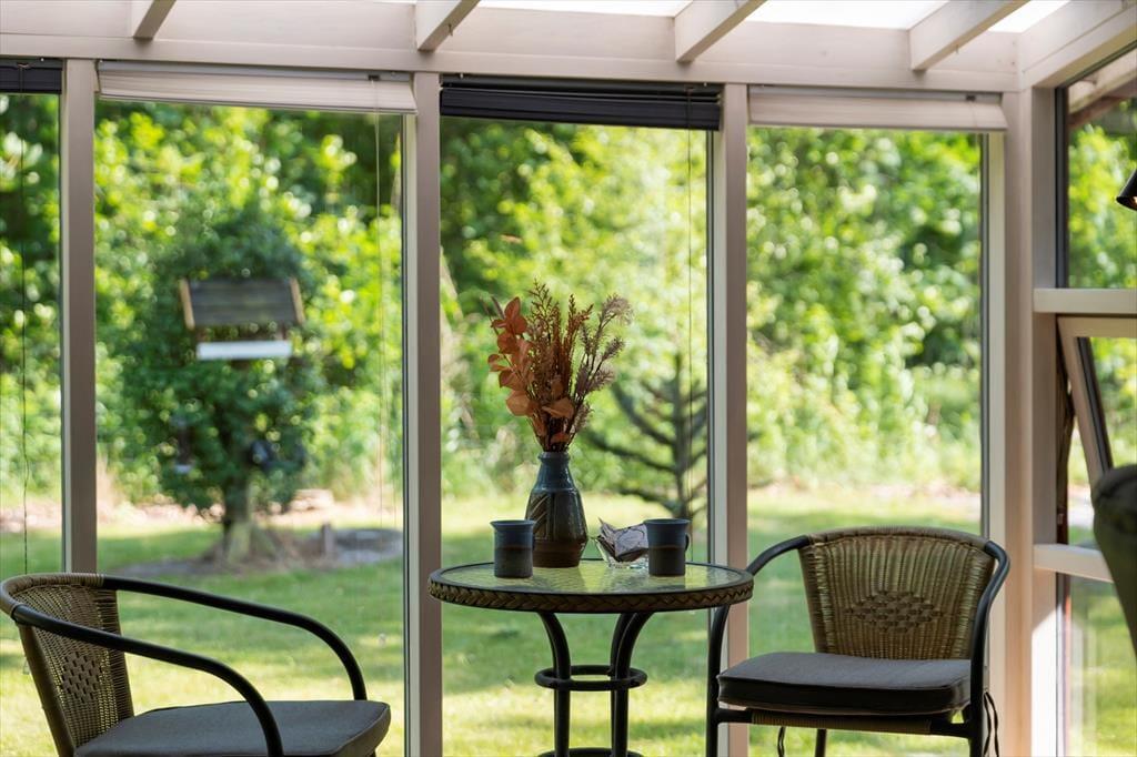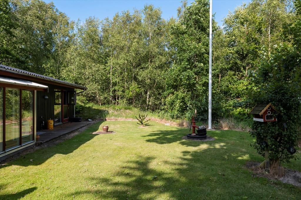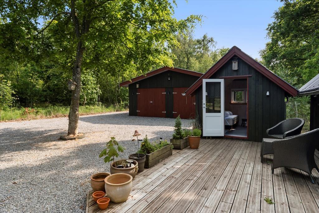 Udenfor breder en stor naturgrund sig omkring huset, og du mærker hurtigt den særlige ro, som kun findes, når man er omgivet af grønne omgivelser og fuglekvidder. Hele grunden er indhegnet, så både børn og hunde kan færdes frit og trygt, og det gør det nemt at slappe af og bare være til stede i nuet. Find dig til rette i en havestol, nyd eftermiddagskaffen i solen, eller dæk op til grillmiddag under åben himmel. Her er rig mulighed for både at være aktiv og for bare at nyde stilheden og de fredelige omgivelser. Udestuen fungerer som et dejligt overgangsrum mellem inde og ude – og på kølige aftener er det et oplagt sted at fortsætte feriehyggen med tæpper og levende lys.