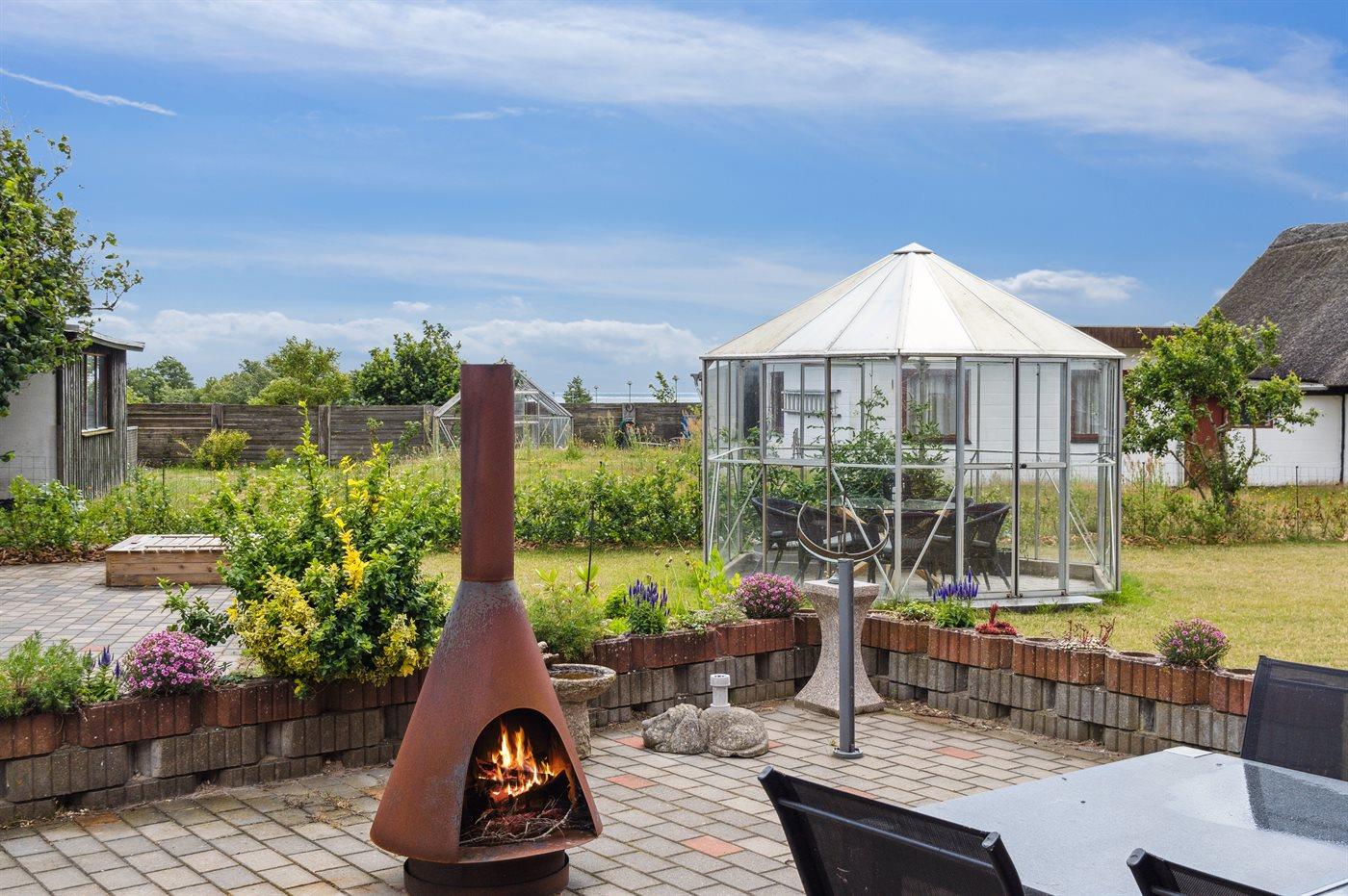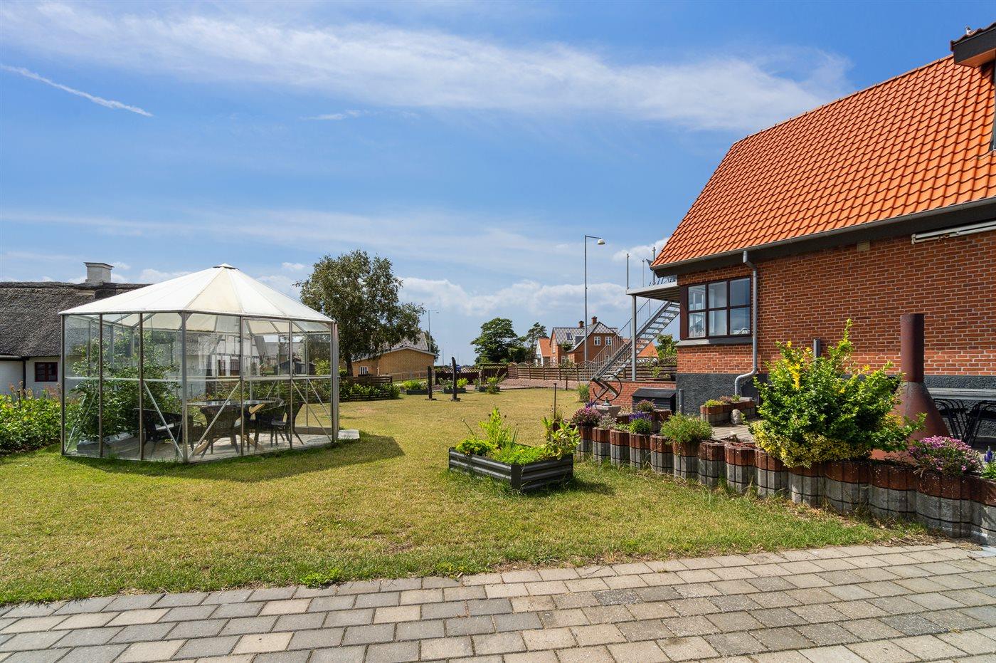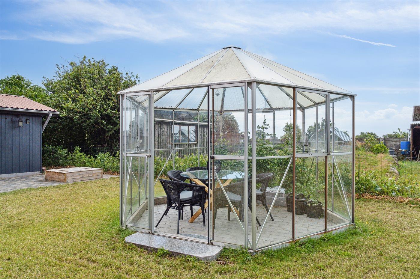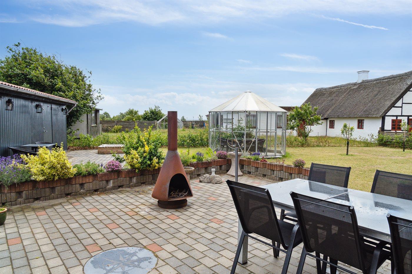 Ferieboligen er beliggende på en 740 m² stor havegrund. Grunden er indhegnet. Der er 500 m til havet, og nærmeste forretning er beliggende i en afstand af 1000 m. Til ferieboligen hører 30 m² åbent terrasseareal, redskabsrum og sandkasse. Der ligger en legeplads i en afstand af 500 m. Grill til rådighed. Der er carport til rådighed. Der er installeret stik til opladning af elbil. Parkering ved ferieboligen.