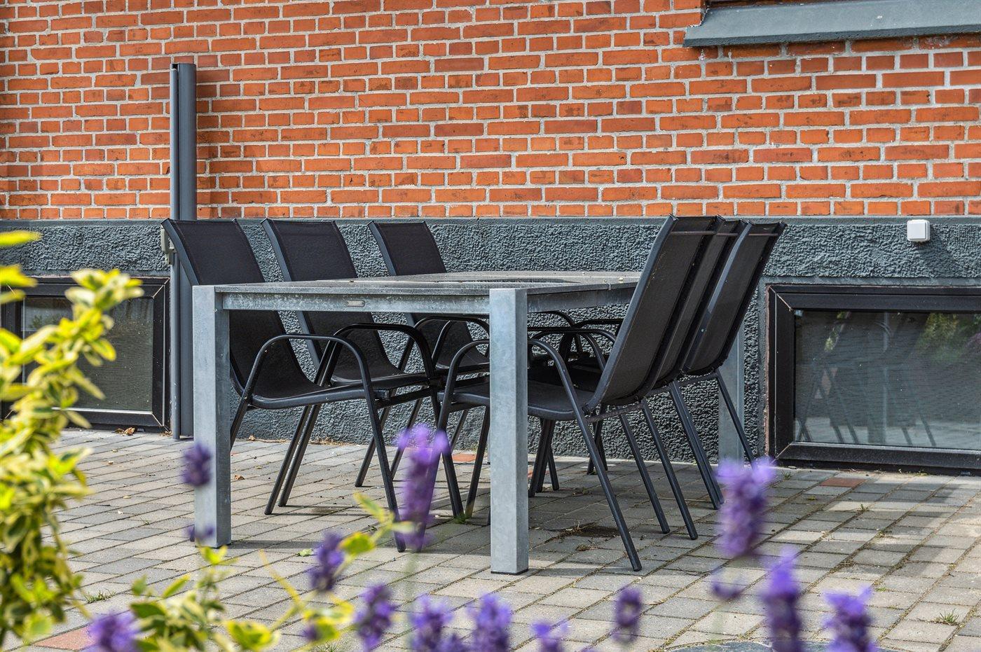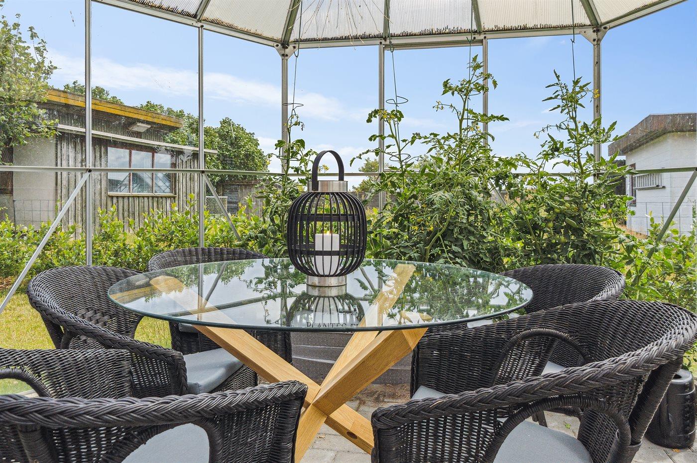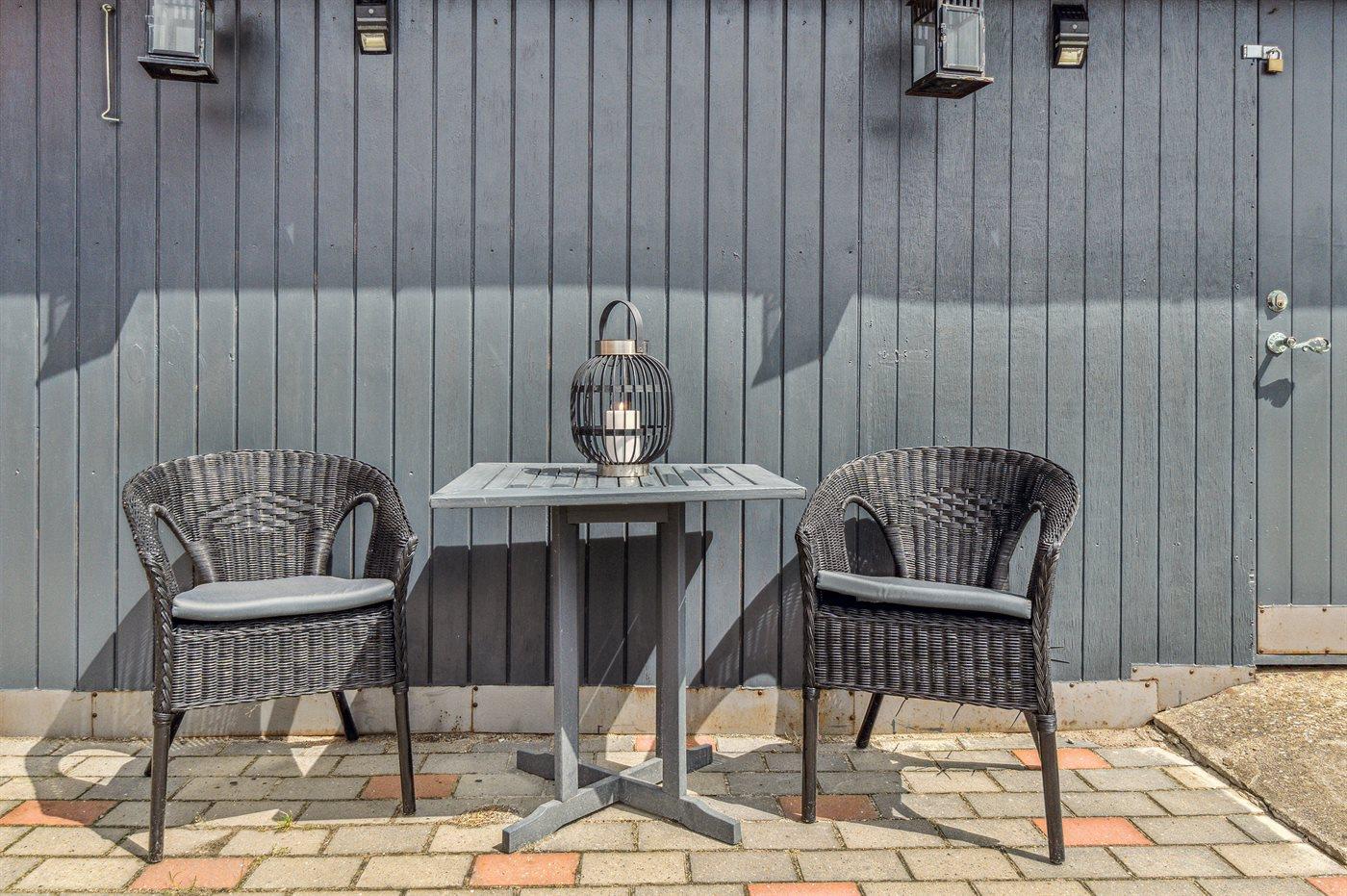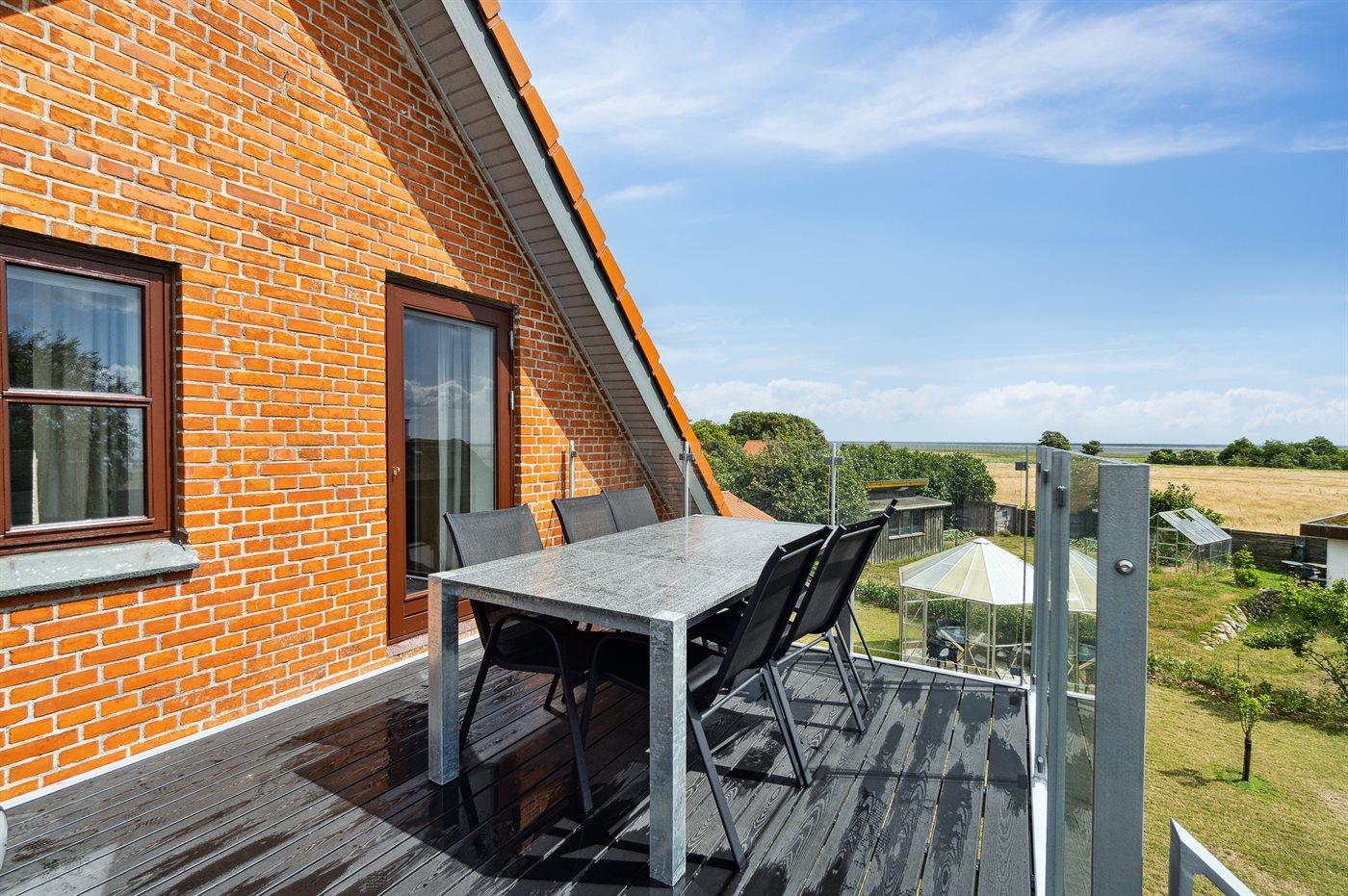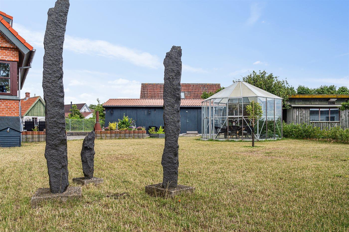 Ferieboligen er beliggende på en 740 m² stor havegrund. Grunden er indhegnet. Der er 500 m til havet, og nærmeste forretning er beliggende i en afstand af 1000 m. Til ferieboligen hører 30 m² åbent terrasseareal, redskabsrum og sandkasse. Der ligger en legeplads i en afstand af 500 m. Grill til rådighed. Der er carport til rådighed. Der er installeret stik til opladning af elbil. Parkering ved ferieboligen.