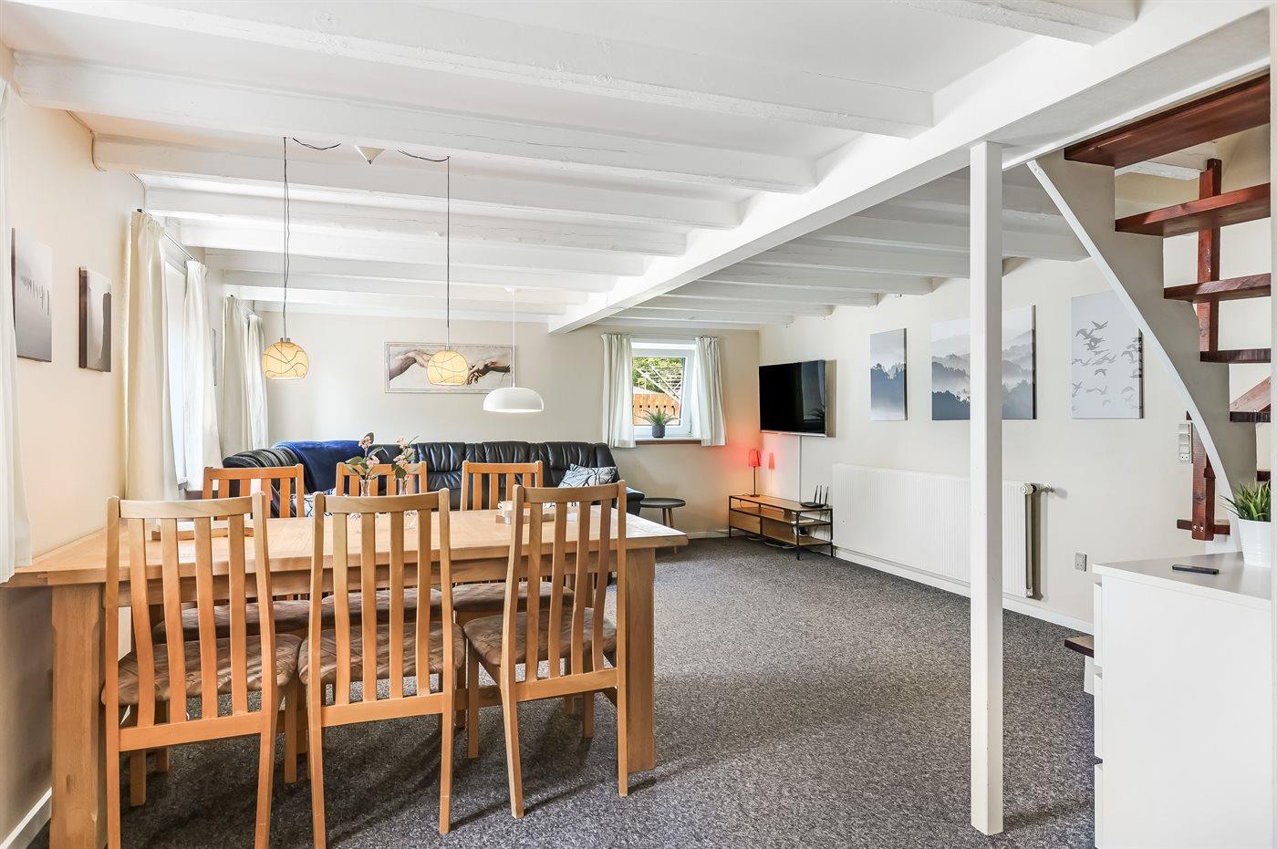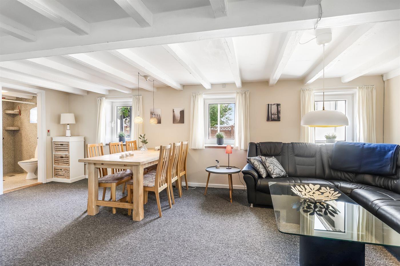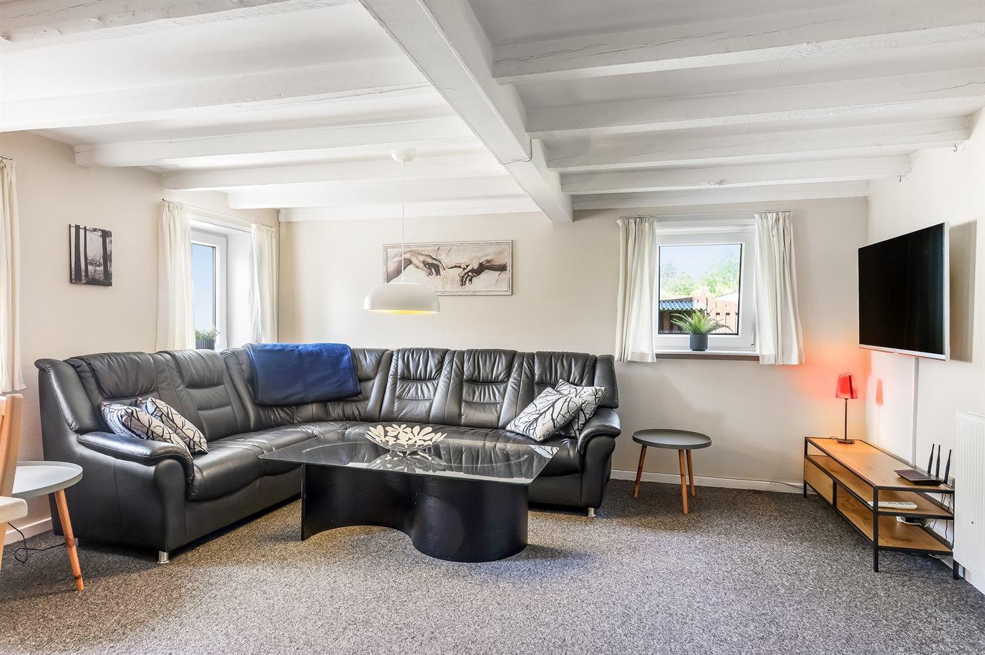 Denne hyggelige ferielejlighed ligger centralt placeret i Voerså by, hvor det er nemt at handle ind, tage en tur på havnen eller til stranden.