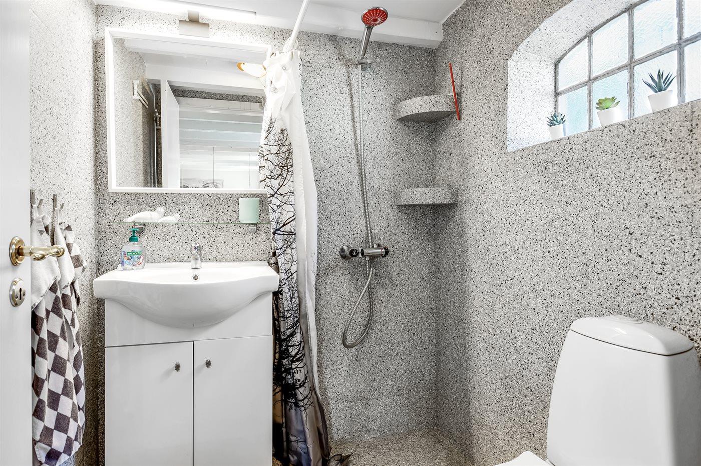 Der er 1 badeværelse med bruseniche og 1 toilet.