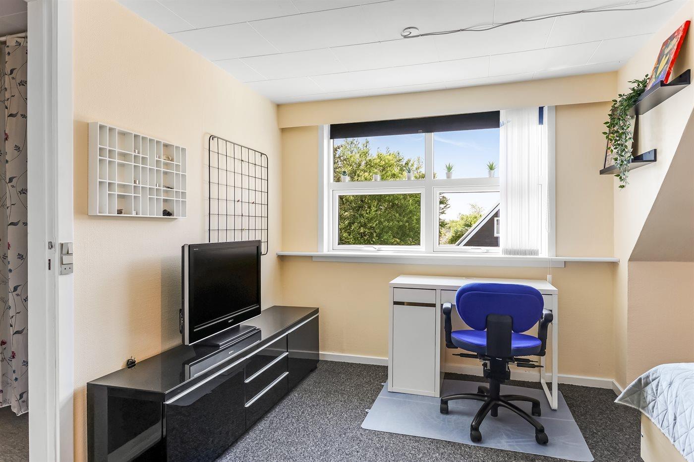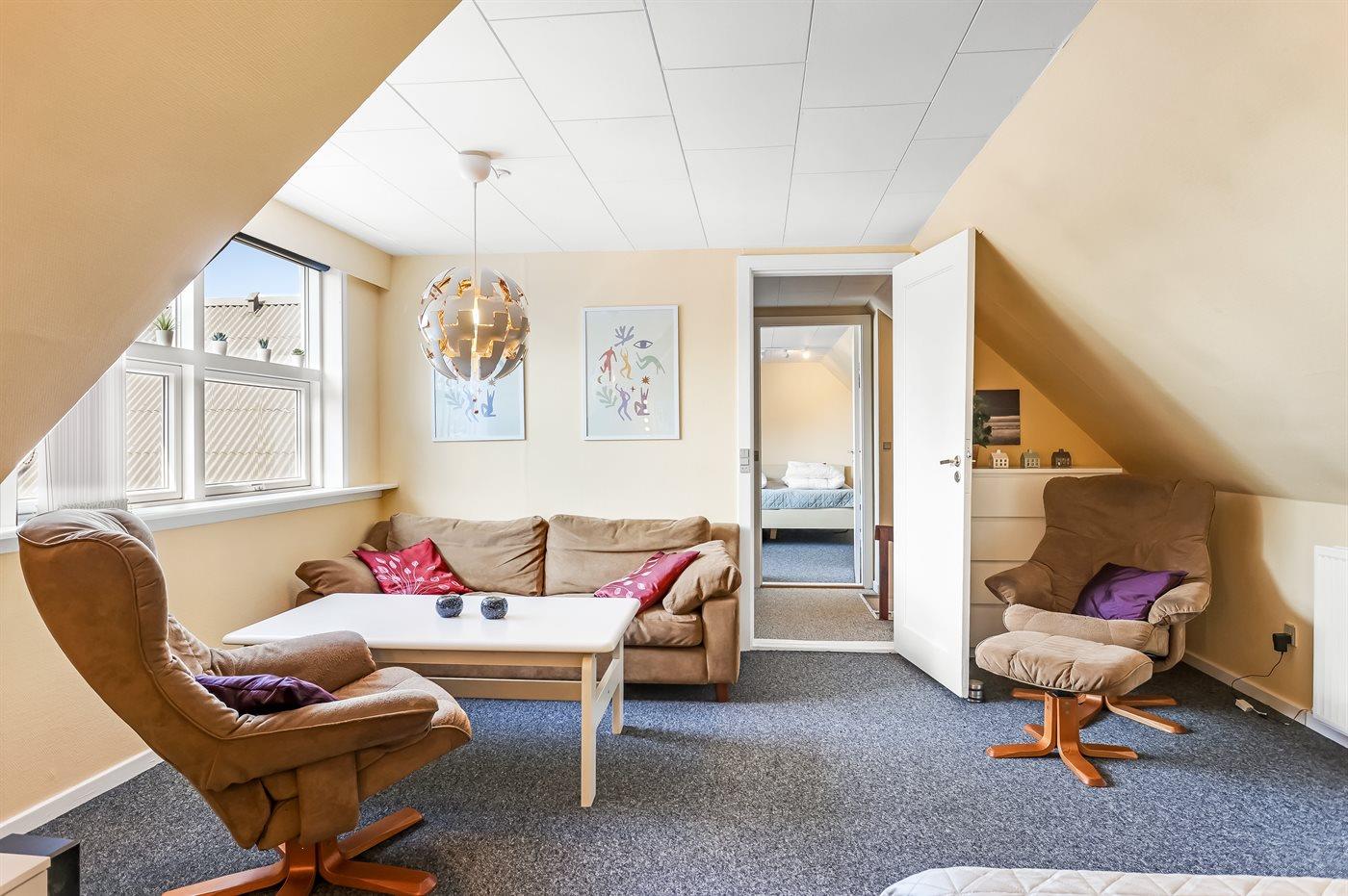 Der er i alt 2 soveværelser. Sovepladserne fordeler sig på: 4 sovepladser i elevationssenge. Derudover er der 1 stk. barneseng.