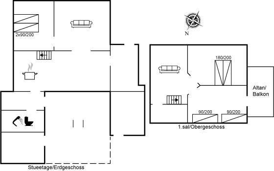 Der er i alt 3 soveværelser. Sovepladserne fordeler sig på: 2 sovepladser i dobbeltseng. 4 sovepladser i enkeltsenge.