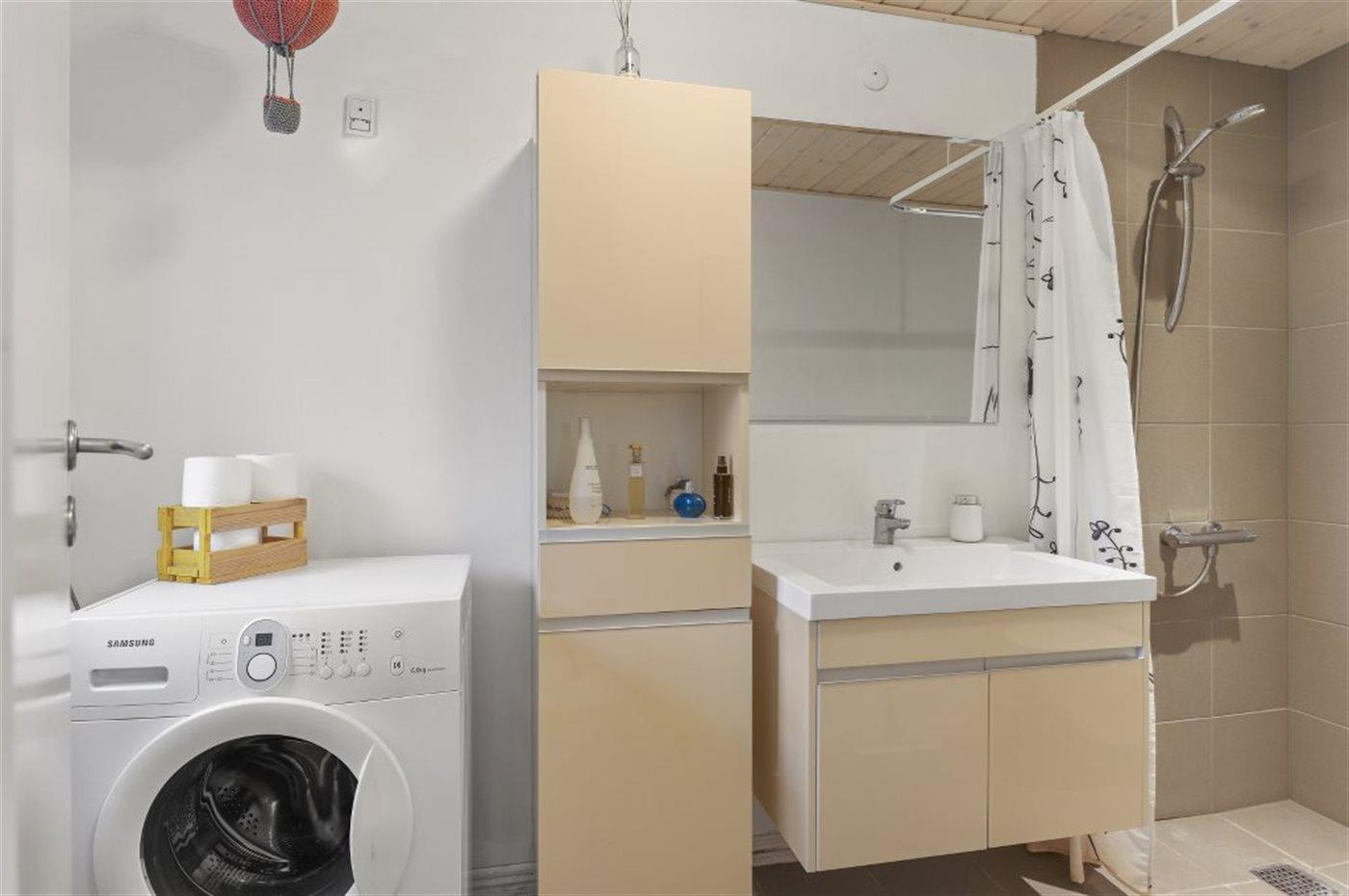 Der er 1 badeværelse med bruseniche og 1 toilet.. Der er gulvvarme på 1 badeværelse.