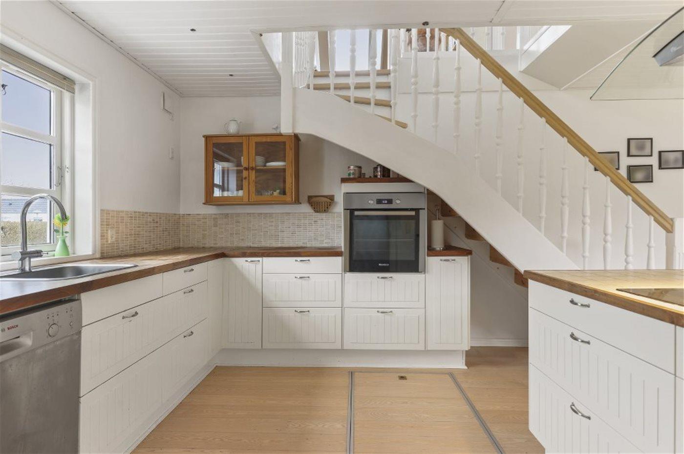 Køkkenet er udstyret med 1 køleskab. Der er 4 keramiske kogeplader, varmluftovn, mikrobølgeovn samt opvaskemaskine.