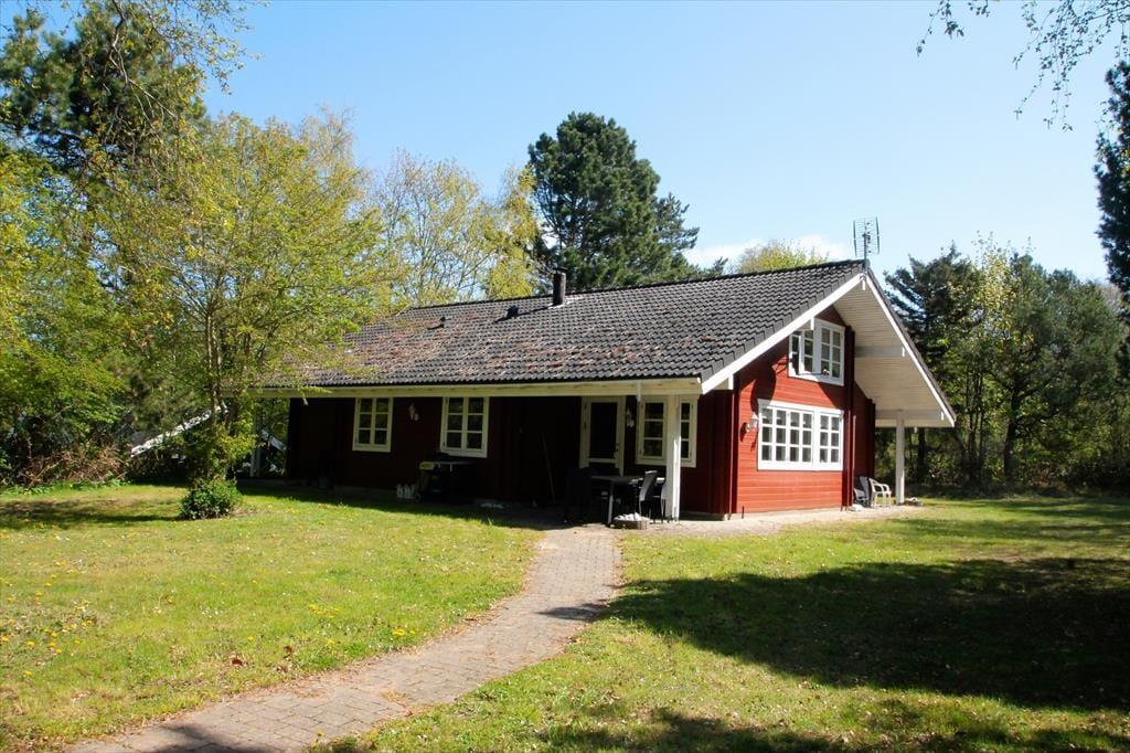 Nyd livet udenfor: Huset ligger på en 1.000 m² stor grund med fliseterrasse, der går rundt om huset. Til feriehuset hører havemøbler og grill, hvilket giver gode muligheder for udendørs samvær og afslapning.