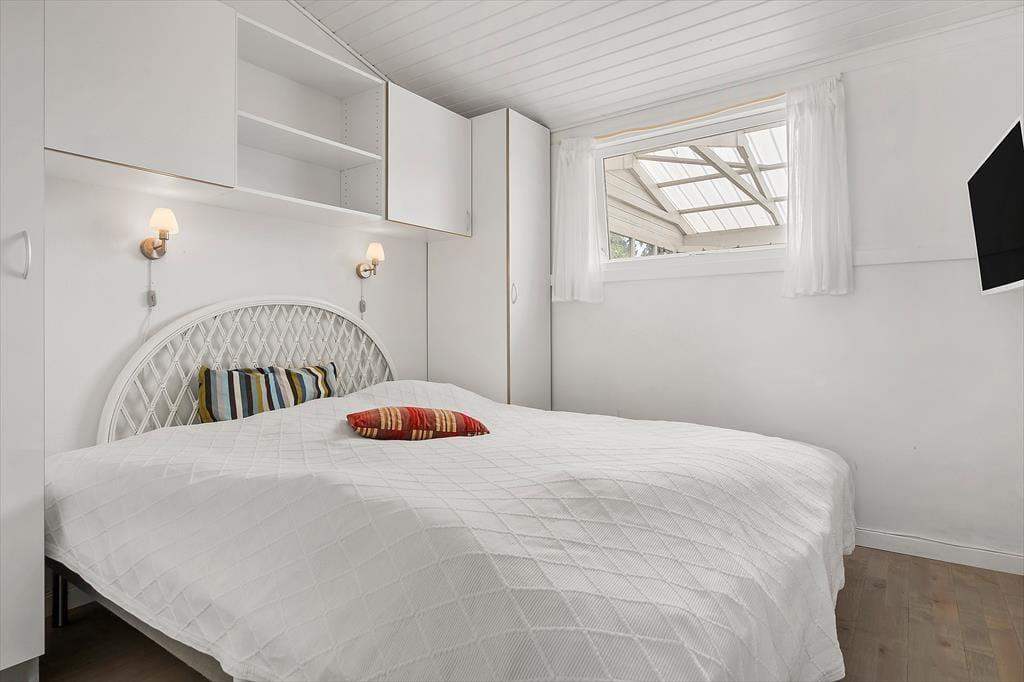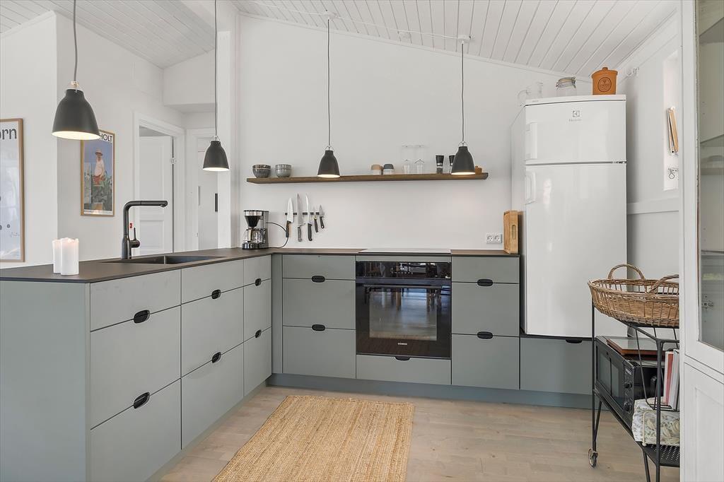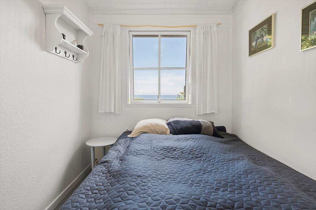 Feriehuset som er dejligt lyst byder på et fantastisk lysindfald fra det store vinduesparti i stuen. Det er indrettet med kombineret køkken og opholdsstue. Nyt lækkert Kvik køkken fra 2024 med indbygget ovn, kogeplader, mikroovn, opvaskemaskine, og køleskab med fryser. Lys og velindrettet opholdsstue med stort vinduesparti, hvilket giver både masser af lys i huset, samt ikke mindst en helt fantastisk havudsigt, udgang til terrasse, god spiseplads, sofa og lænestole, Smart-TV med DR programmer og More TV pakke via app. To Badeværelser med brusenicher, hvoraf det ene har en vaskemaskine. Tre soveværelser, to med dobbeltsenge og et med en halvanden mands sovesofa (120x200). Huset opvarmes med varmepumpe, elvarme samt pille brændeovn.