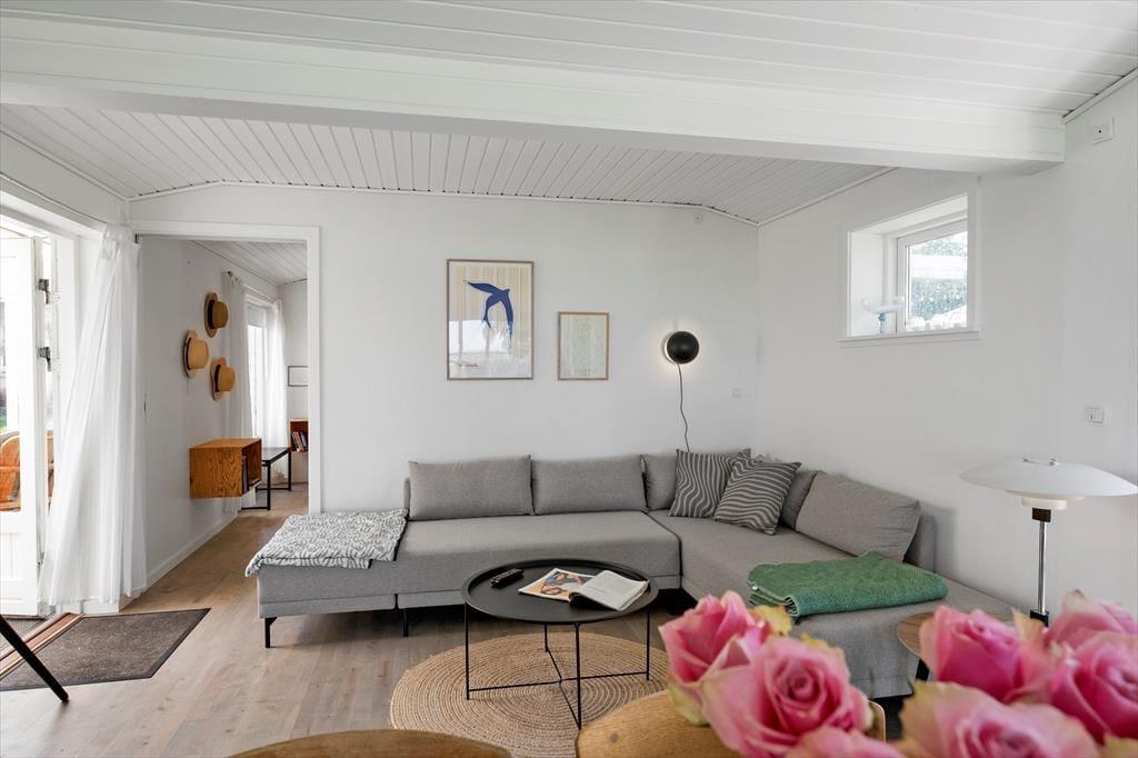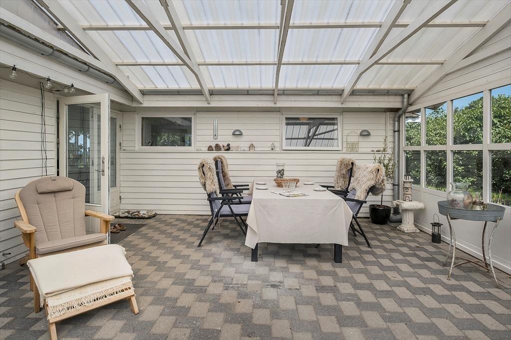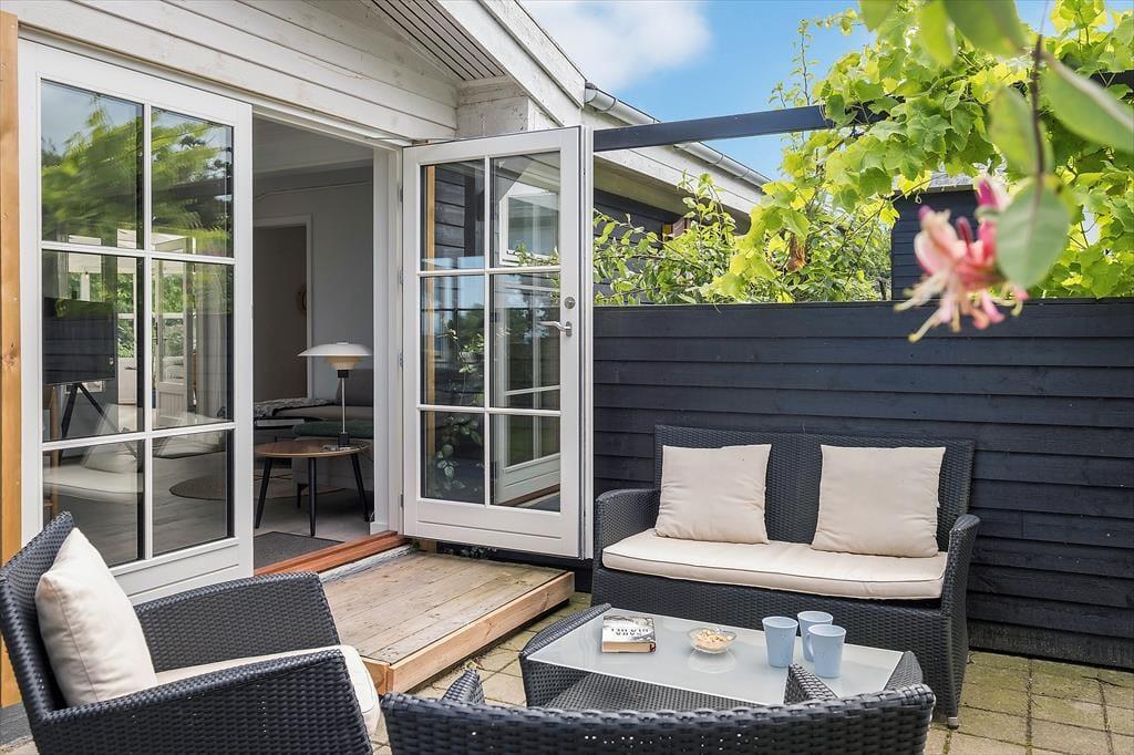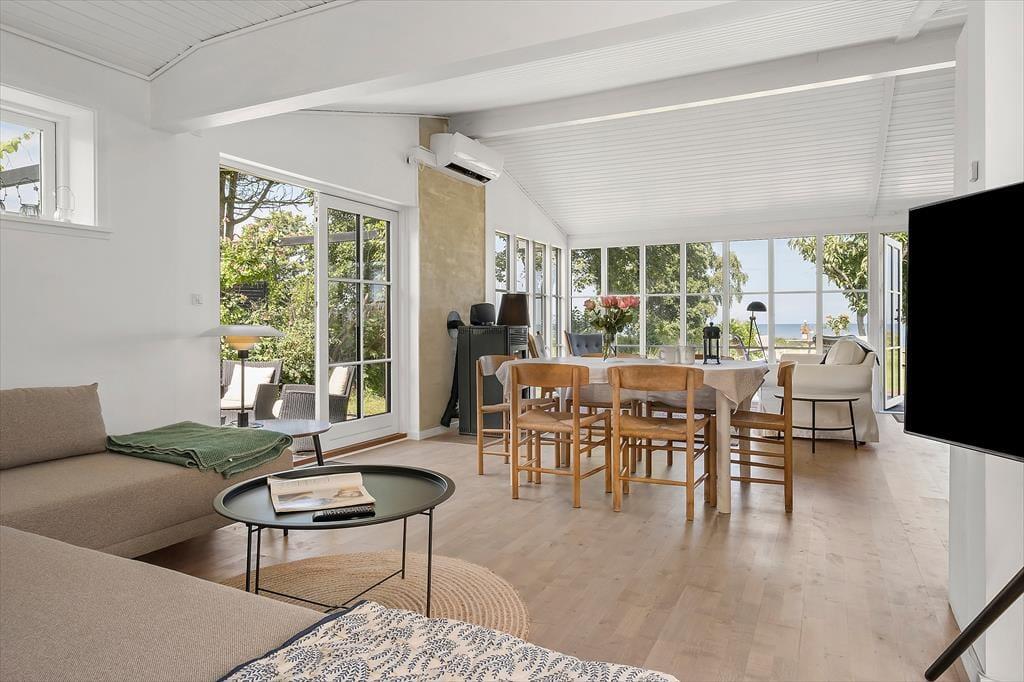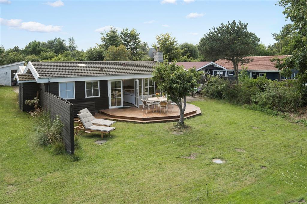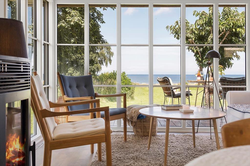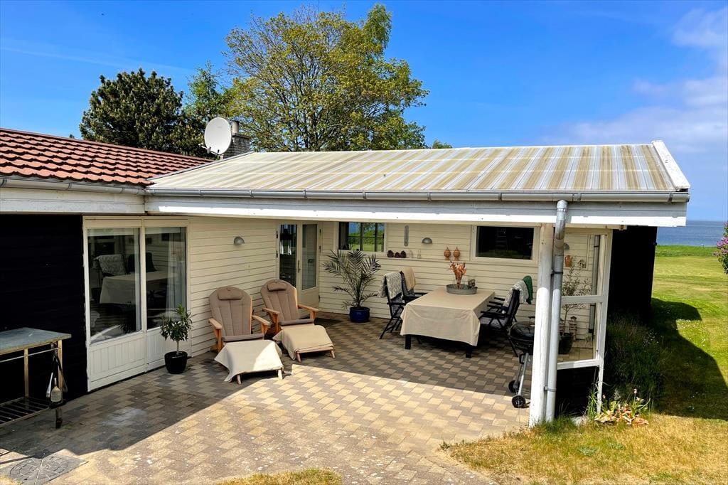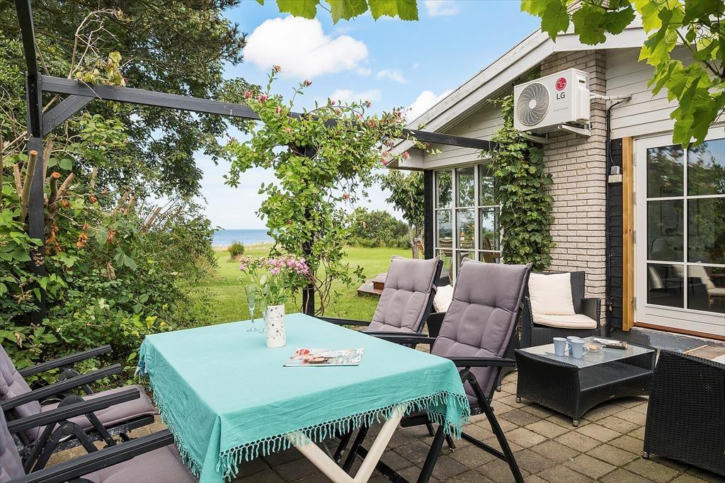 Huset har en grund som går direkte ned til stranden. Træk stikket ud og nyd de solrige dage på terrassen, og den skønneste havudsigt. Om aftenen kan der tændes op i grillen og nyd freden sænke sig mens solen går ned i horisonten. Desuden er der en 27 m2 rigtig hyggelig udestue. Ved feriehuset er der havemøbler, parasol og grill. Grunden foran huset er privat. Adgangen til vandet skal foregå fra sti på vejen