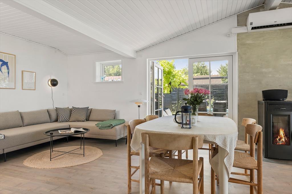 Beliggenhed er "kodeordet" til dette sommerhus Med kun 100m ned til stranden og Sejerøbugtens gode badevand ligger dette meget hyggelige og velholdte sommerhus på en smal lukket vej direkte til stranden. Vollerup er et naturskønt sommerhusområde på nordsiden af Røsnæs. Vollerup Strand er en del af et større sommerhusområde ca. 10 km nord for Kalundborg by ud til Sejerøbugten. Det er samtidig starten på halvøen Røsnæs. Området er omkranset af Vollerup Skoven, der med sit vildt- og fugleliv giver oplevelser året rundt. Tæt på finder man Danmarks største vingård, hvor man kan få en guidet rundtur kombineret med vinsmagning. På spidsen af Røsnæs finder man et fredet område med en enestående natur, som har et kuperet og dramatisk terræn, hvilket indbyder til lange gå eller cykelture. Der er 3 km til nærmeste indkøb. I havnebyen Kalundborg som ligger 8 km væk kan man finde masser af butikker, indkøbssteder, caféer og restauranter. Den gamle bydel med den 800 år gamle 5-tårnede kirke er helt klart også et besøg værd.