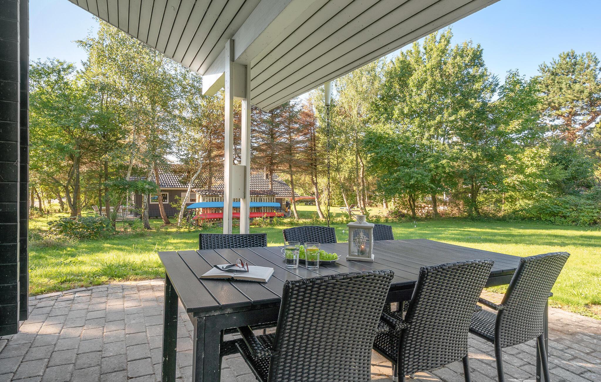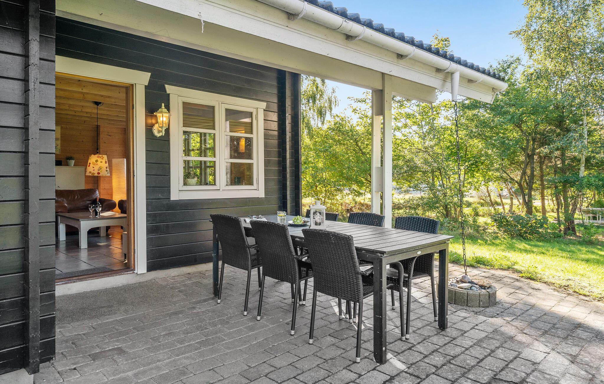 På en tilbagetrukket grund tæt ved skov og et dejligt strandområde ved Vollerup strand byder dette feriehus jer velkommen til afslappede dage i idylliske omgivelser. Nyd lækre måltider i det store, åbne opholdsrum, mor jer med sjove brætspil og varm jer i de kølige årstider med en god bog foran brændeovnen. Udenfor kan I slappe af på terrassen og nyde en kop kaffe i solskinnet, mens børnene boltrer sig på græsset.