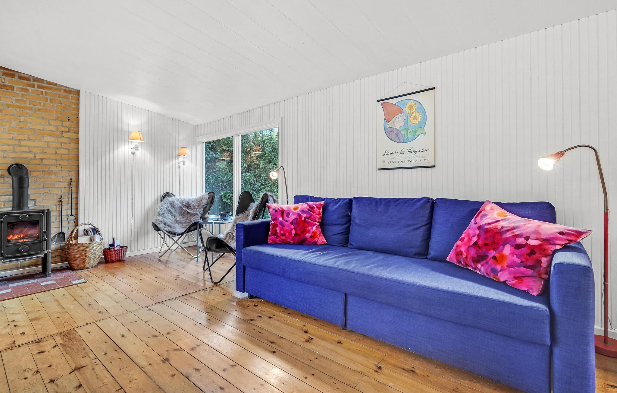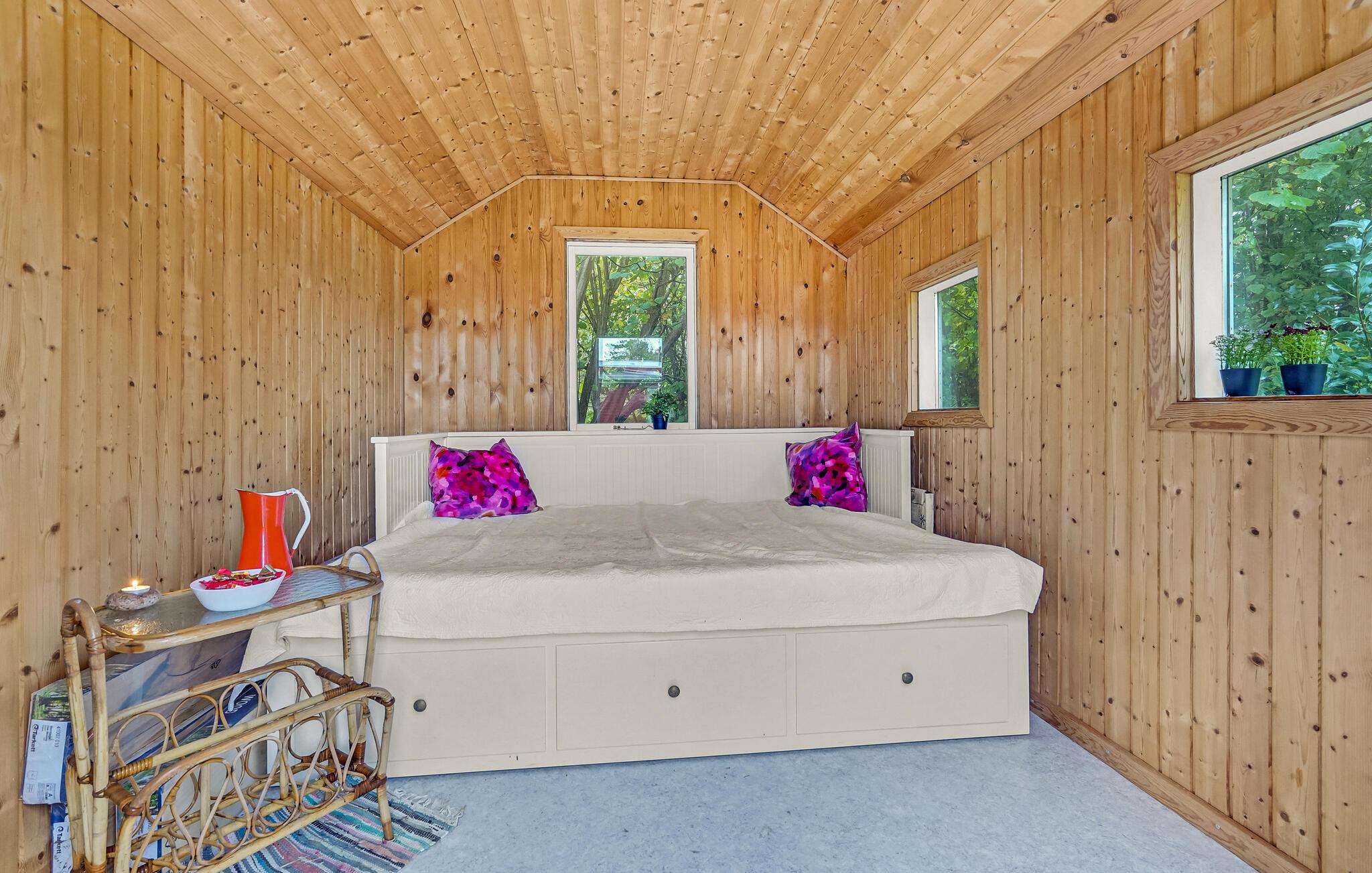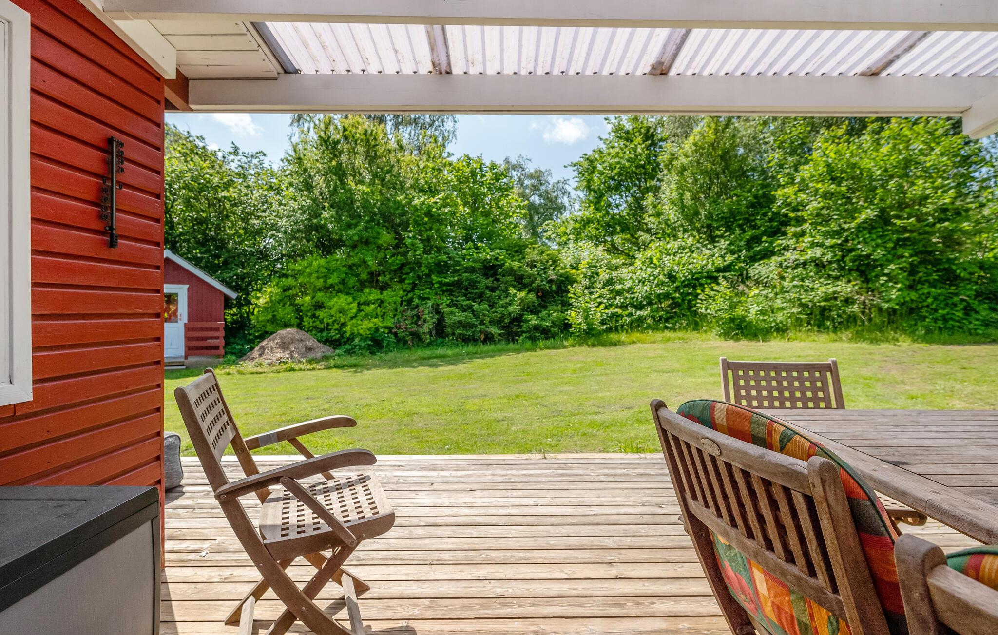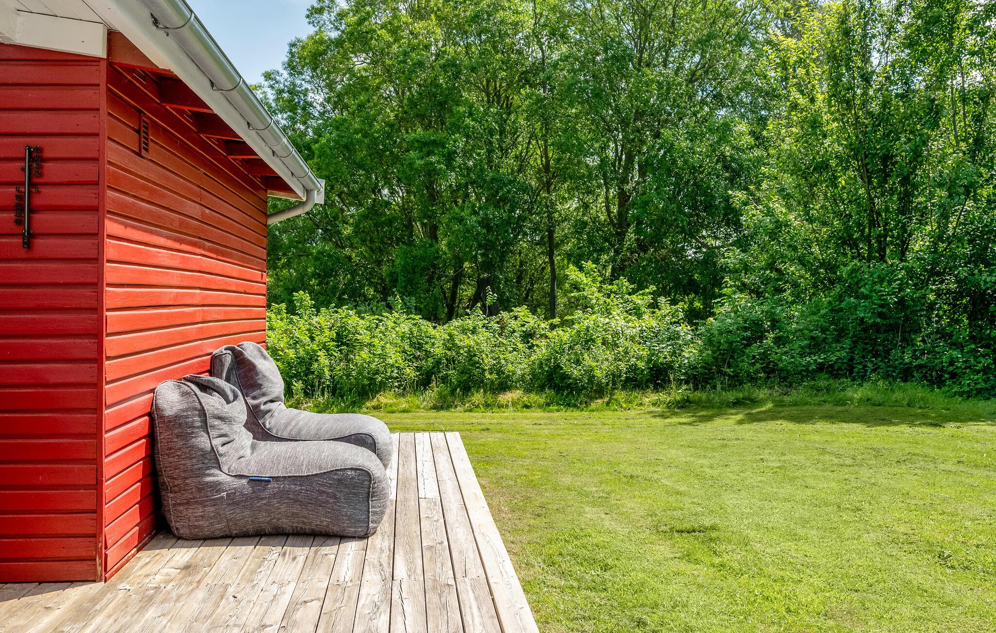Dette dejlige sommerhus lægger op til en afslappende ferie. Huset er lyst og venligt indrettet, og i særligt stuen er et skønt rum, hvor I kan nyde de hyggelige aftener, mens ilden buldrer i brændeovnen. Den fine, afskærmede veranda giver jer masser af muligheder for at holde grillarrangementer i løbet af sommeren - også hvis skyerne trækker sig sammen, eller det blæser lidt. Der er god plads i haven, så de yngste feriegæster får også gode rammer til at slå sig løs og have det sjovt i det fri. I haven finder I også et hyggeligt anneks med endnu et soveværelse.