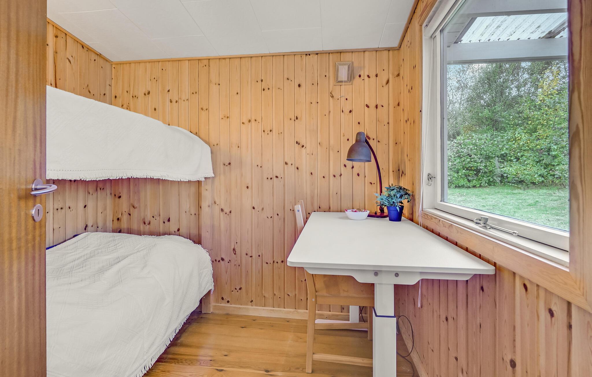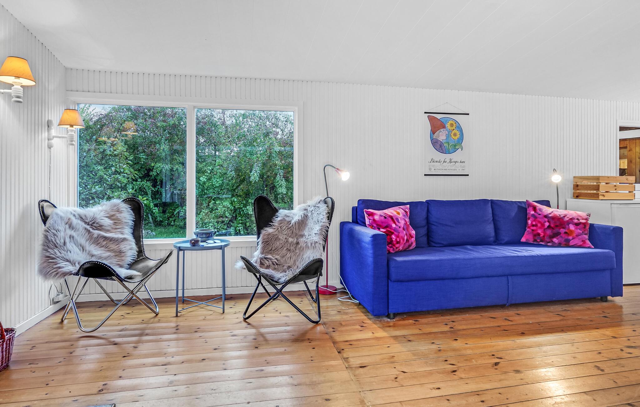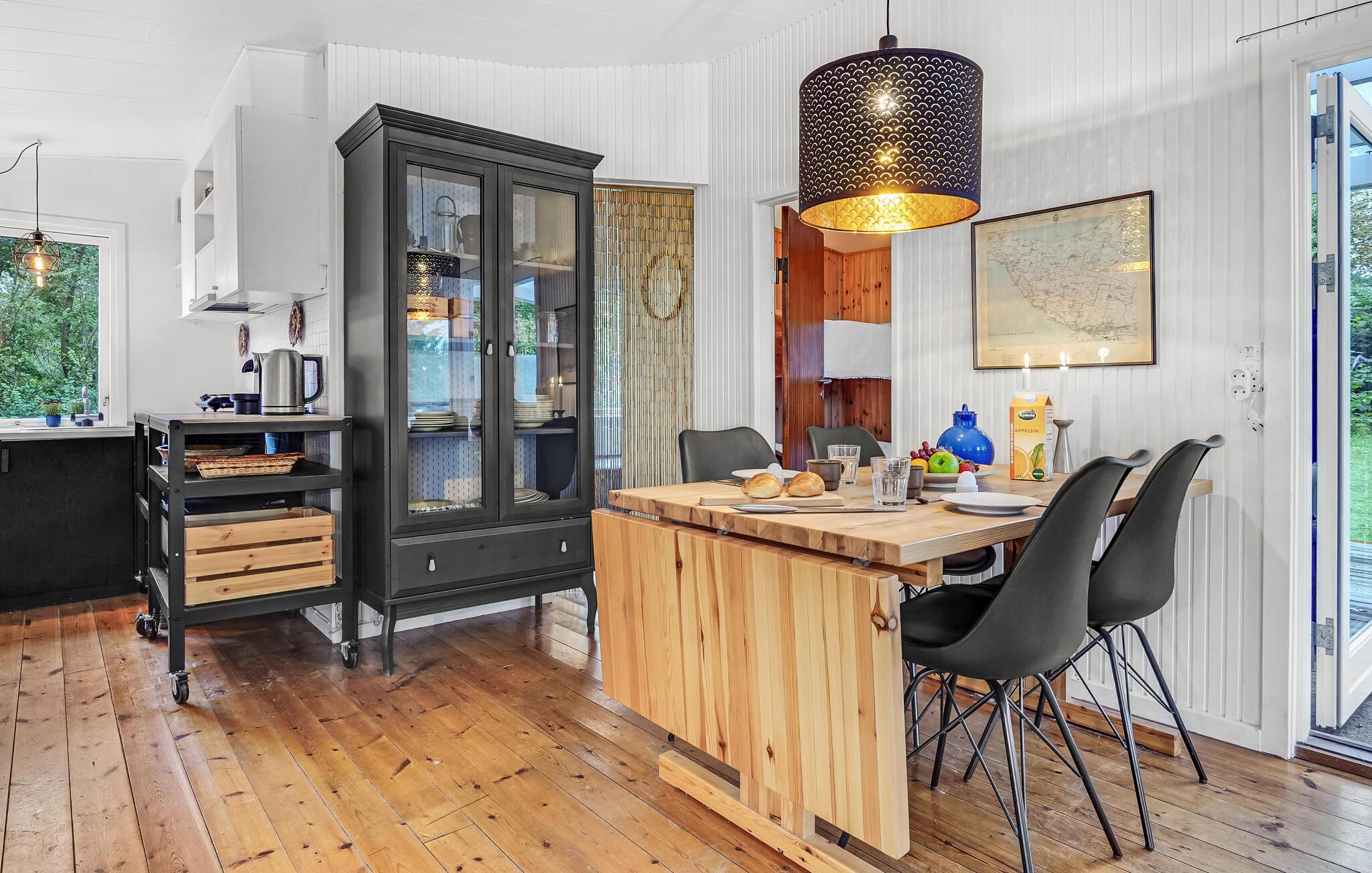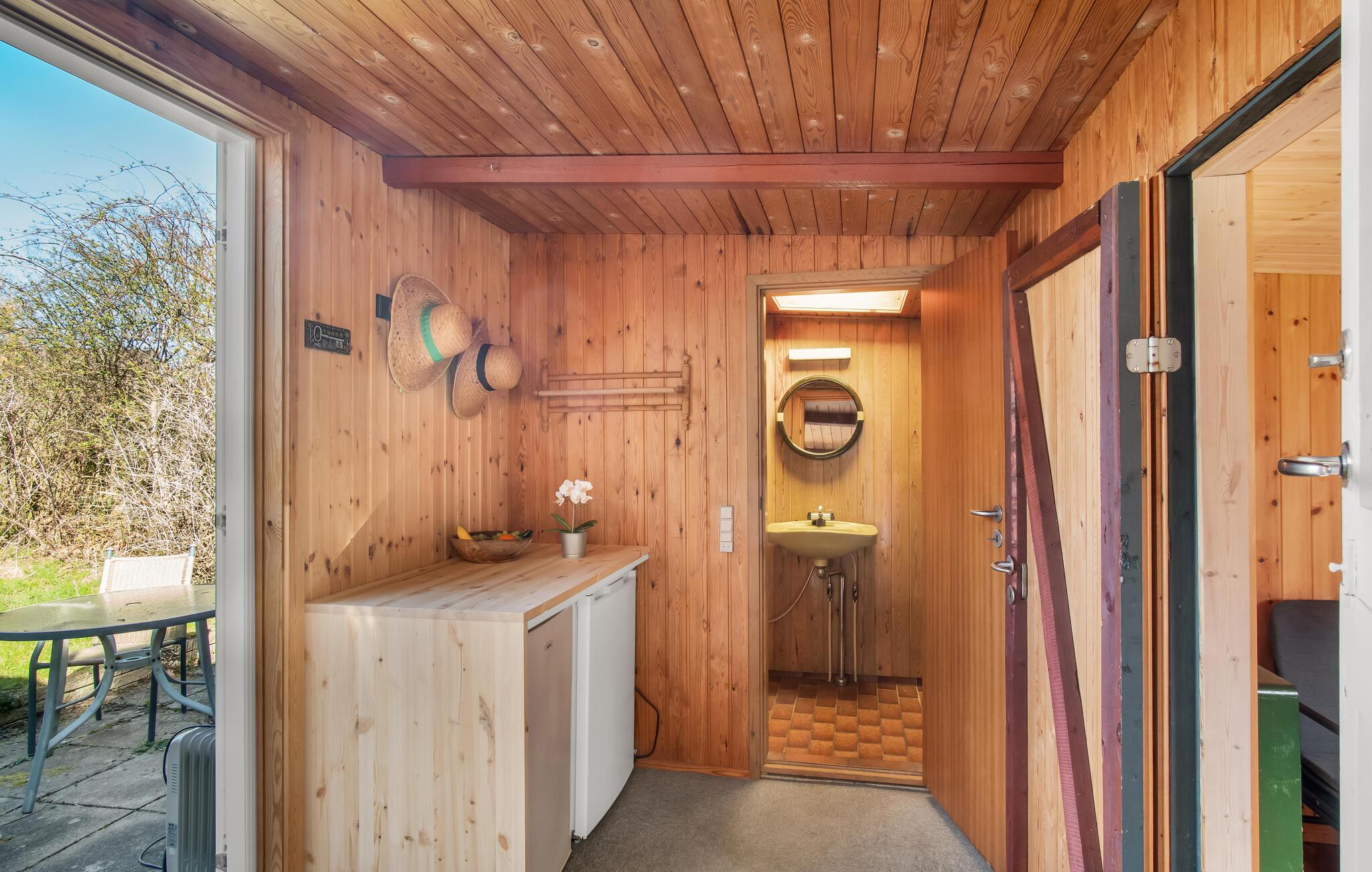 Dette dejlige sommerhus lægger op til en afslappende ferie. Huset er lyst og venligt indrettet, og i særligt stuen er et skønt rum, hvor I kan nyde de hyggelige aftener, mens ilden buldrer i brændeovnen. Den fine, afskærmede veranda giver jer masser af muligheder for at holde grillarrangementer i løbet af sommeren - også hvis skyerne trækker sig sammen, eller det blæser lidt. Der er god plads i haven, så de yngste feriegæster får også gode rammer til at slå sig løs og have det sjovt i det fri. I haven finder I også et hyggeligt anneks med endnu et soveværelse.