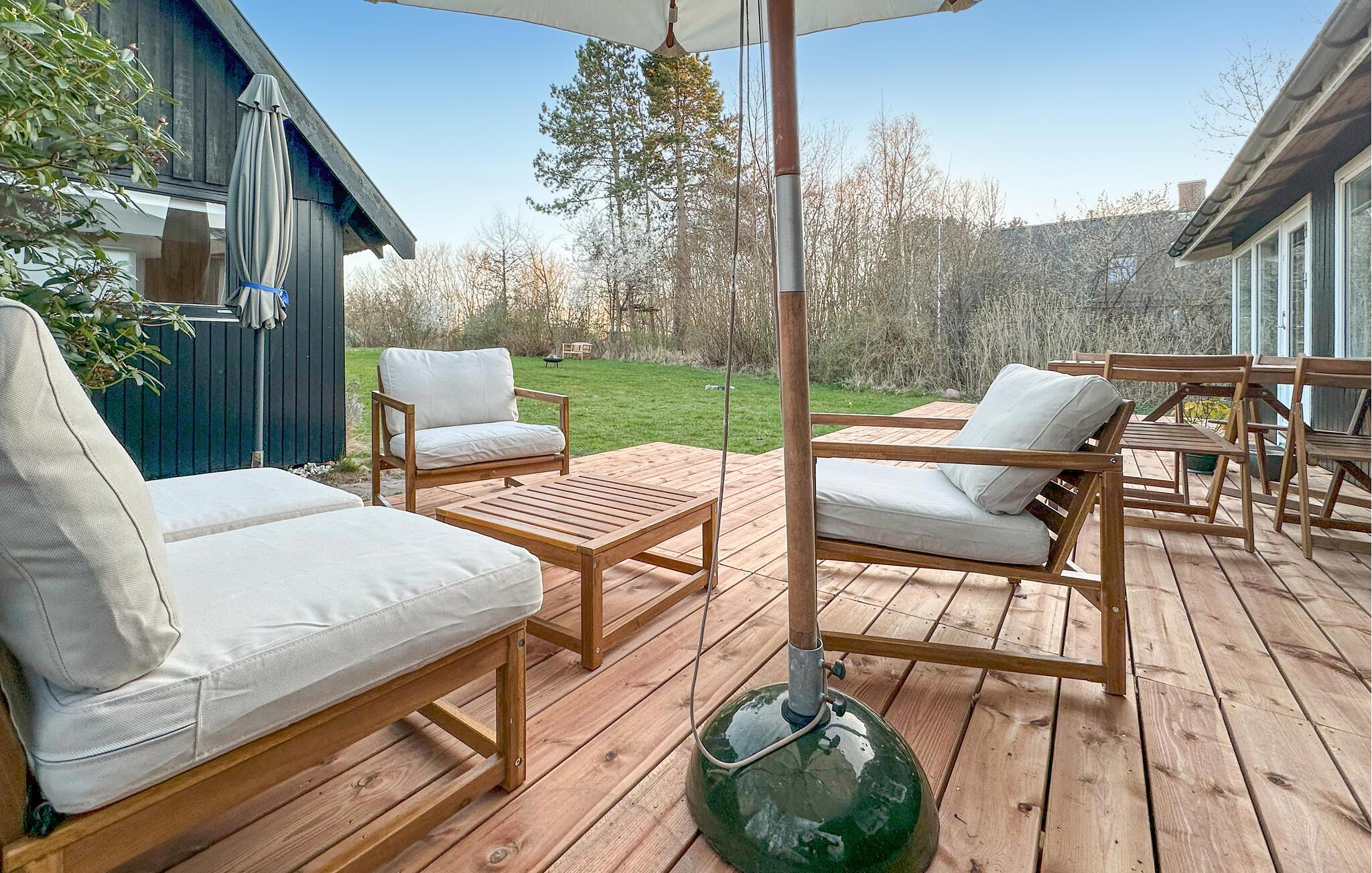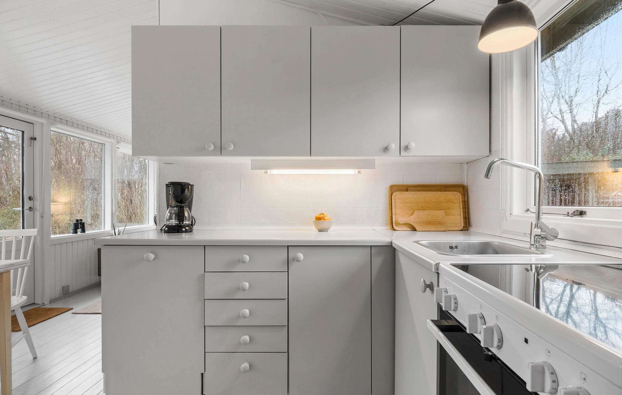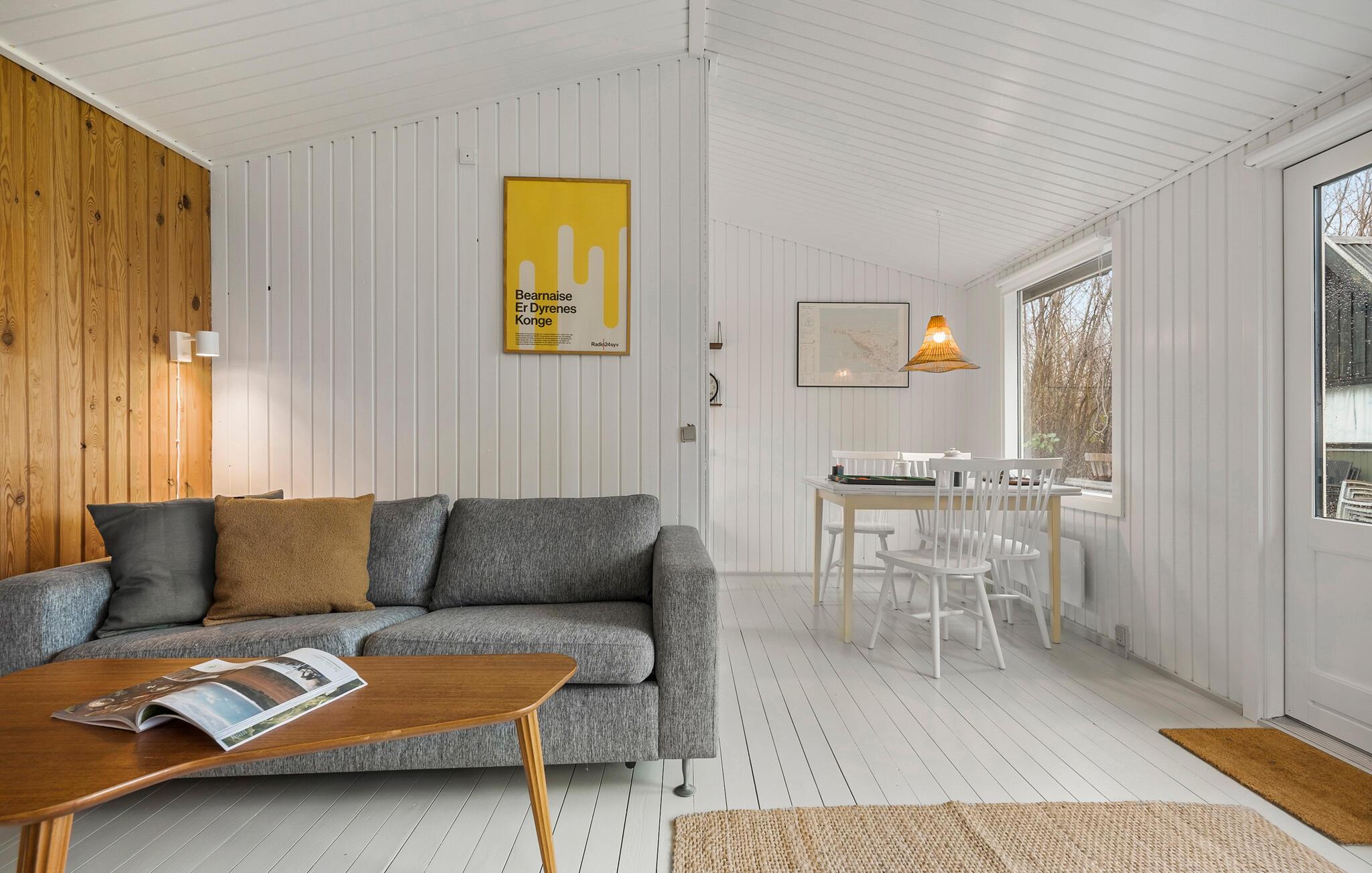 Kun få skridt fra vandet ligger dette smagfulde sommerhus, hvor der hersker en skøn ro. Tilbered dagens måltider i det moderne og veludstyrede køkken og dæk op i den indbydende stue. Om aftenen skaber brændeovnen en ekstra hyggelig atmosfære, mens I streamer en god serie eller hygger med brætspil.
