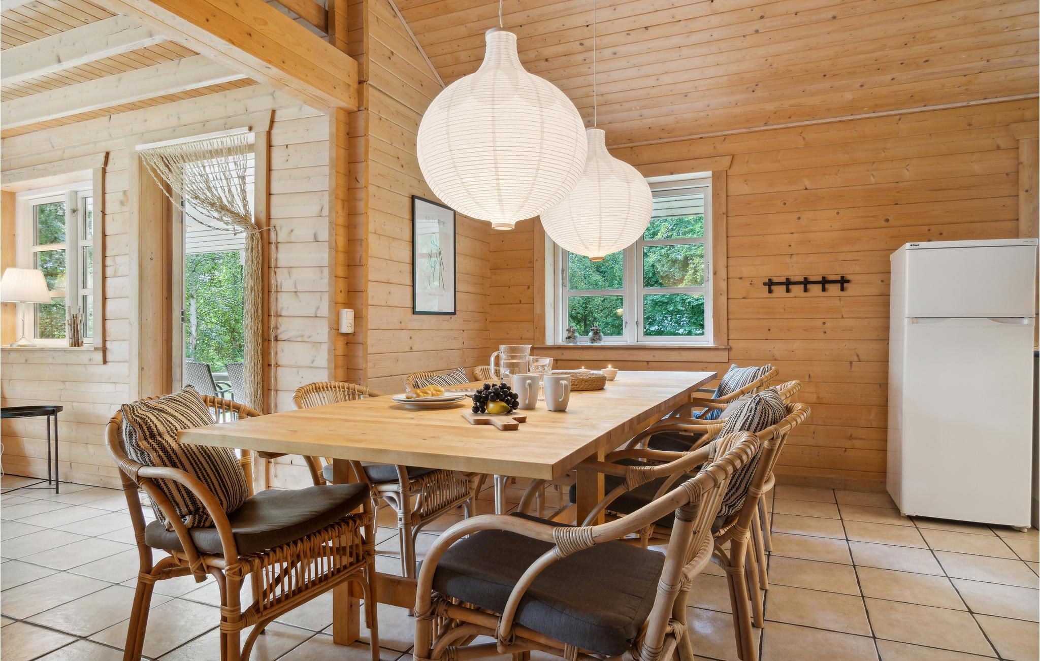 Rummeligt bjælkehus med sauna og spabad tæt på Vollerup Strand og smuk natur, perfekt til afslapning og aktiviteter.
