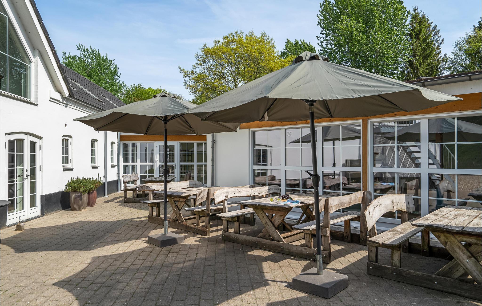 Udendørs kan I hygge jer i den utrolig flotte gårdhave med borde-/bænkesæt, og nyde de lune sommeraftener i stearinlysenes skær.