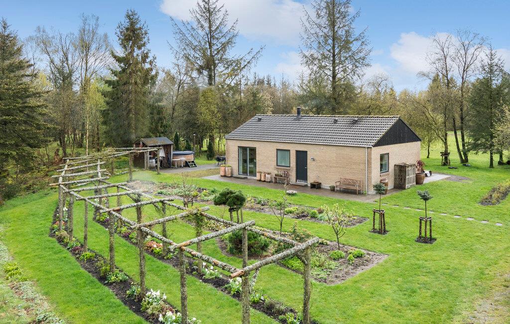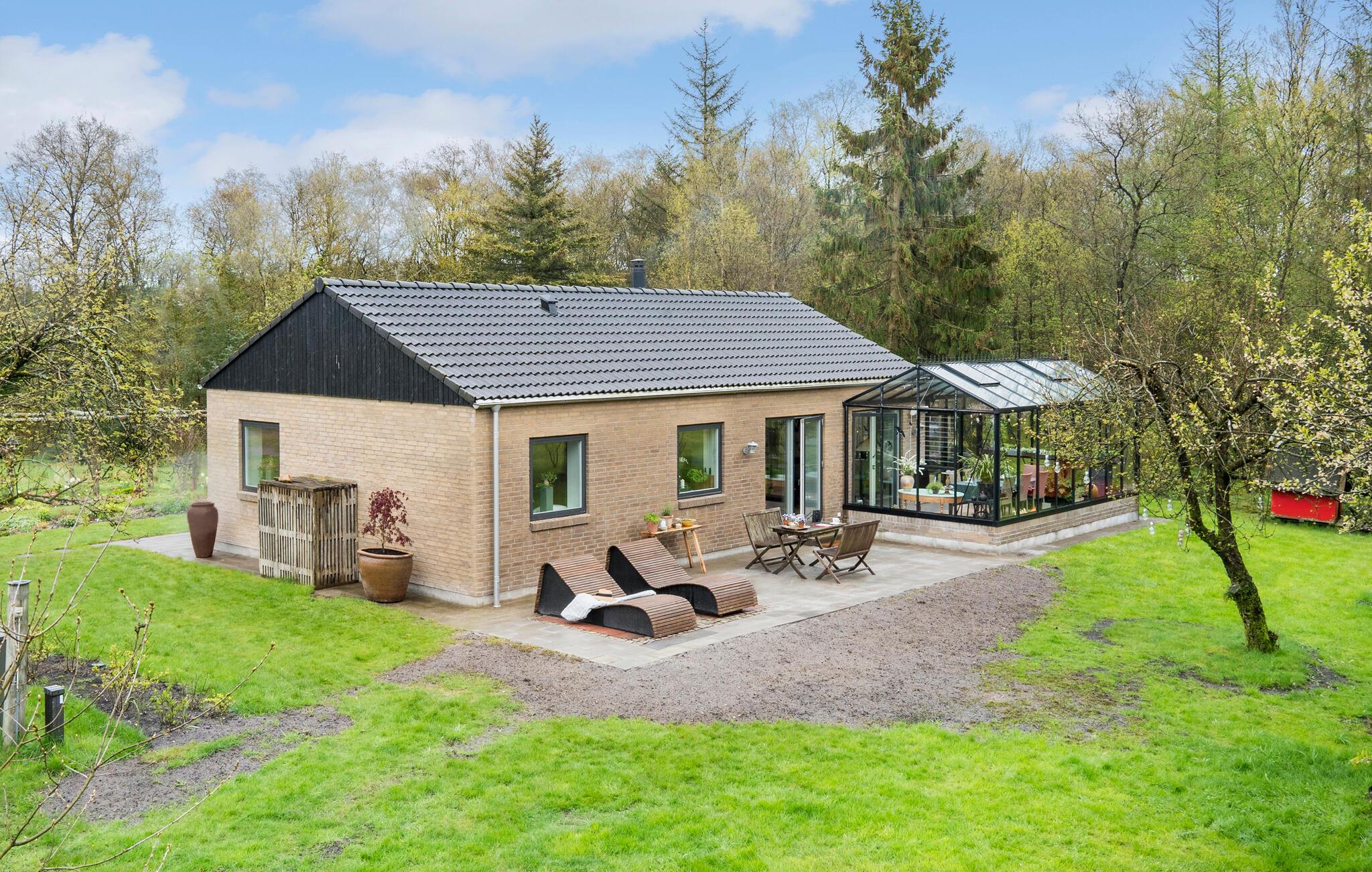 Familievenligt feriehus med smuk have, vildmarksbad og udestue i idylliske jyske omgivelser.