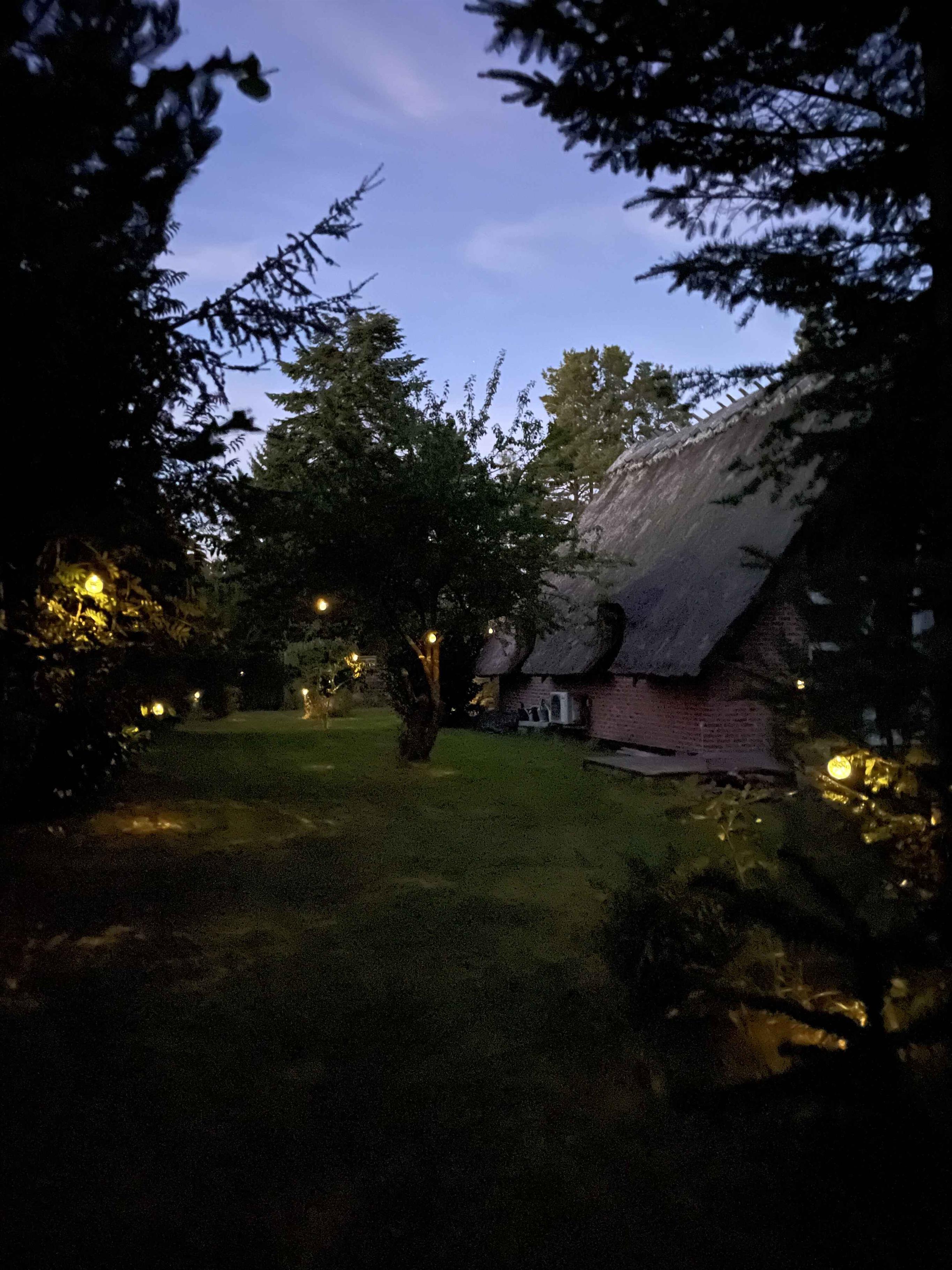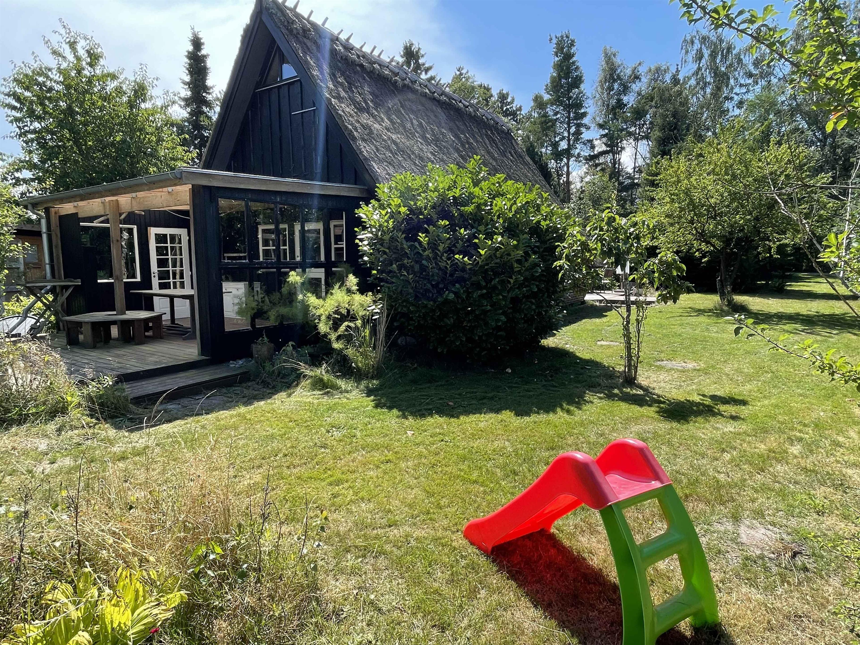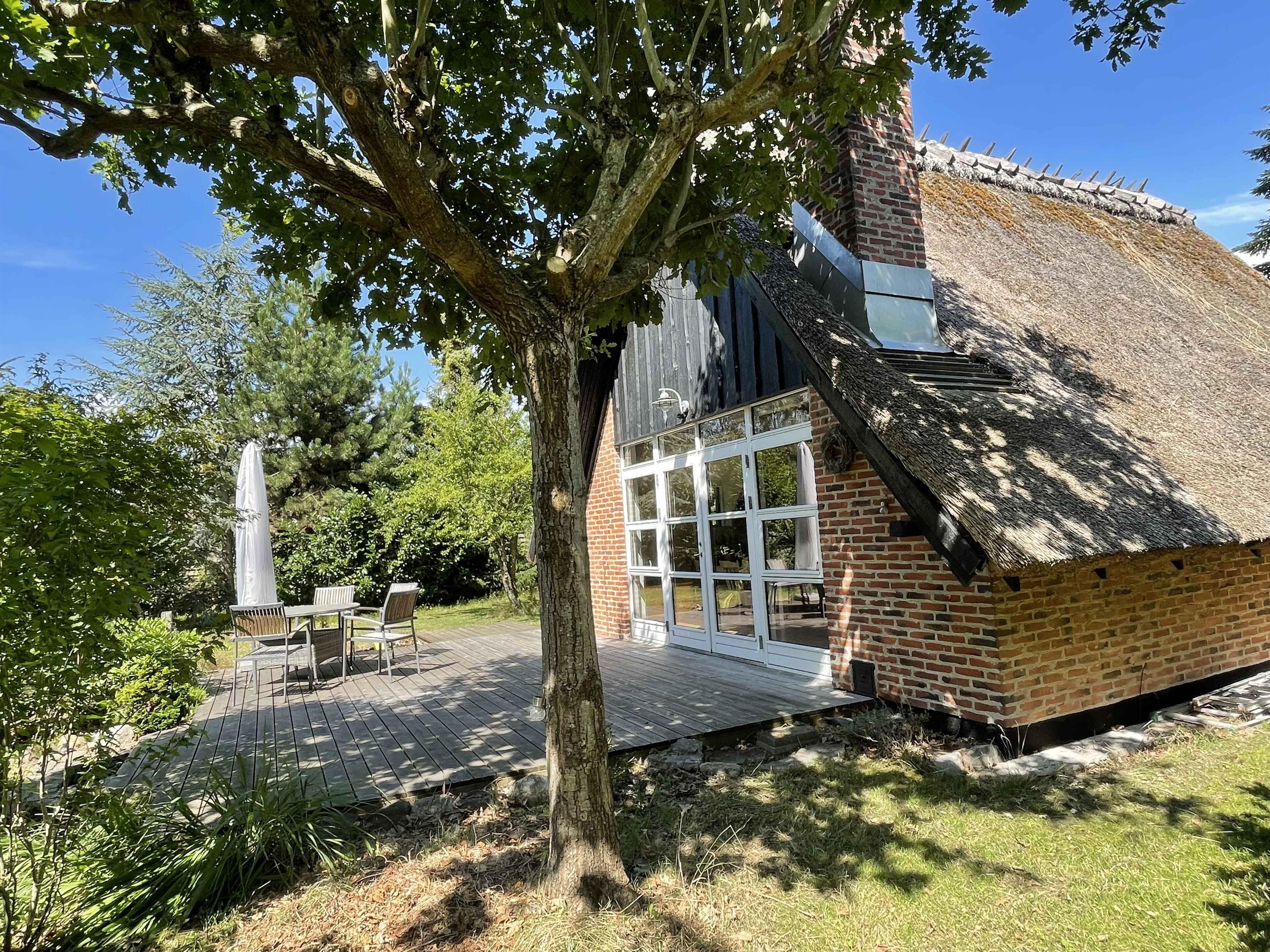Charmerende sommerhus med stråtag tæt ved vandet